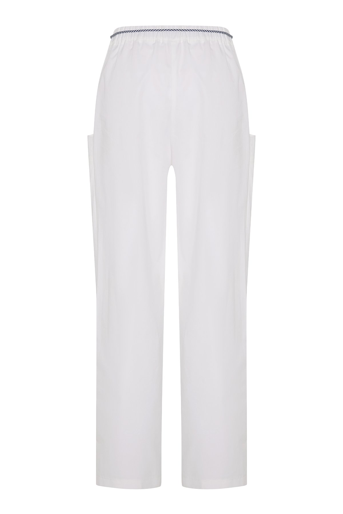 Bağcık ve Cep Detaylı Pantolon Beyaz