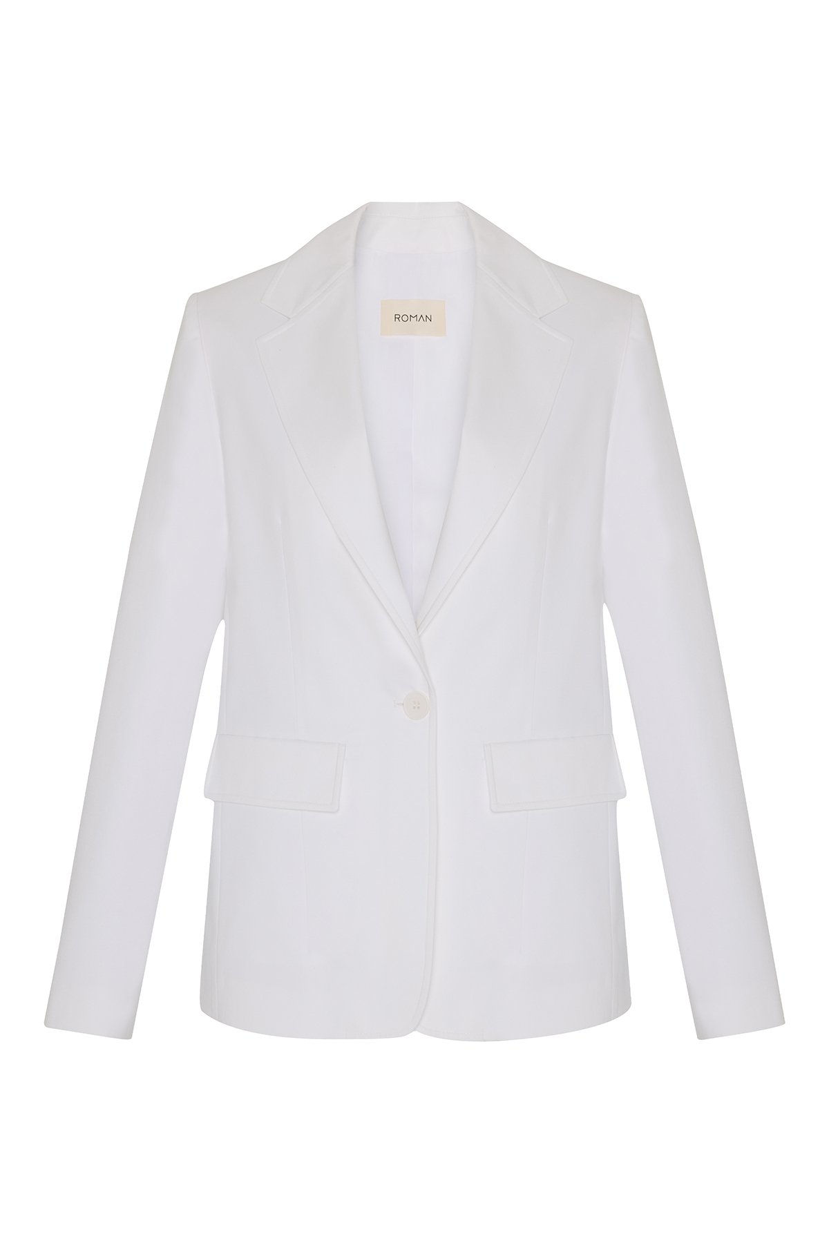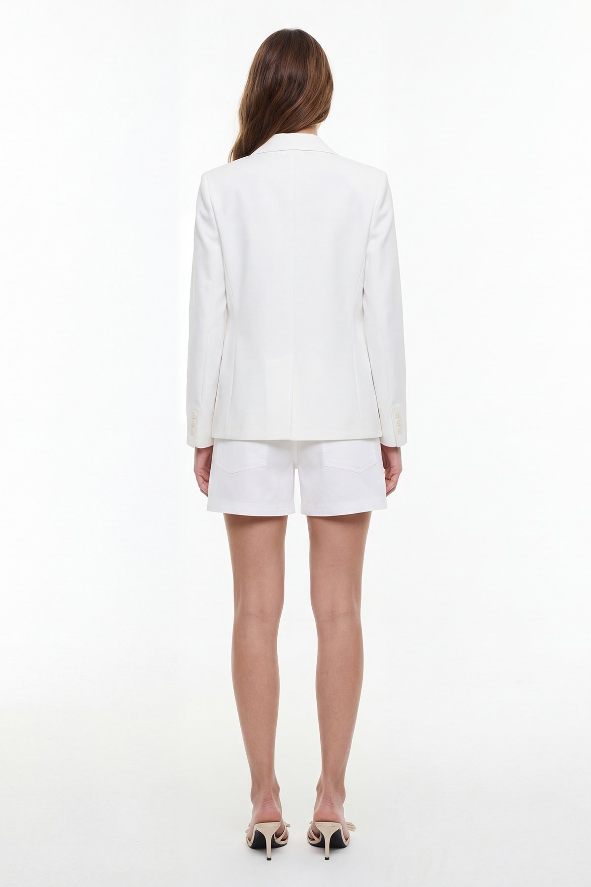 %100 Keten Tek Düğmeli Blazer Ceket Bej