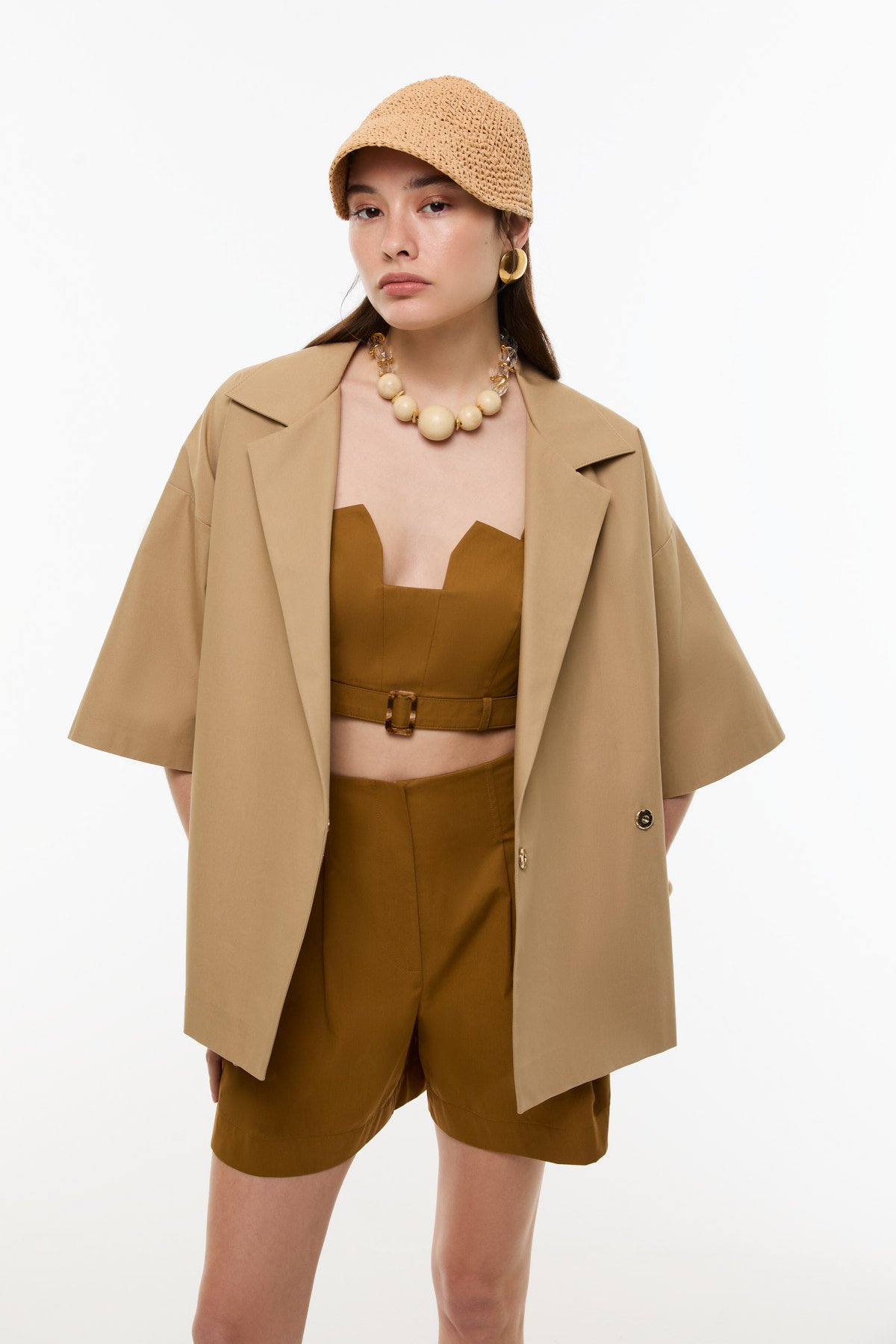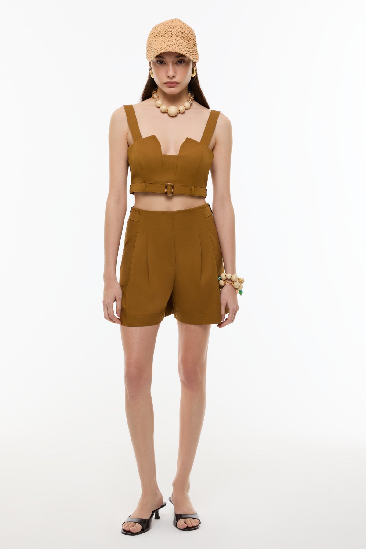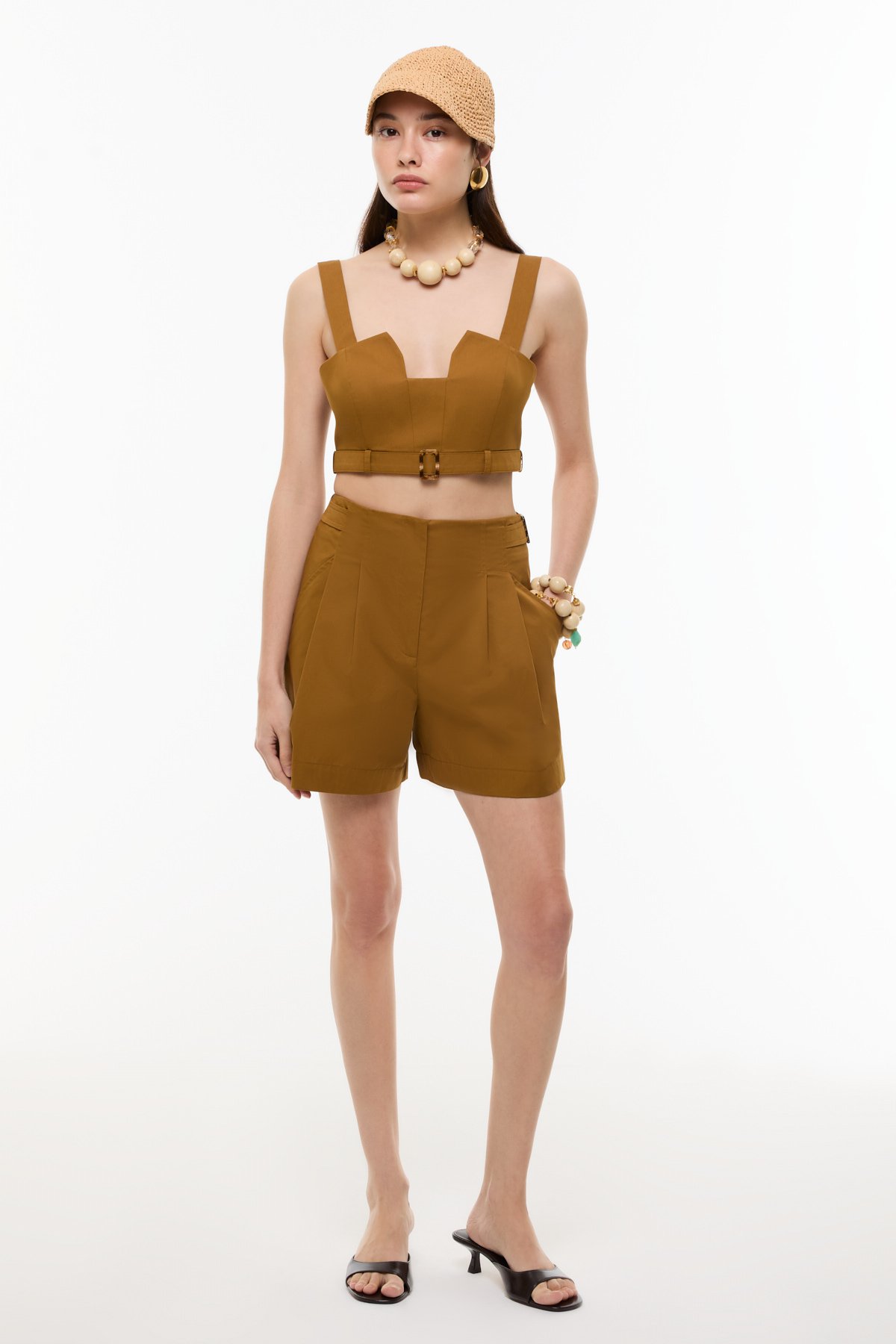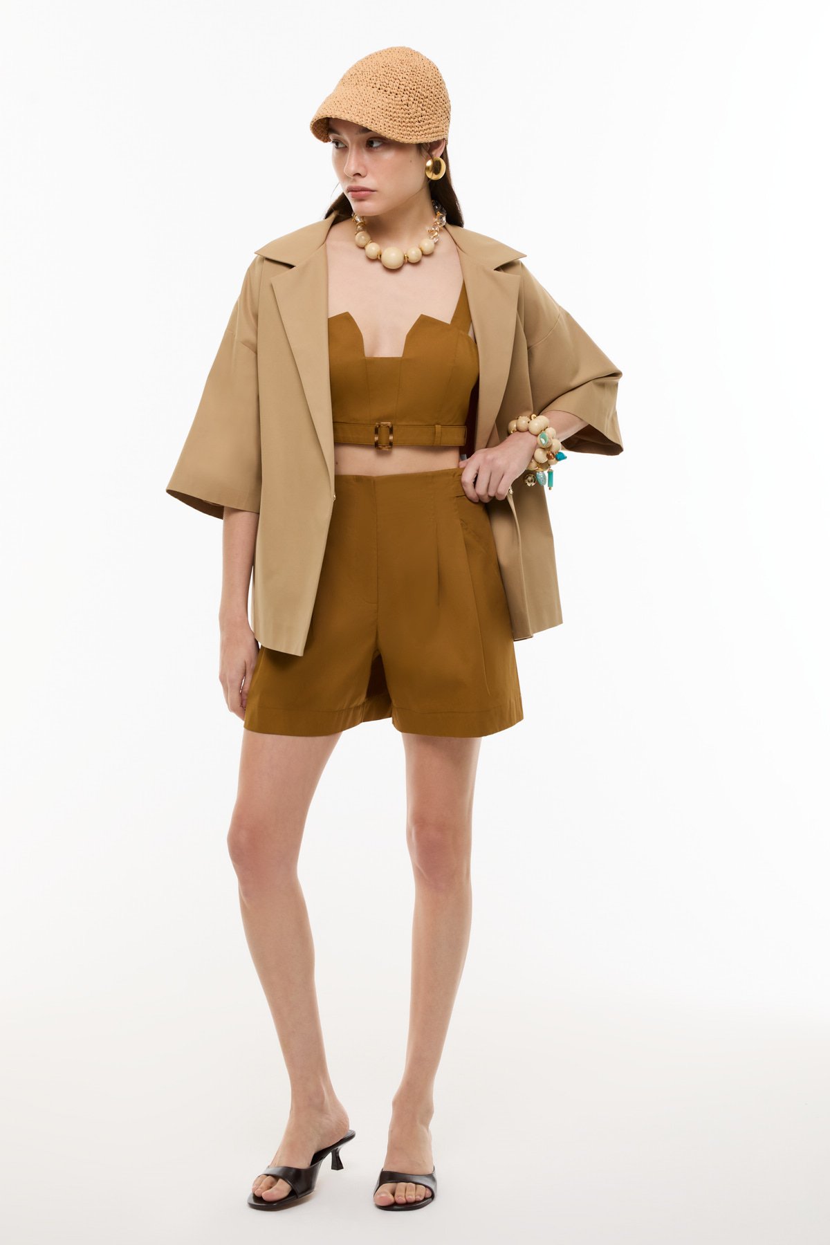 Kemer Detaylı Double Paça Şort Kahve