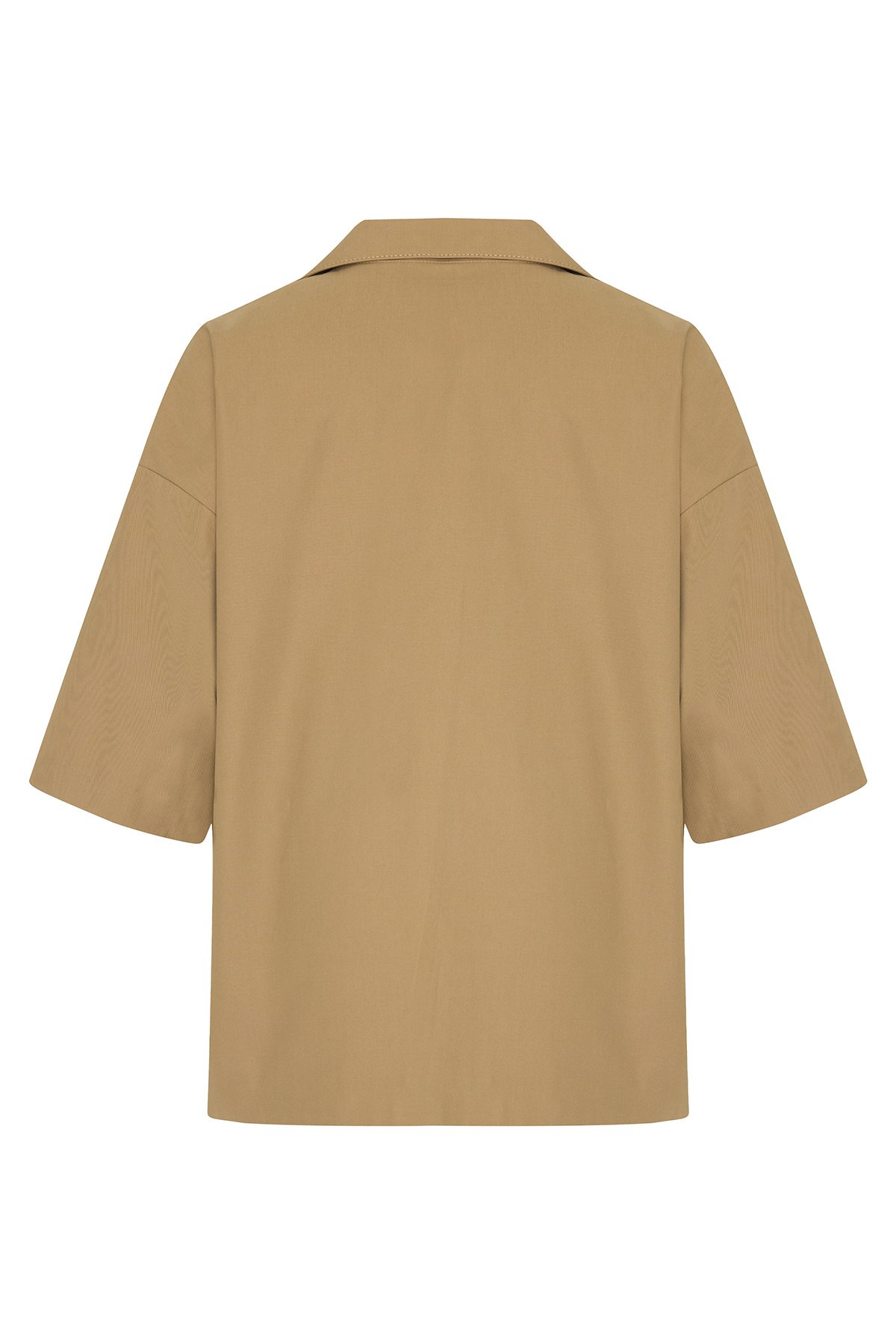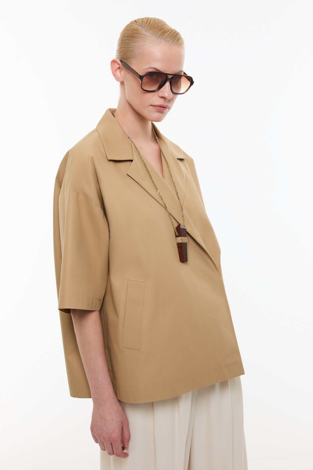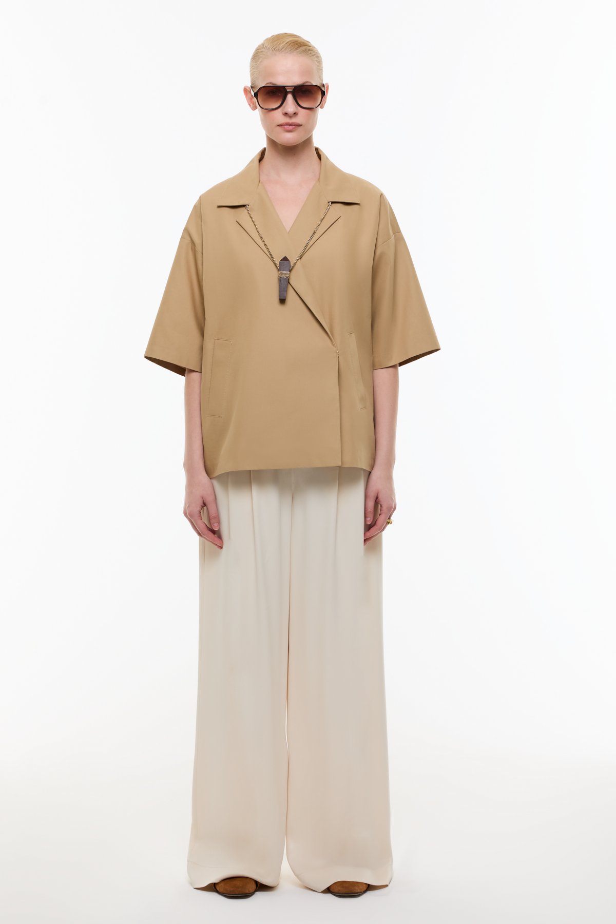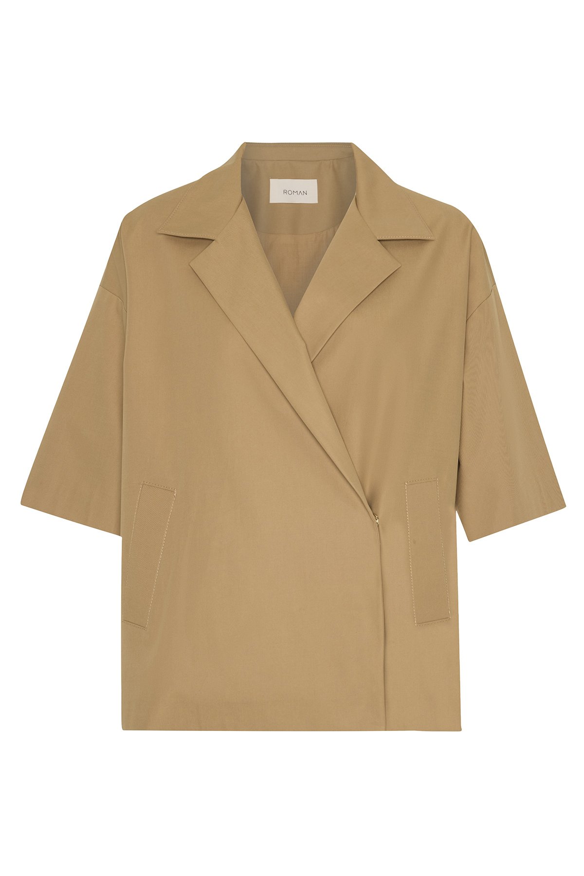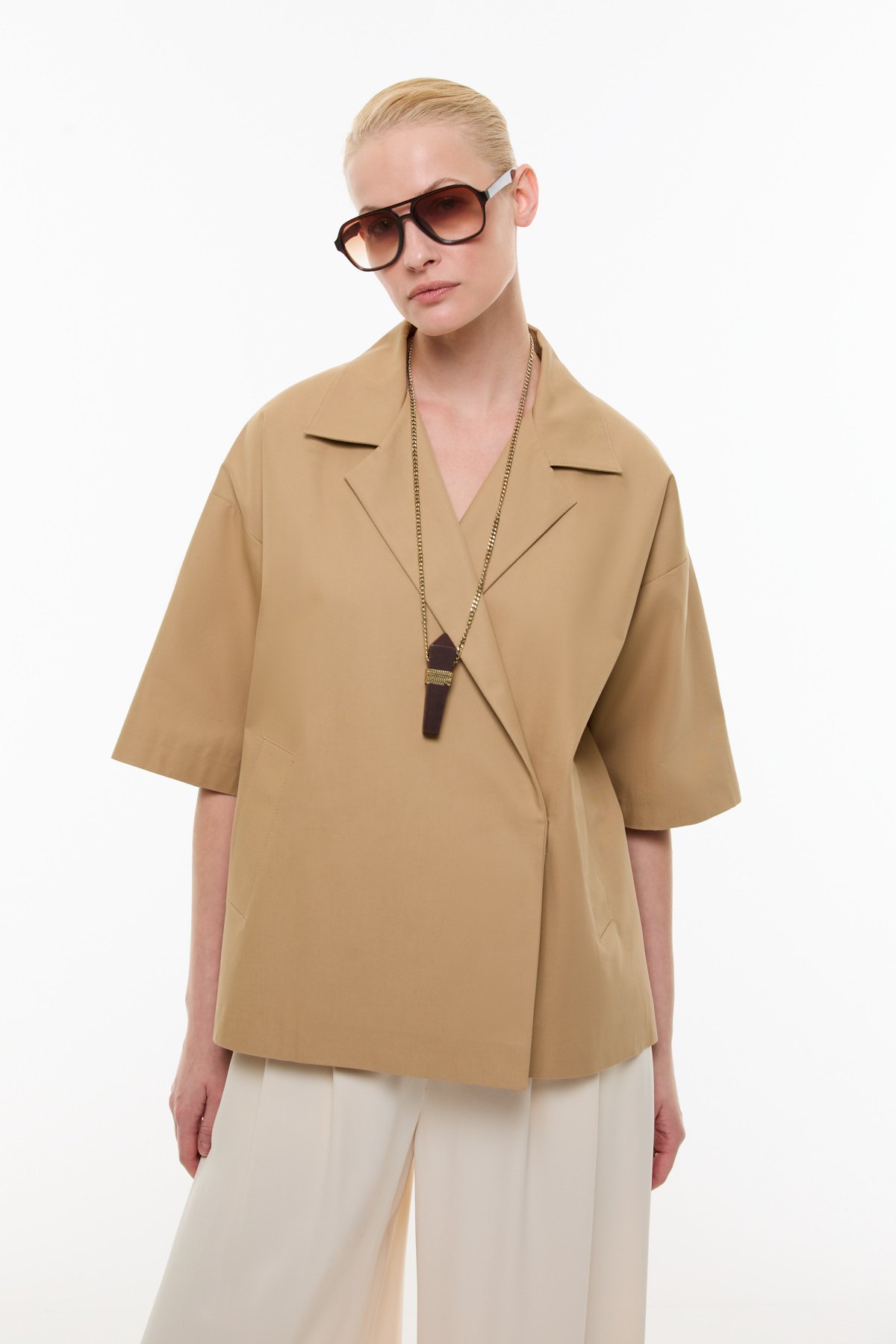 %100 Keten Yakasız Kruvaze Ceket Haki
