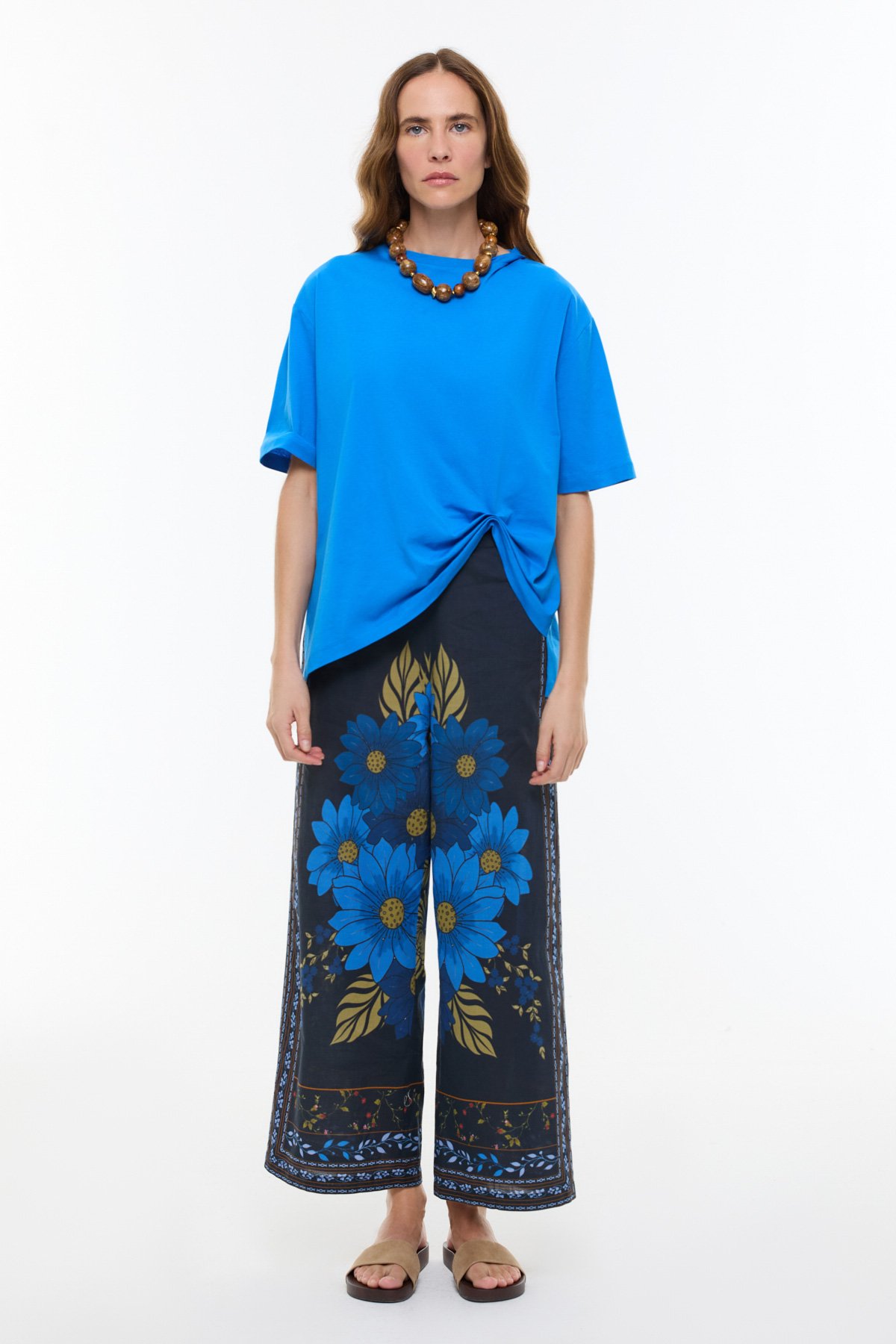 Şal Desenli Embrode Nakışlı T-shirt Kahve