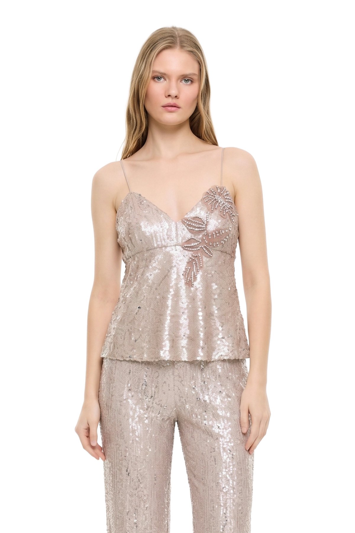 Şifon Biyeli Kolsuz Bluz Fuşya