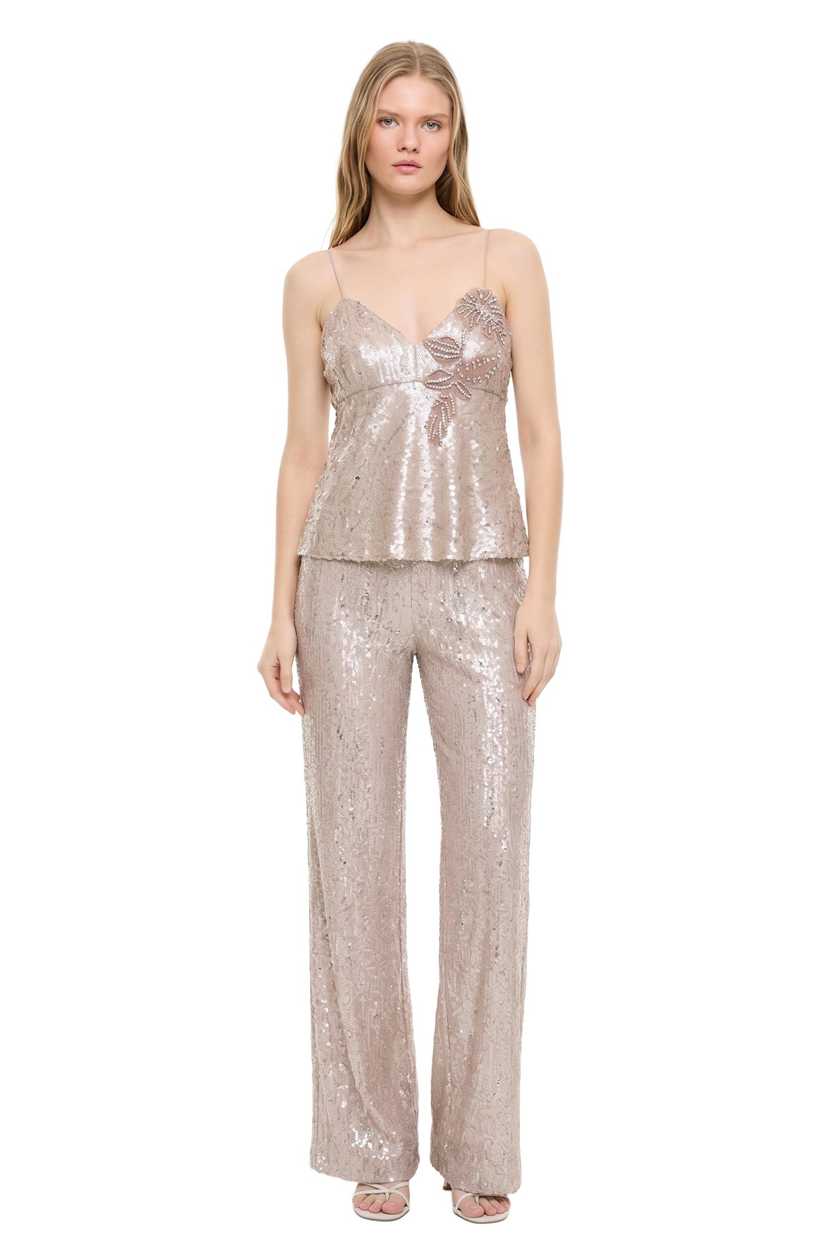 V Yaka İnce Askılı Volan Detaylı Bluz Siyah