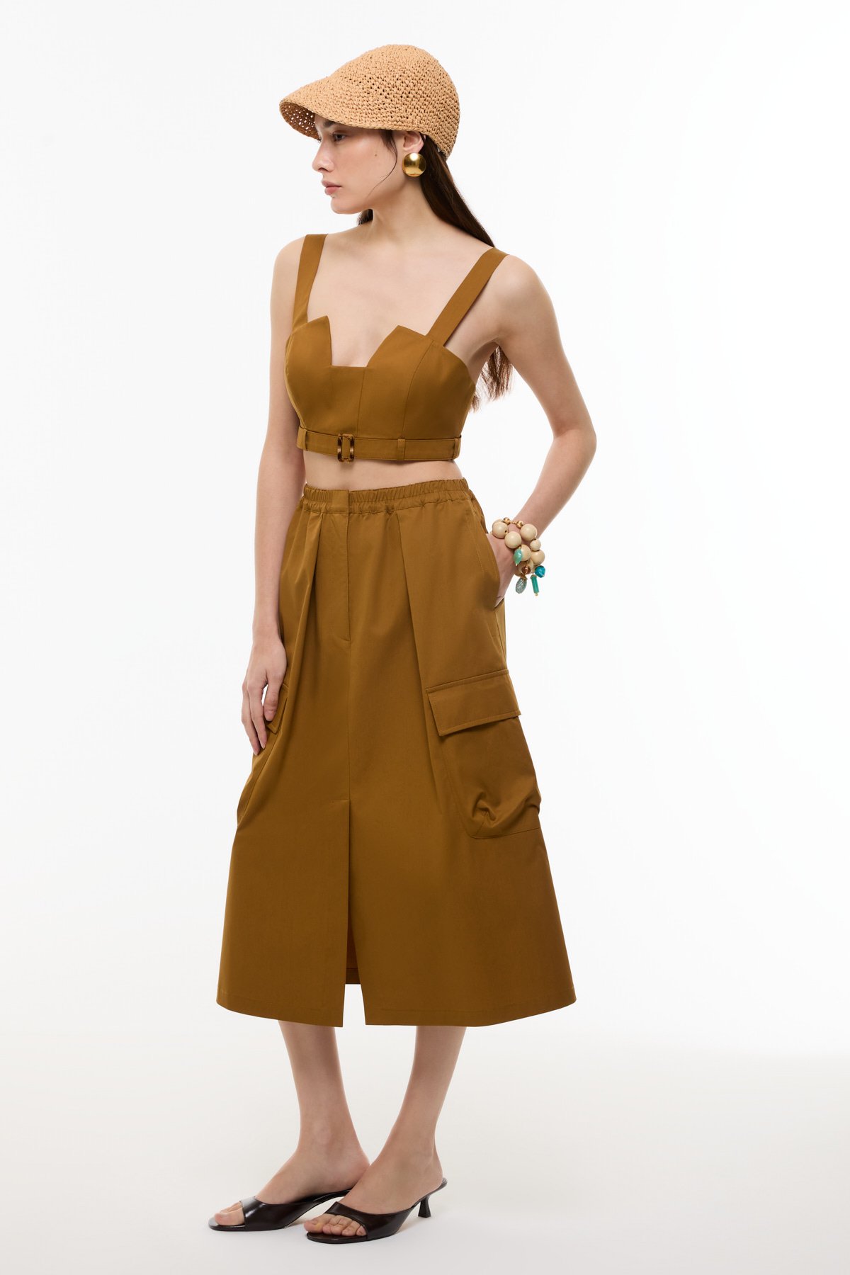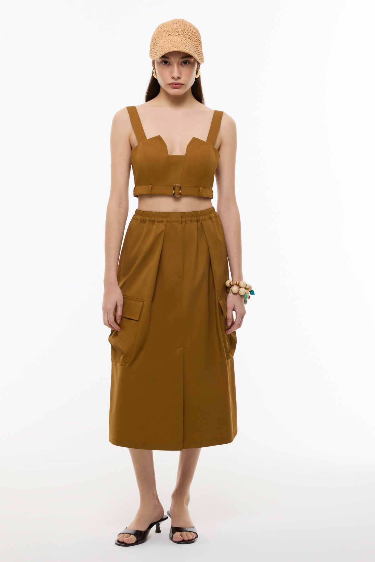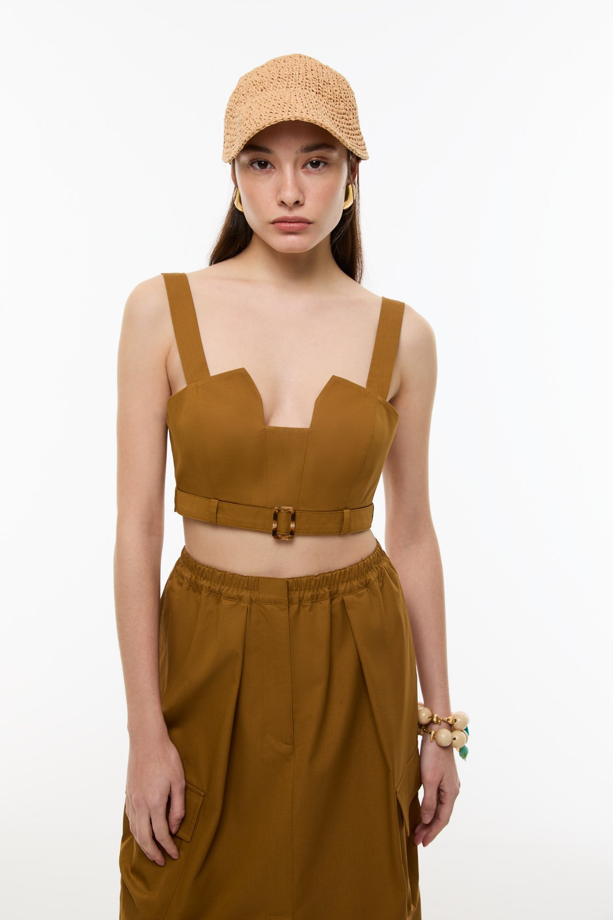 Bağlama Görünümlü Askılı Crop Bordo