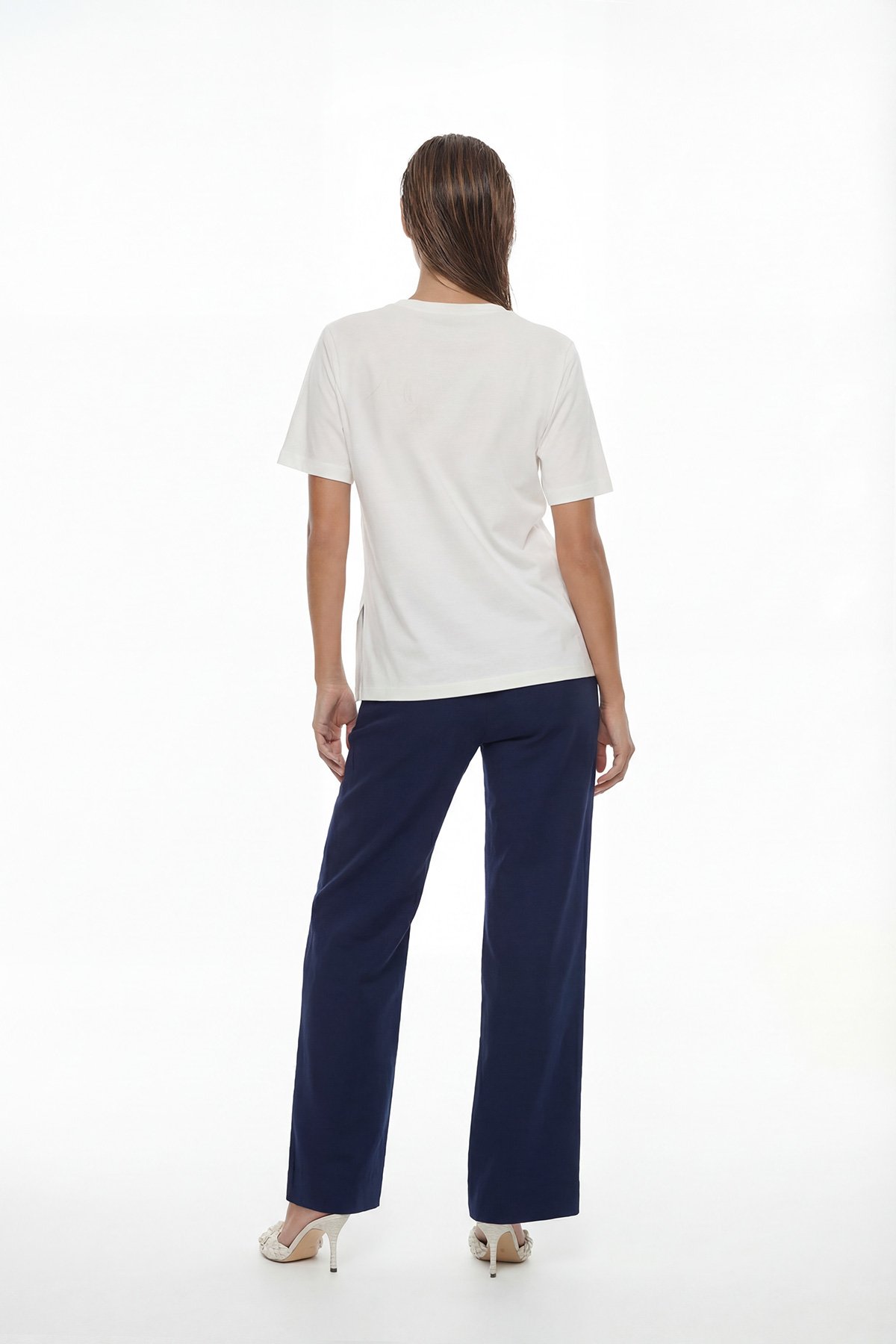 Biye Detaylı Arkası Yırtmaçlı T-shirt Beyaz