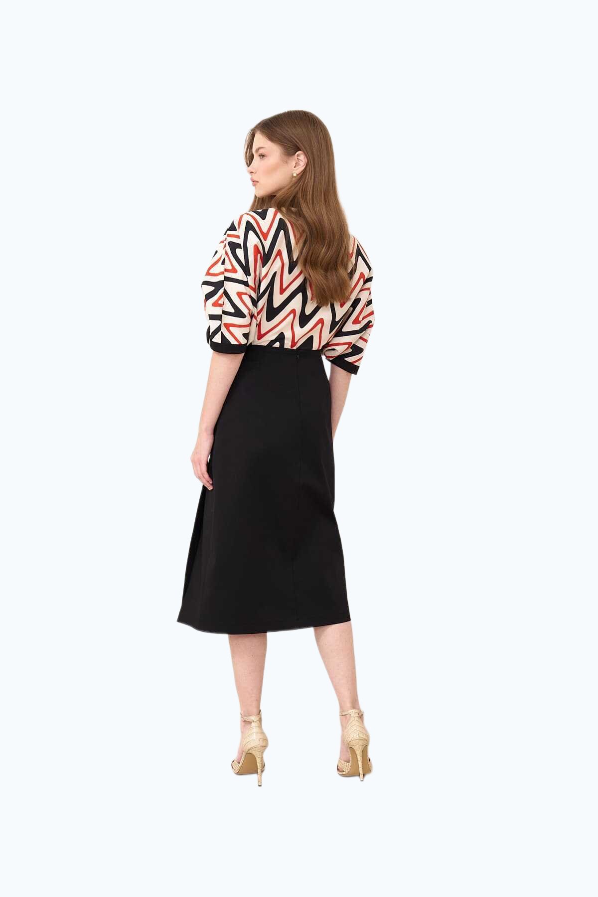 Şifon Detaylı Yırtmaçlı Midi Boy Etek Siyah
