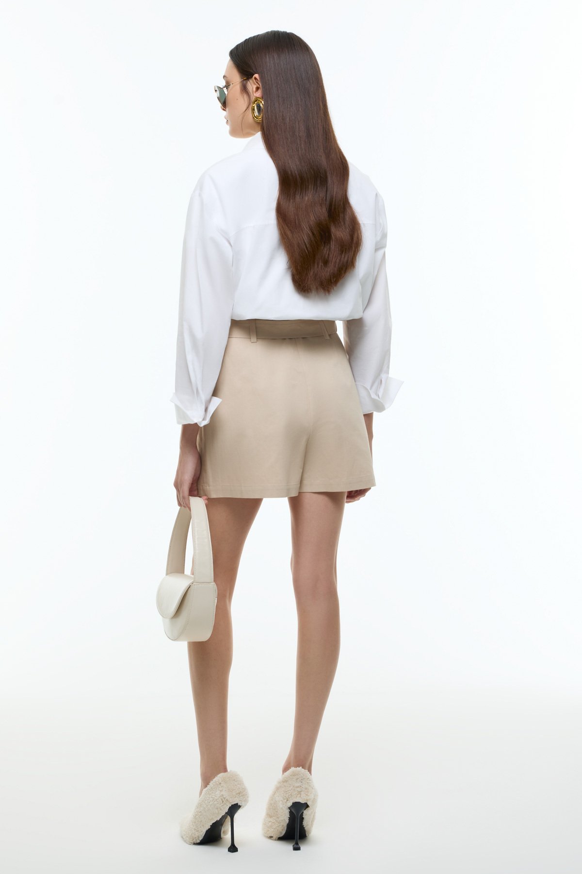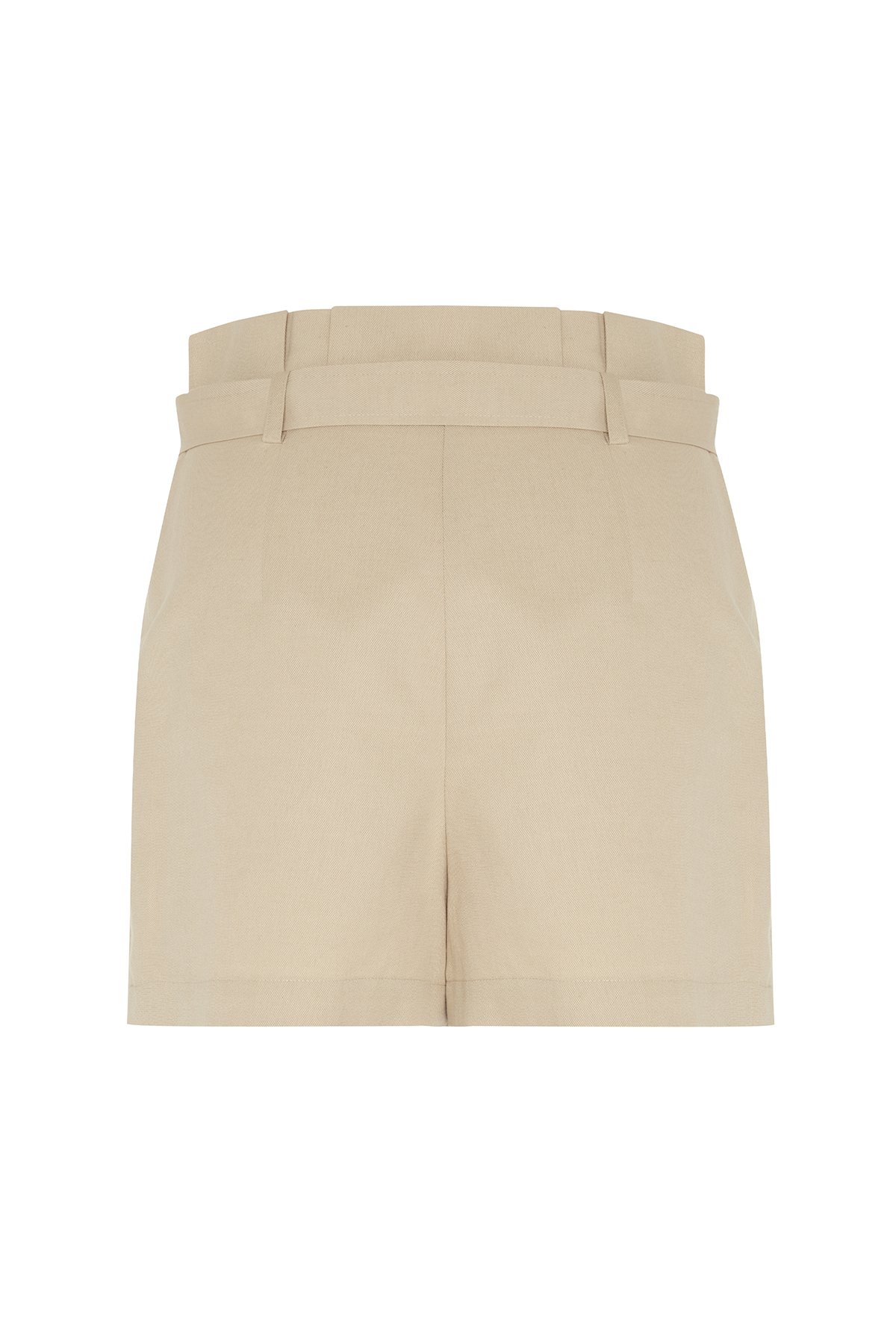 Yüksek Bel Pili ve Kemer Detaylı Şort Etek Bej