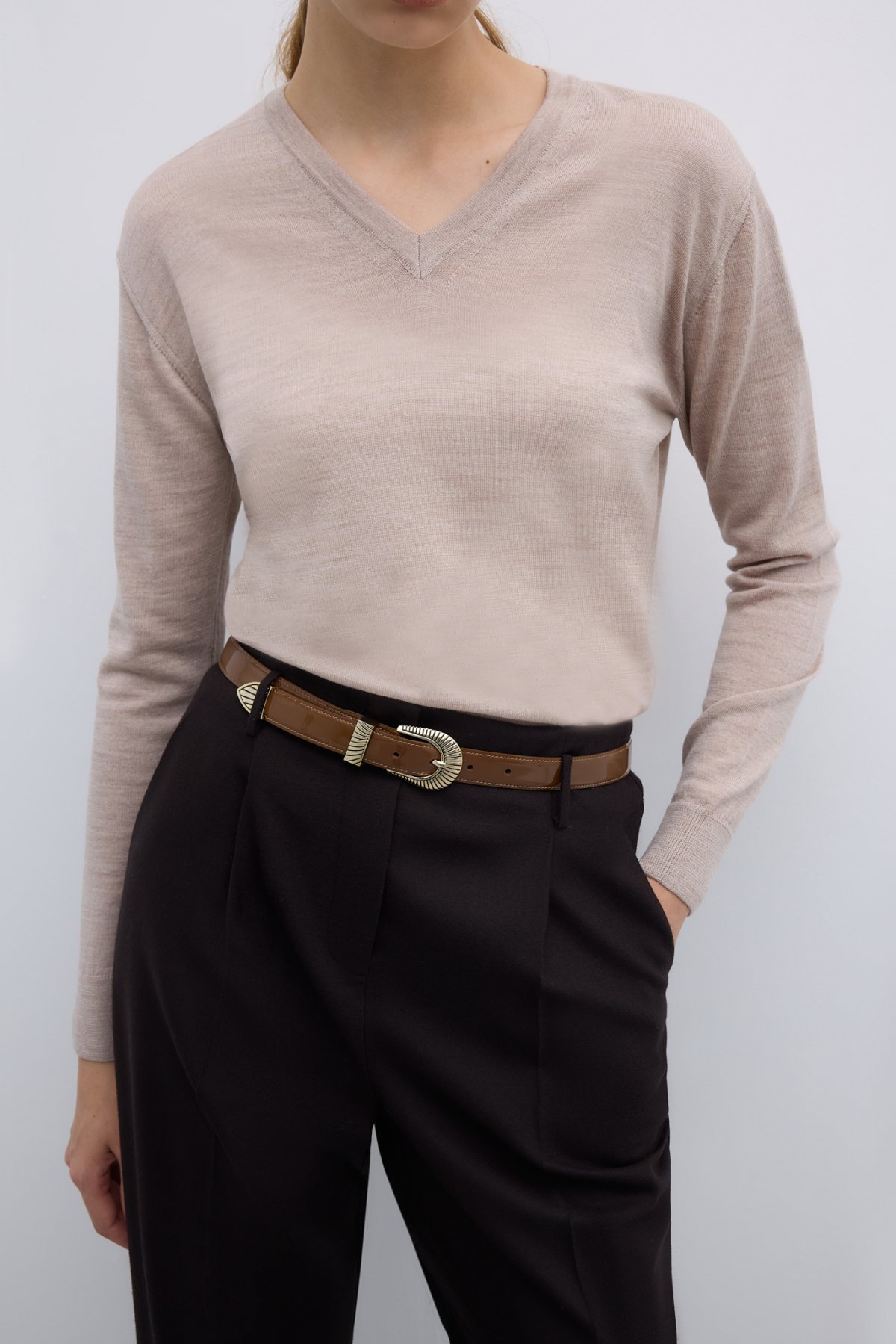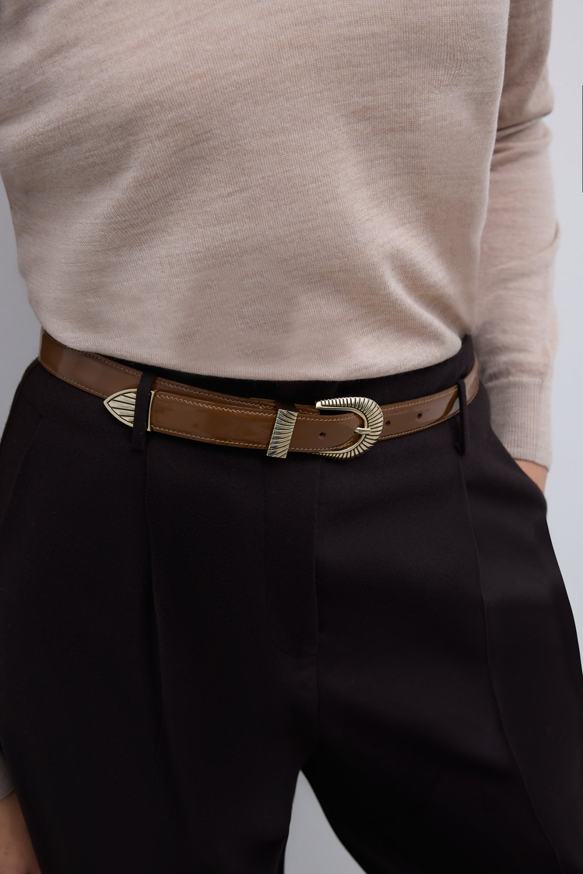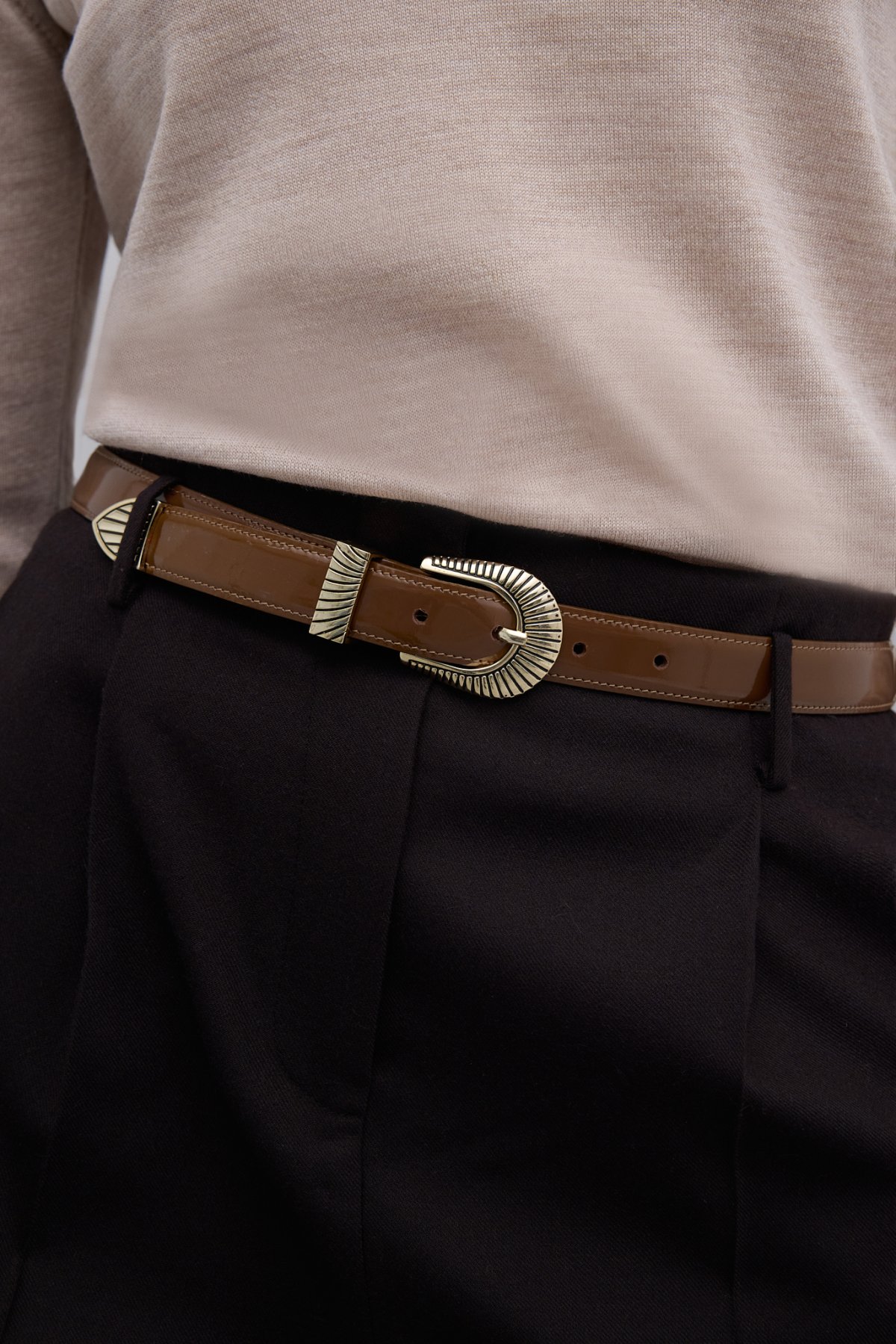 %100 Deri Gold Toka Detaylı Kemer Bej