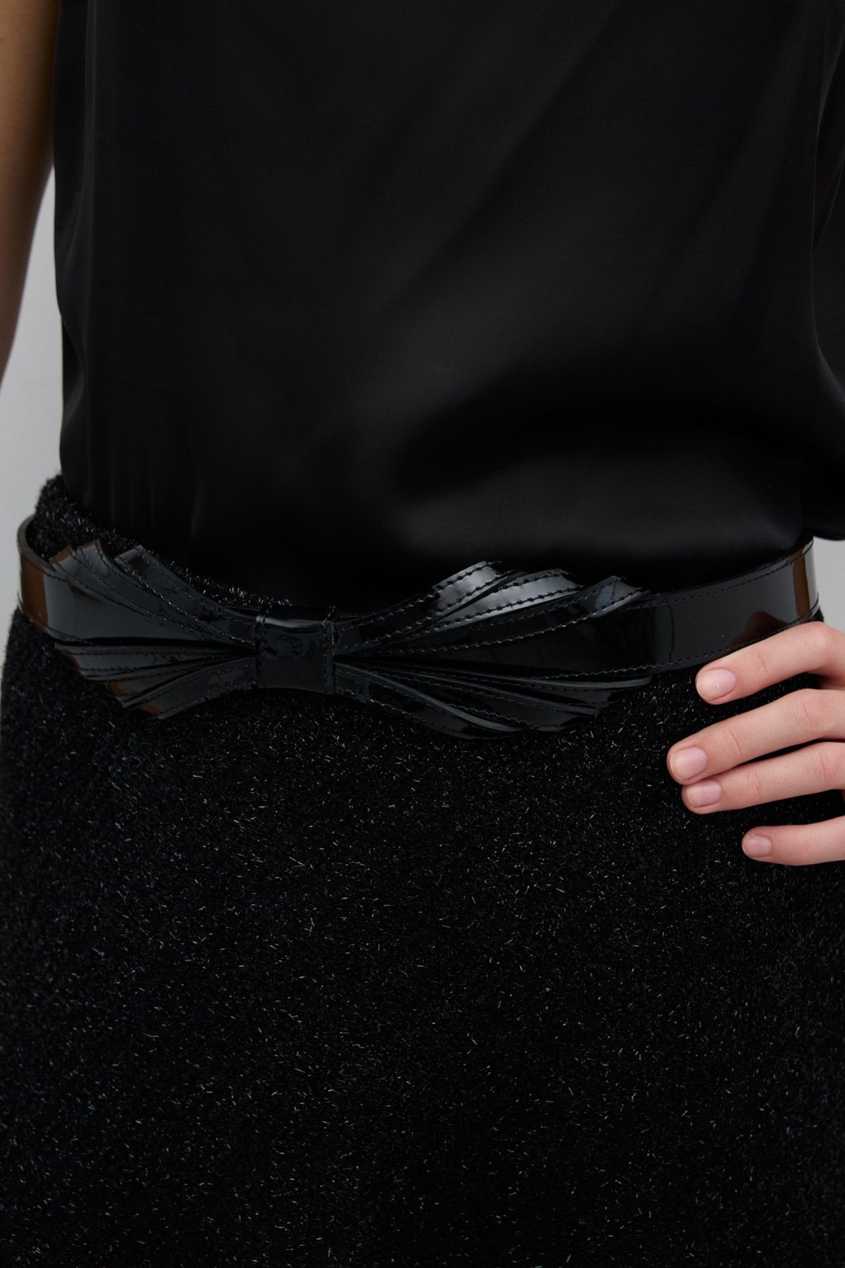 %100 Deri Fiyonk Detaylı Kemer Siyah