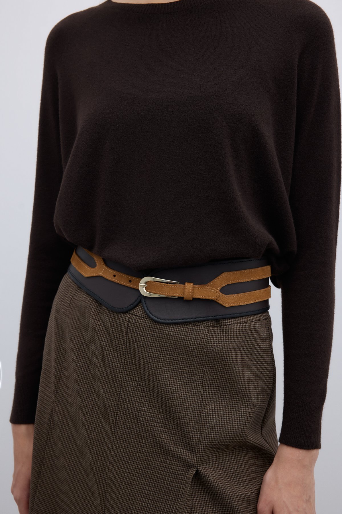 %100 Deri Gold Toka Detaylı Kemer Bej