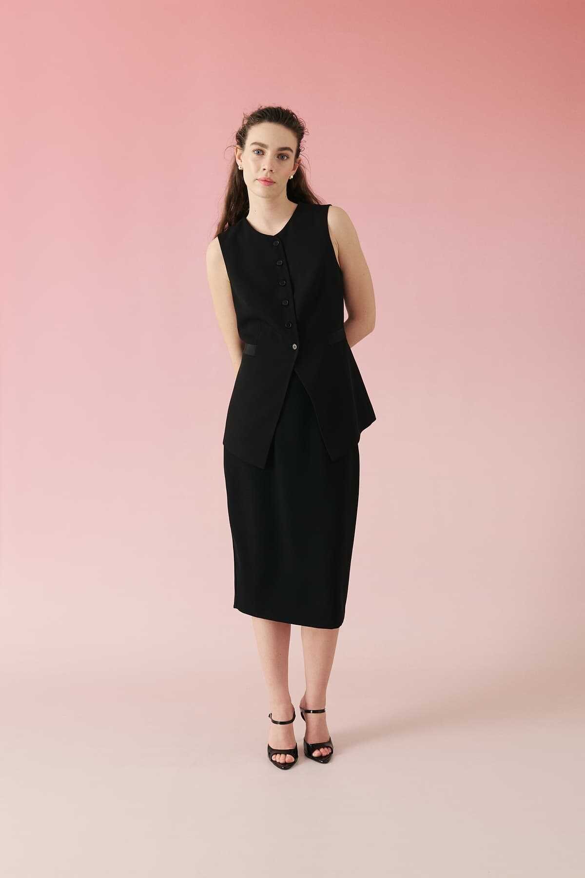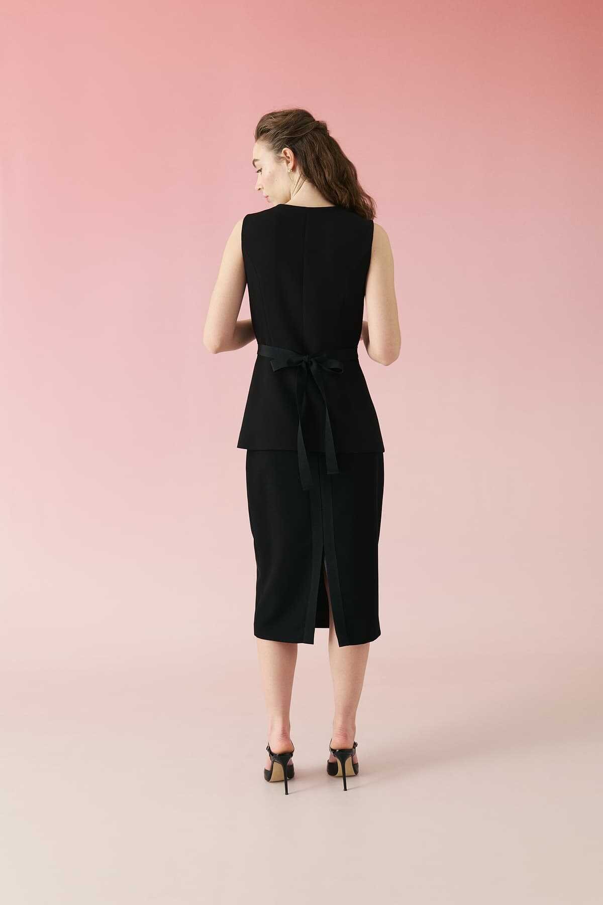 Arkası Yırtmaçlı Kalem Etek Siyah