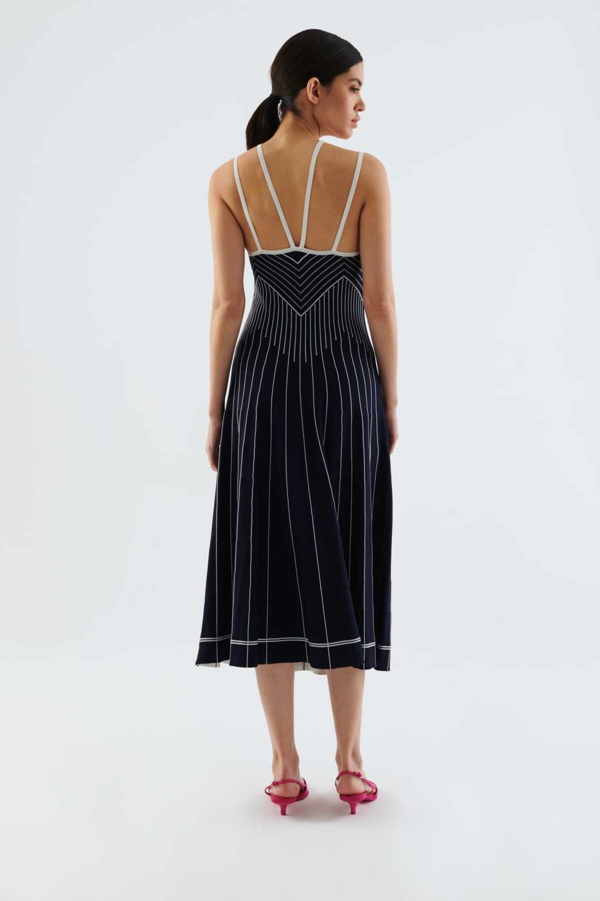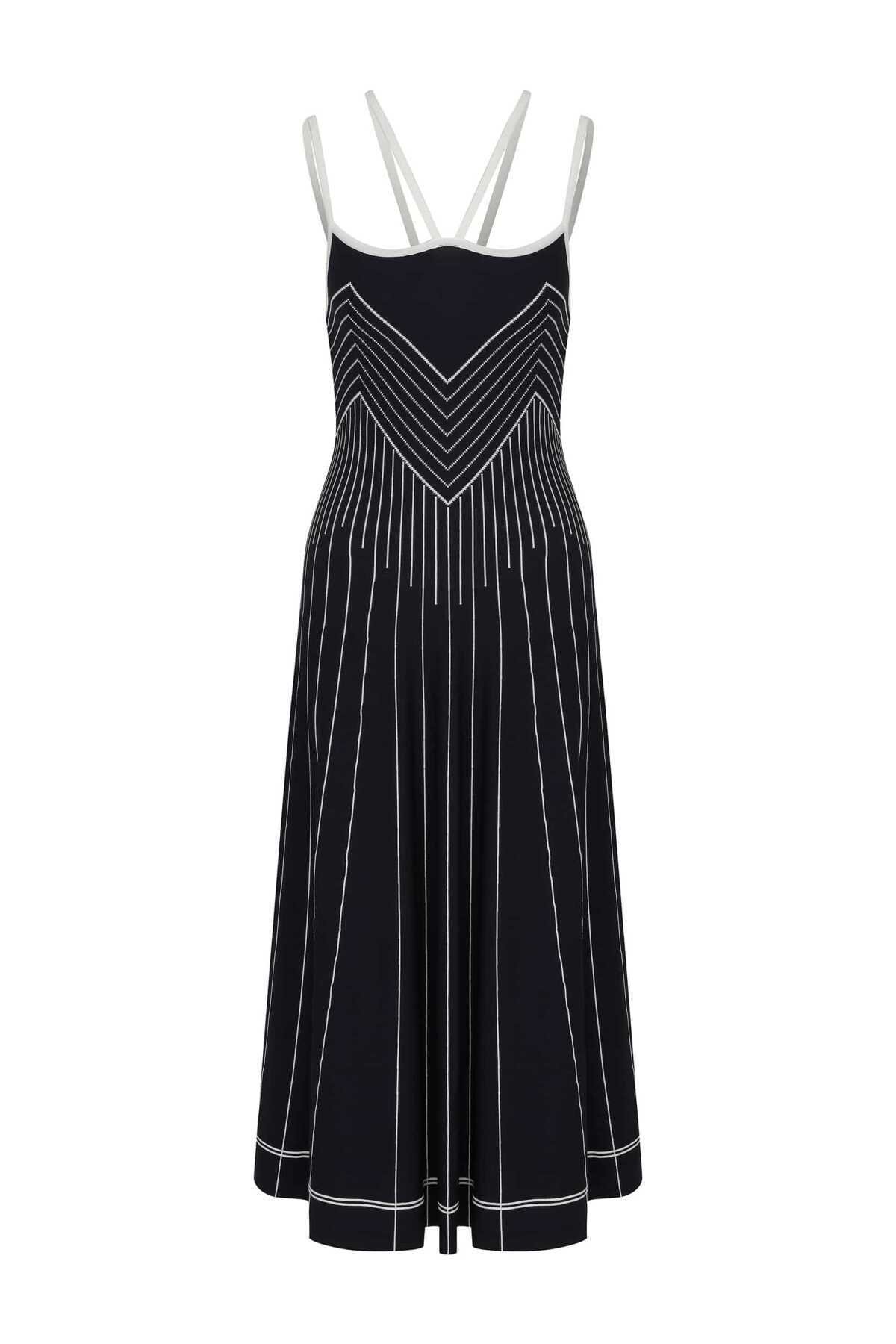 İnce Askılı Brode Detaylı Tafta Elbise Siyah
