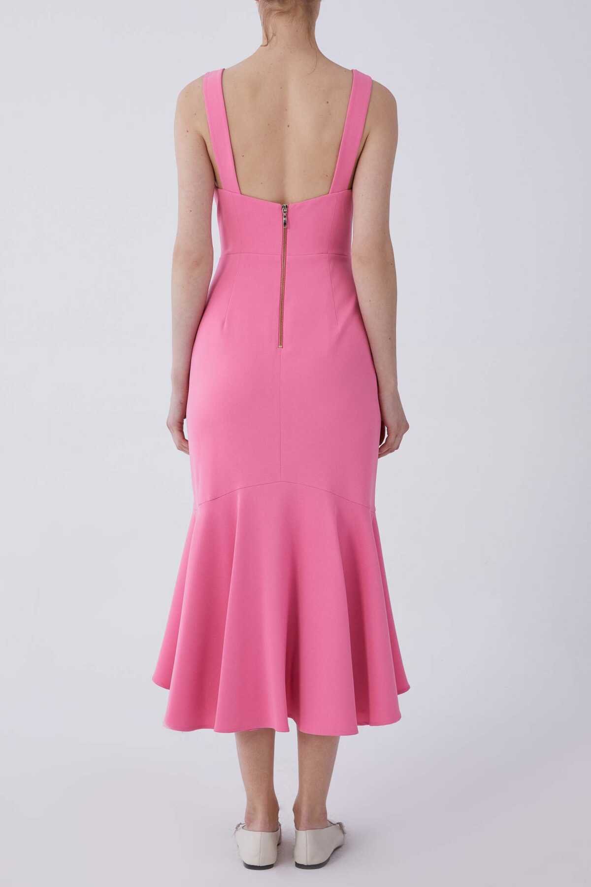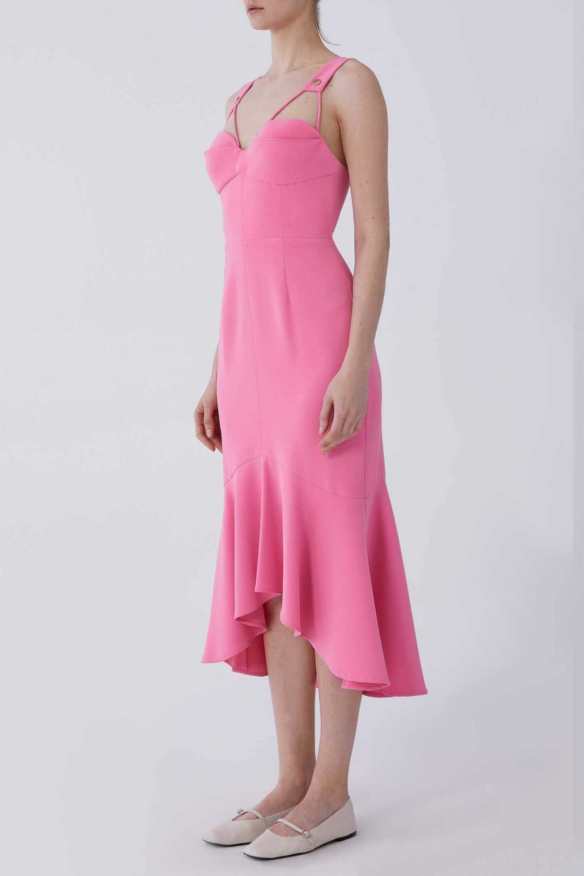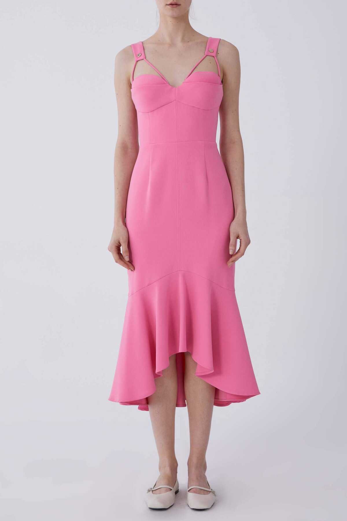 Askılı Gögüs Detaylı Etekleri Volanlı Abiye Elbise Pembe