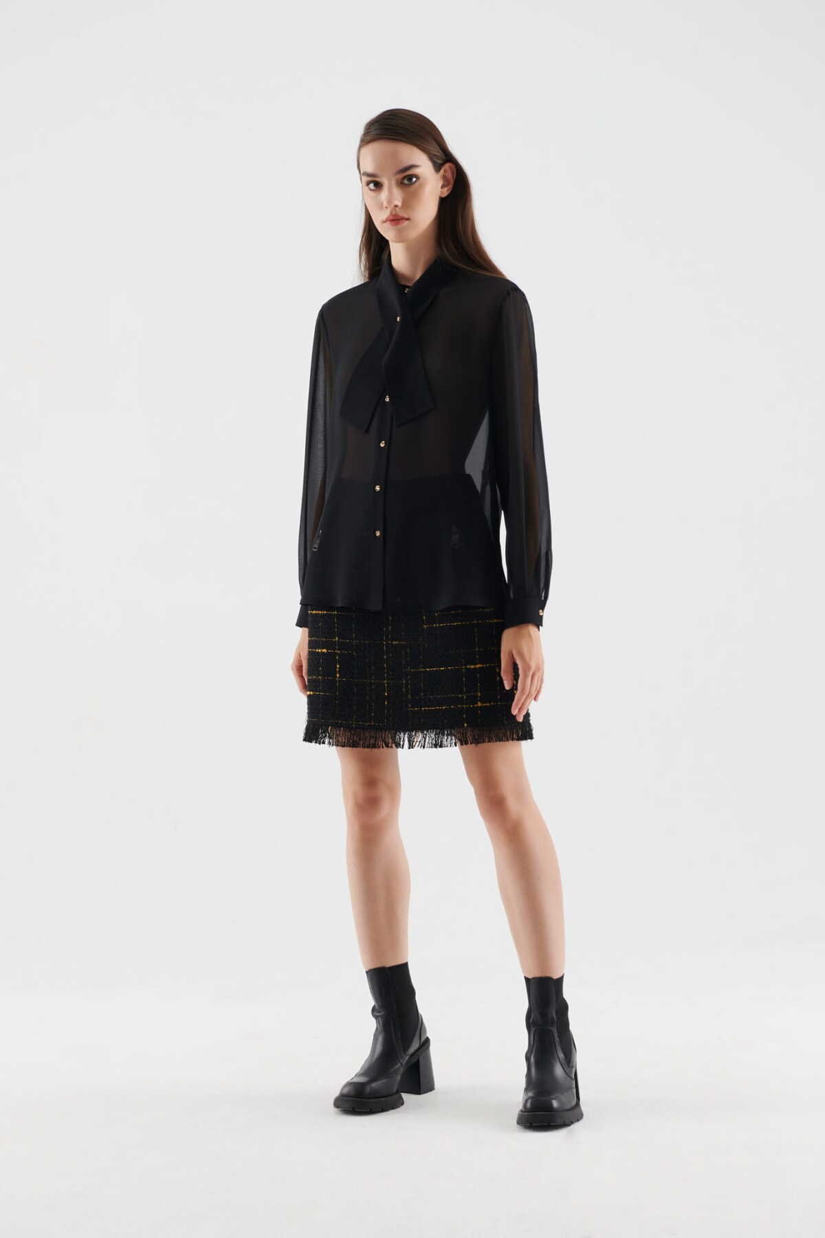 Pili Detaylı Beli Kemerli Gömlek Beyaz