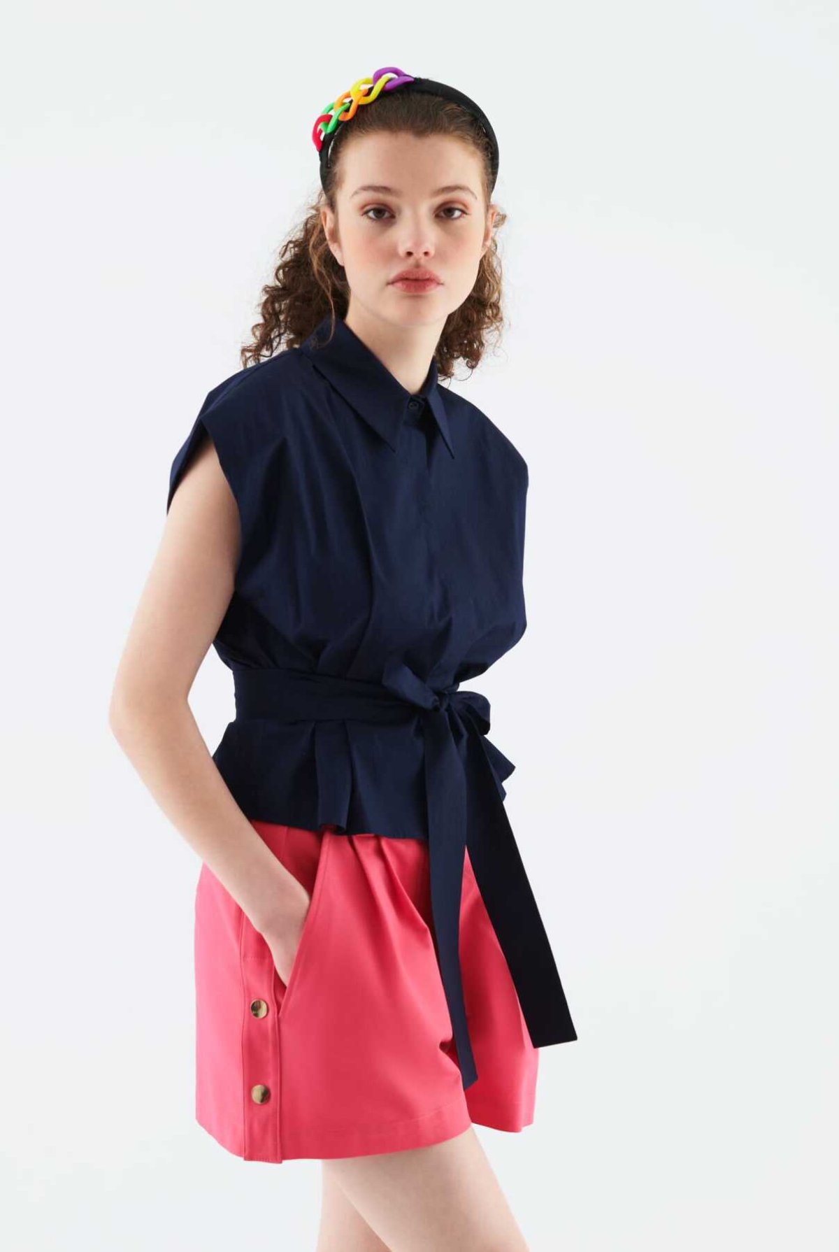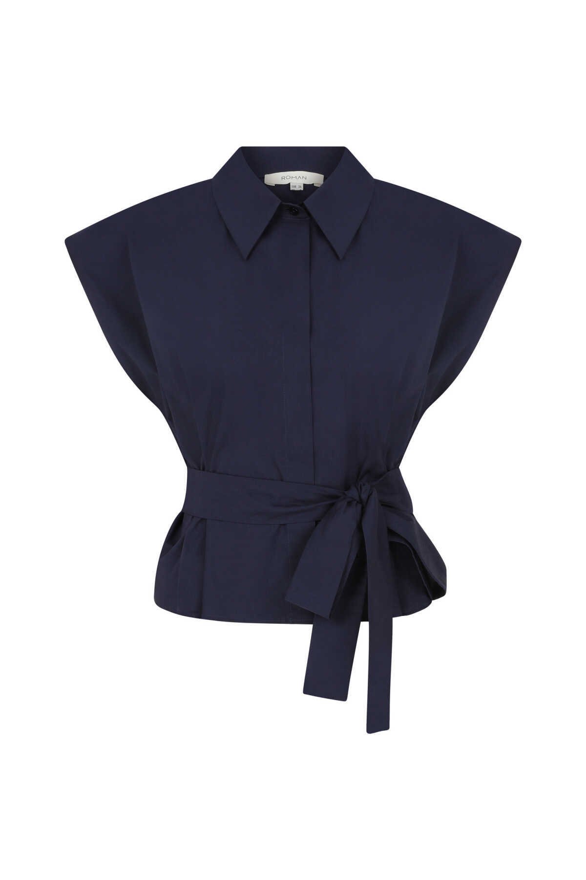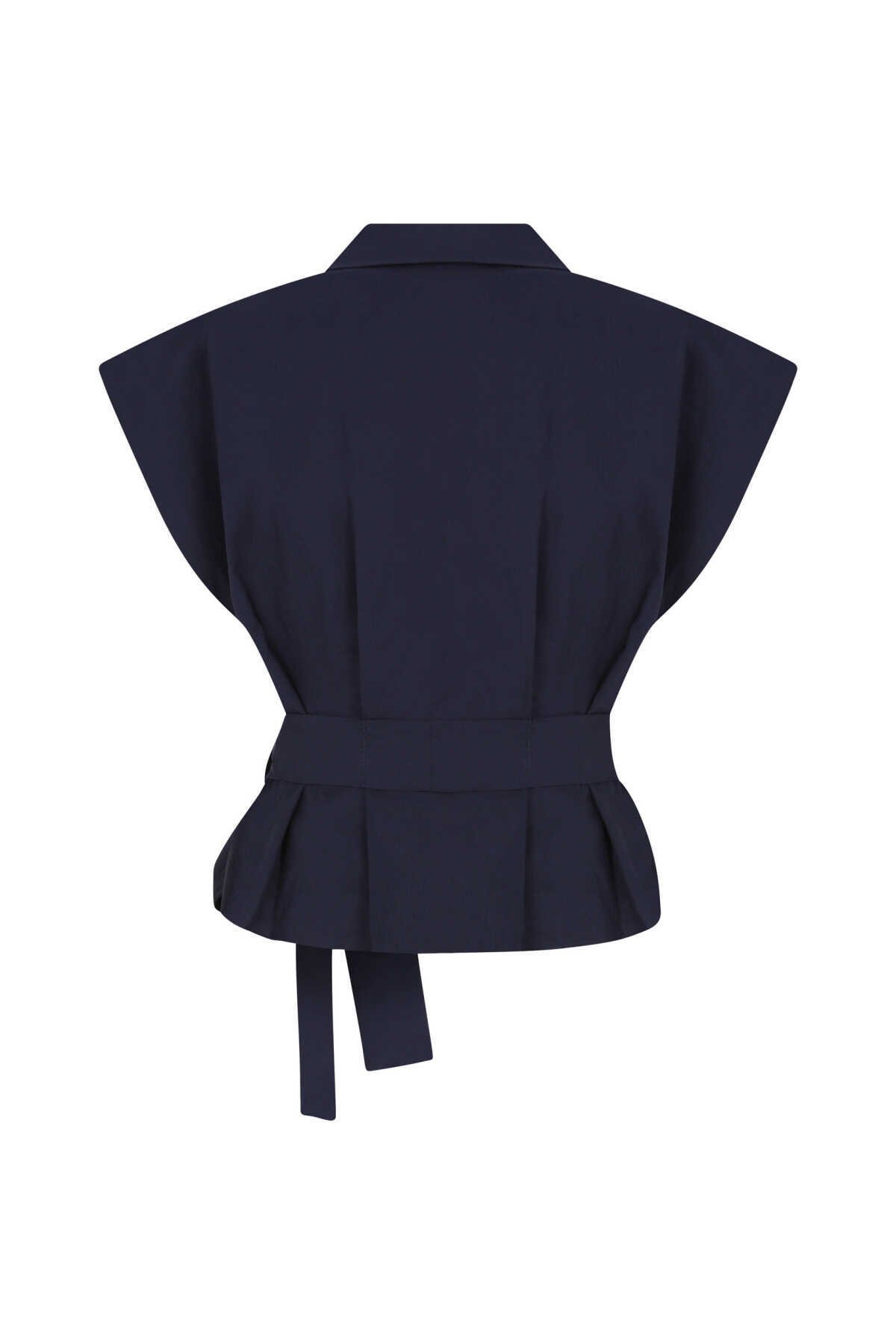 Bağlamalı Kolsuz Kadın Gömlek Lacivert