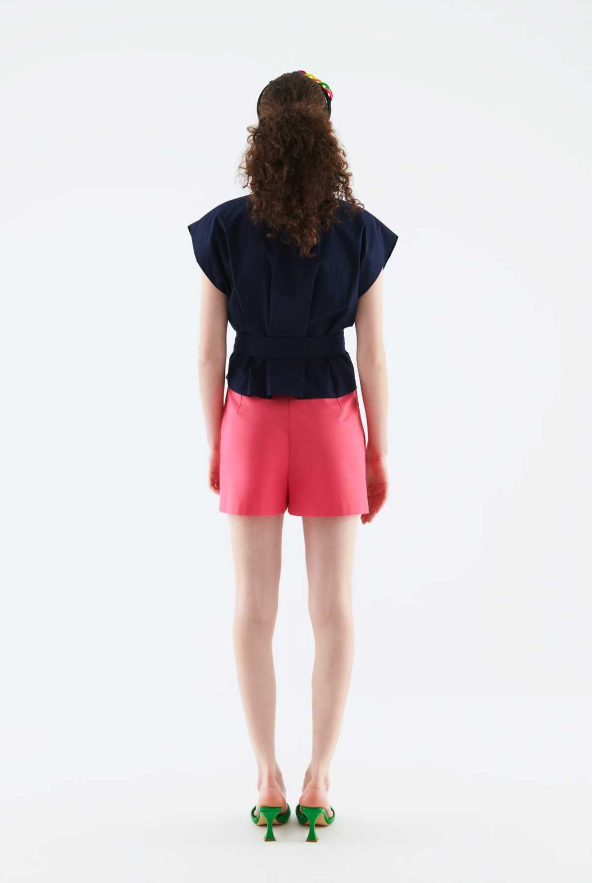 Pili Detaylı Beli Kemerli Gömlek Beyaz