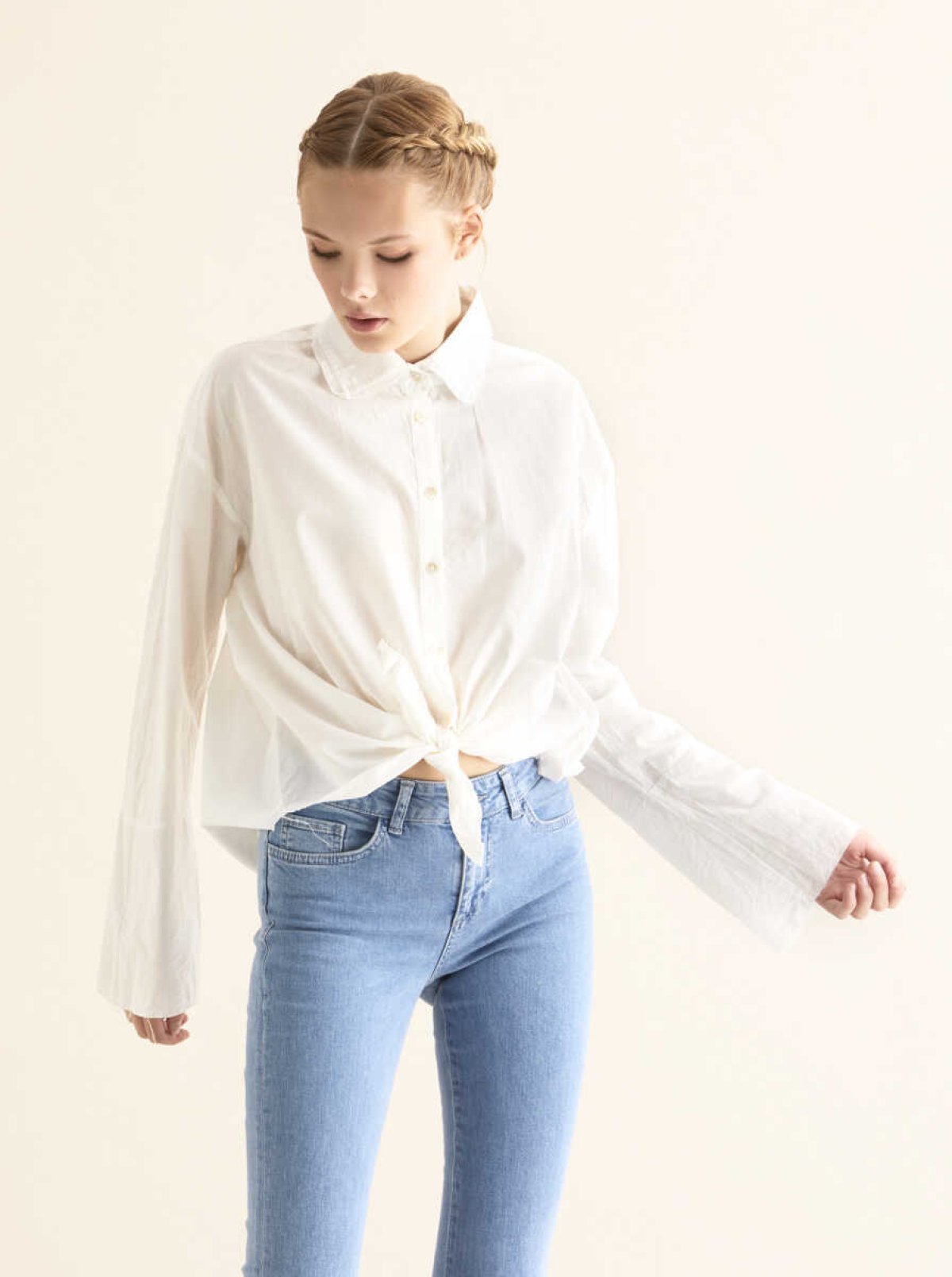 Pili Detaylı Beli Kemerli Gömlek Beyaz