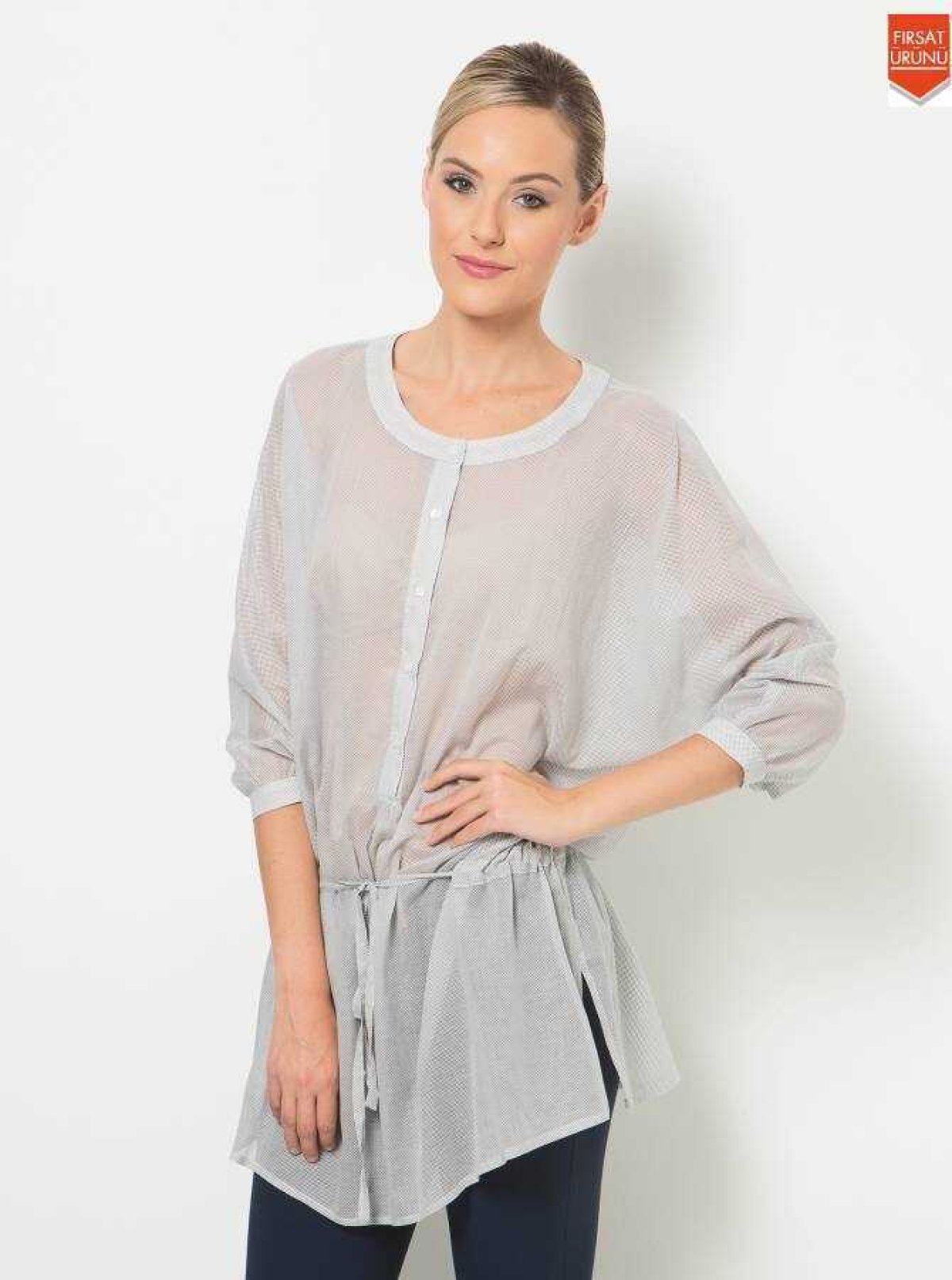 Bel Detaylı Kadın Bluz Gri