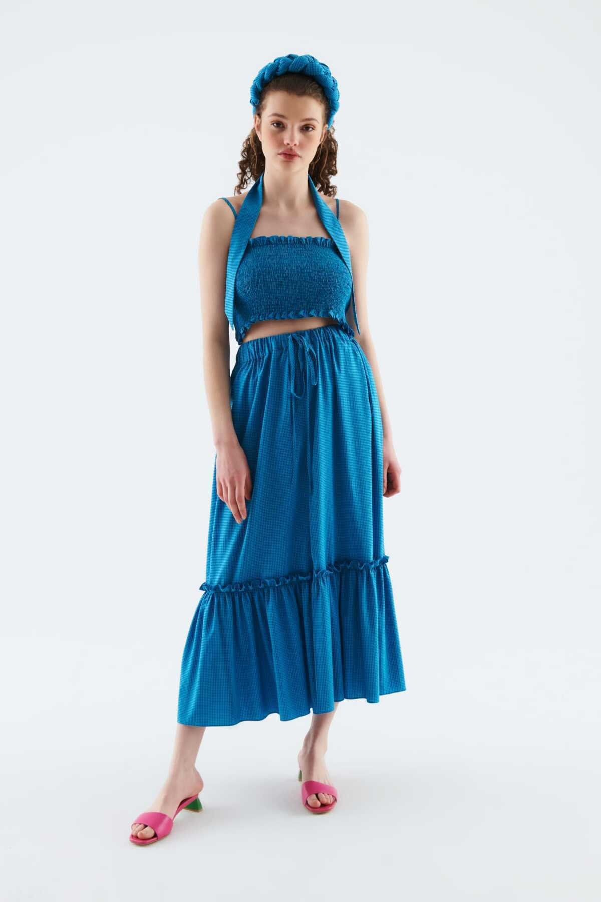 Pili Detaylı Çift Cepli Mini Etek Taş