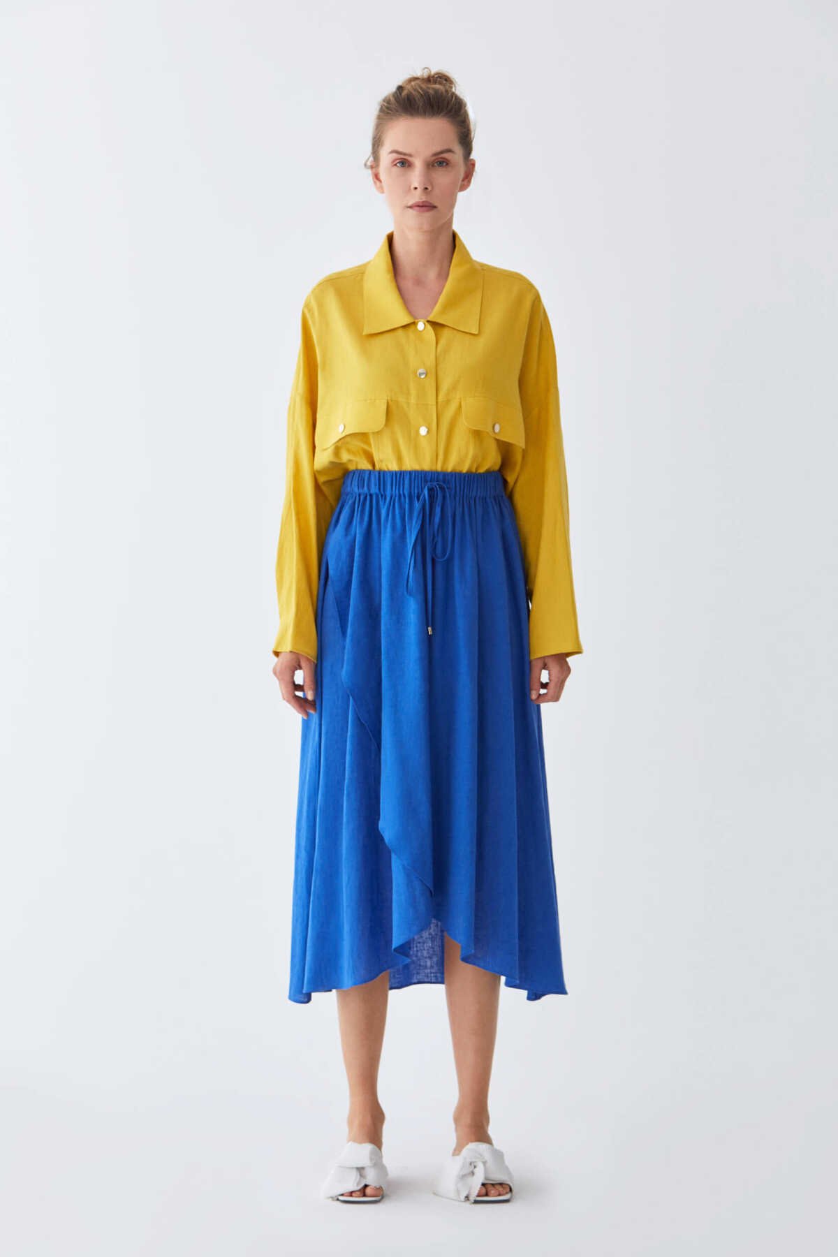 KUMAŞ İÇERİĞİ: Ana Kumaş: %50 Pamuk ,Ana Kumaş: %50 Keten , YIKAMA TALİMATI: Yıkama Yapılmaz ÜTÜLEME TALİMATI: Orta Isıda Ütüleme 150C KURUTMA TALİMATI: Tamburlu Kurutma Yapılmaz ALT ÜRÜN GRUBU: Mıdı boy MODEL ÖLÇÜLERİ: