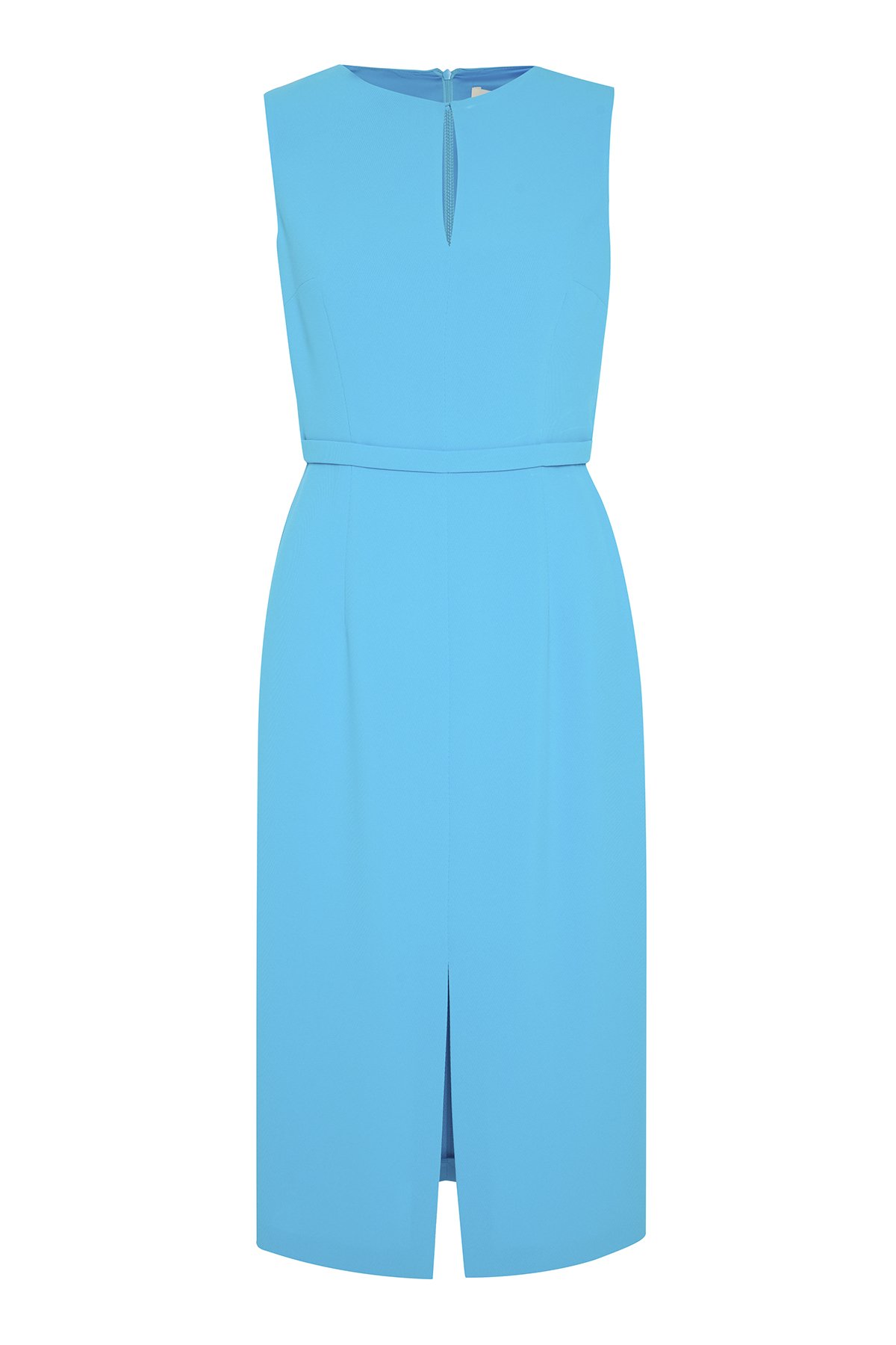Bele Oturan Şerit ve Yırtmaç Detaylı Midi Boy Elbise Mavi - 1