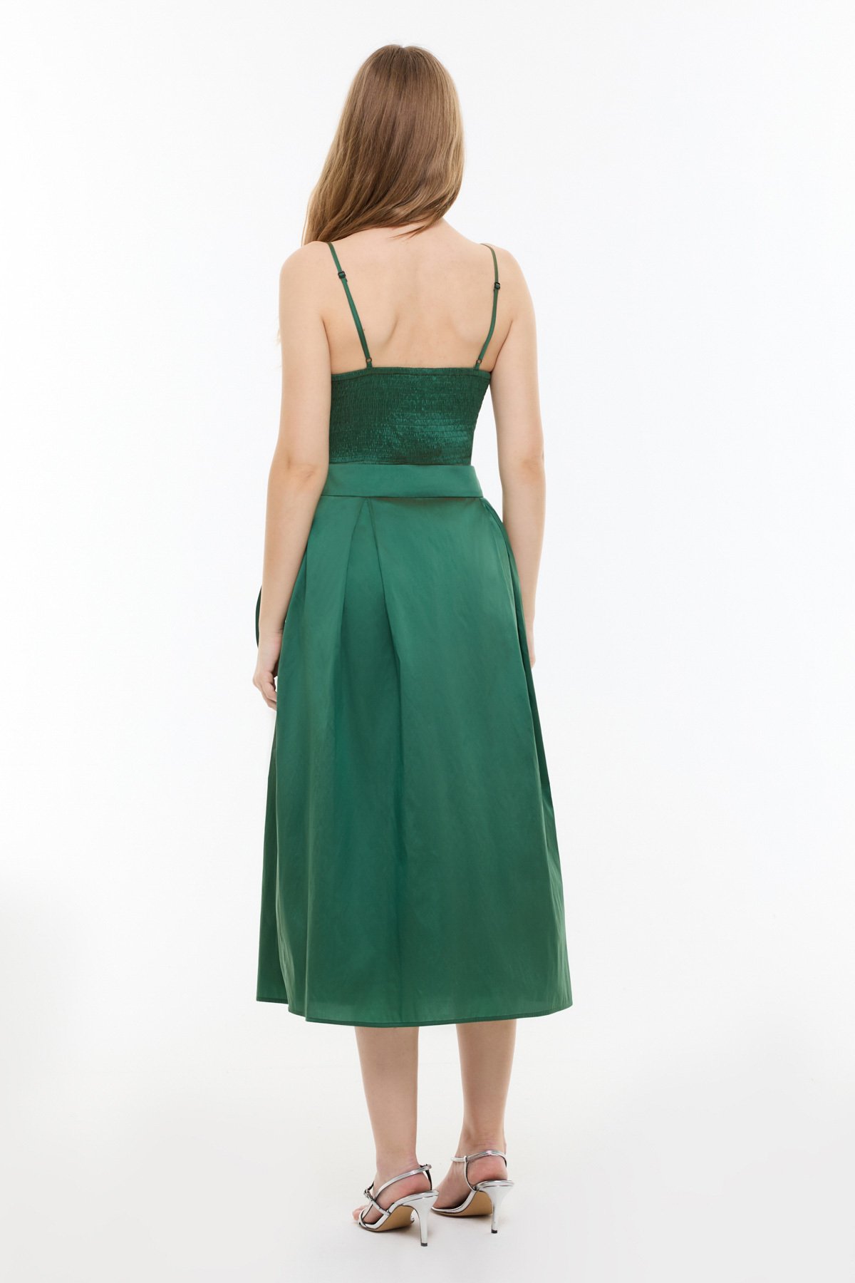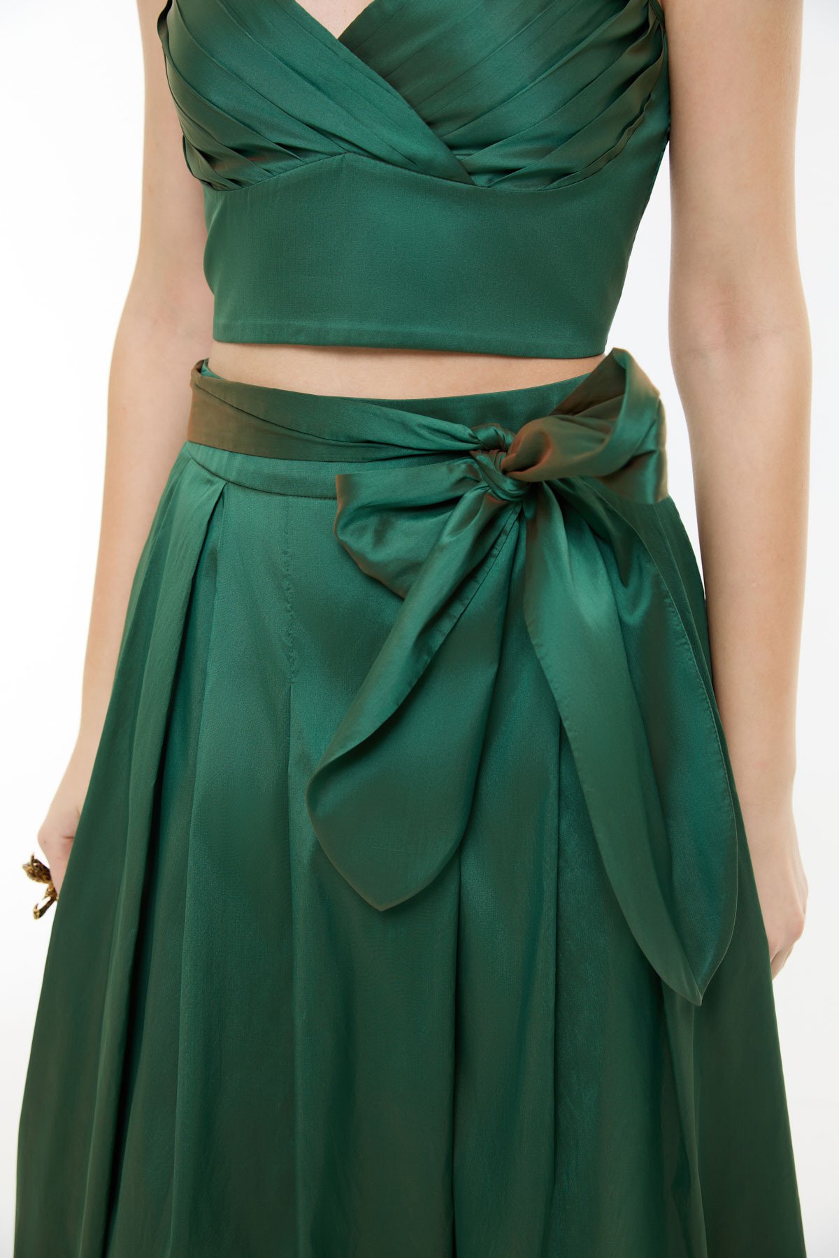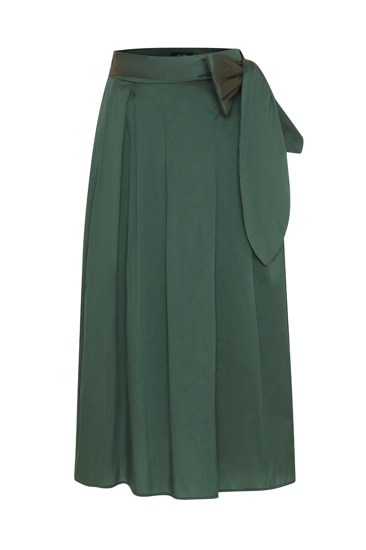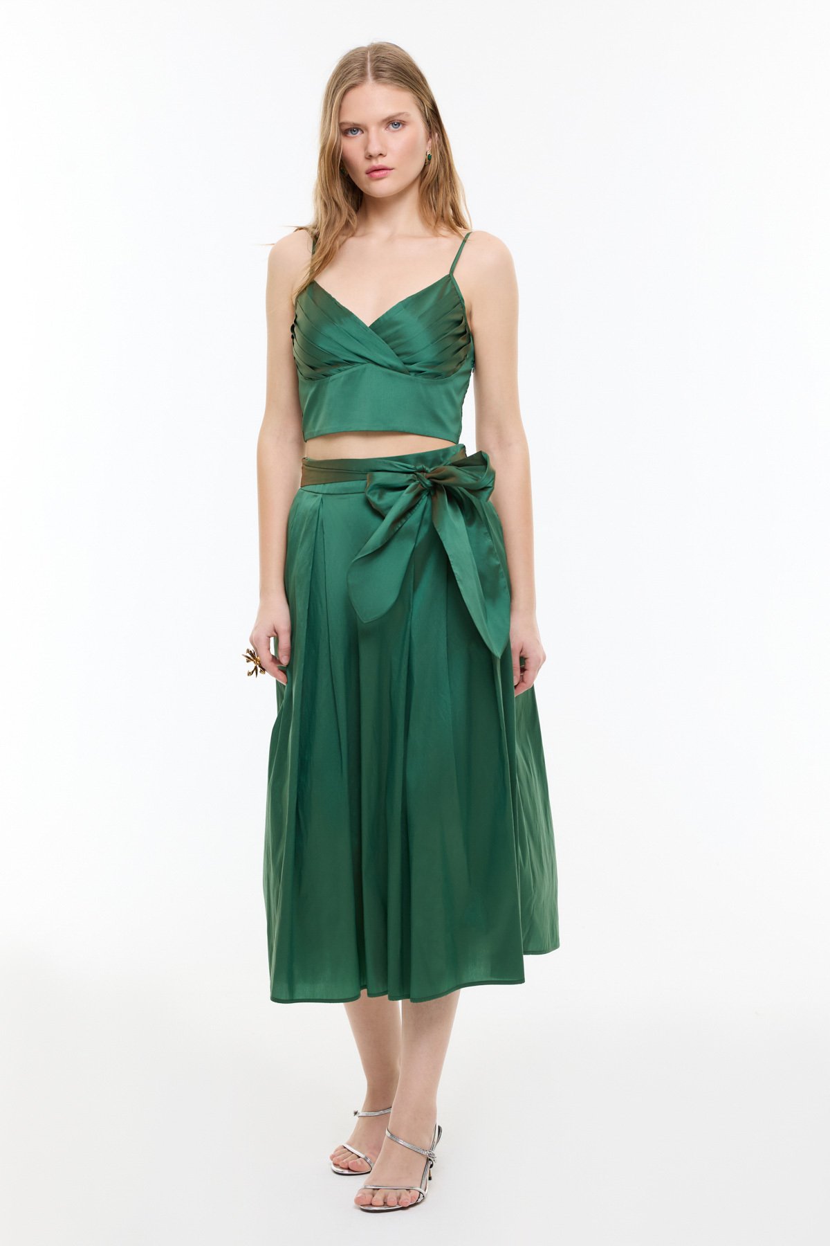 Beli Bağlama Detaylı Midi Boy Tafta Etek Yeşil