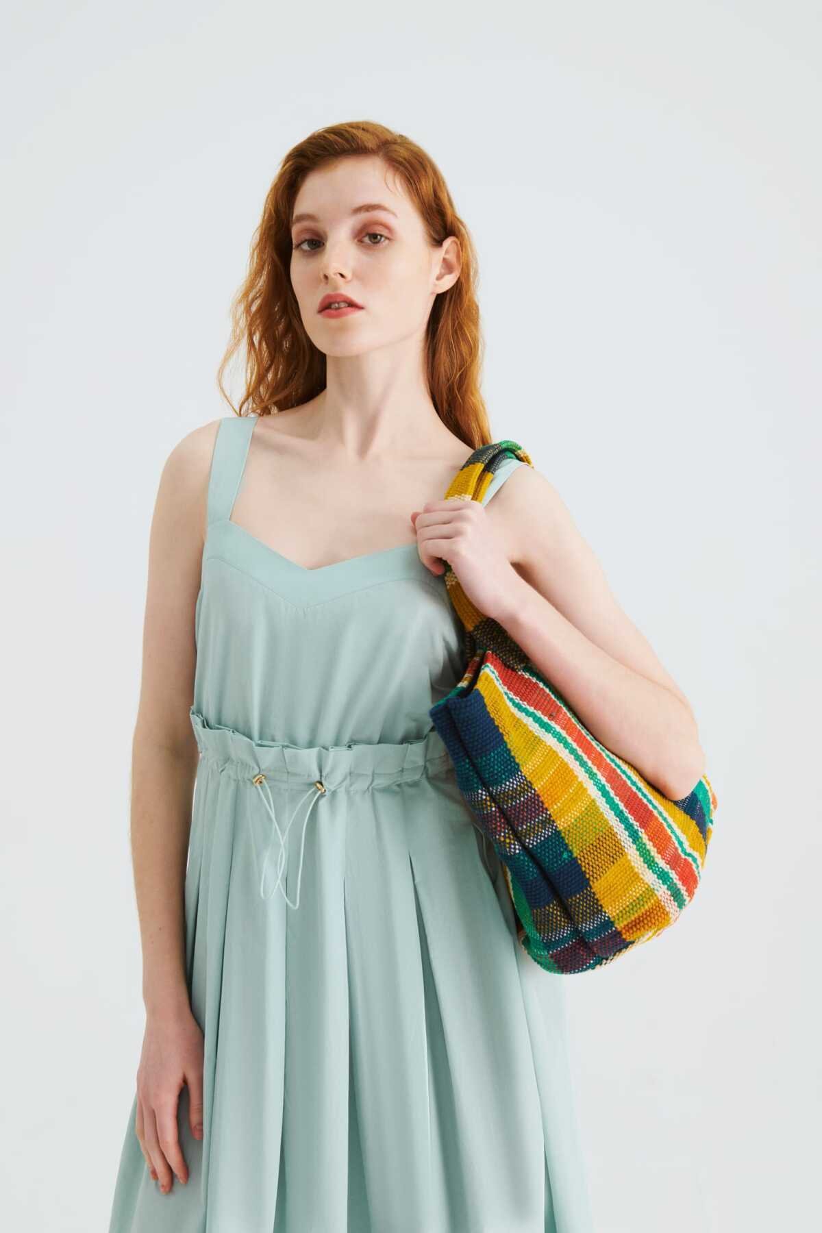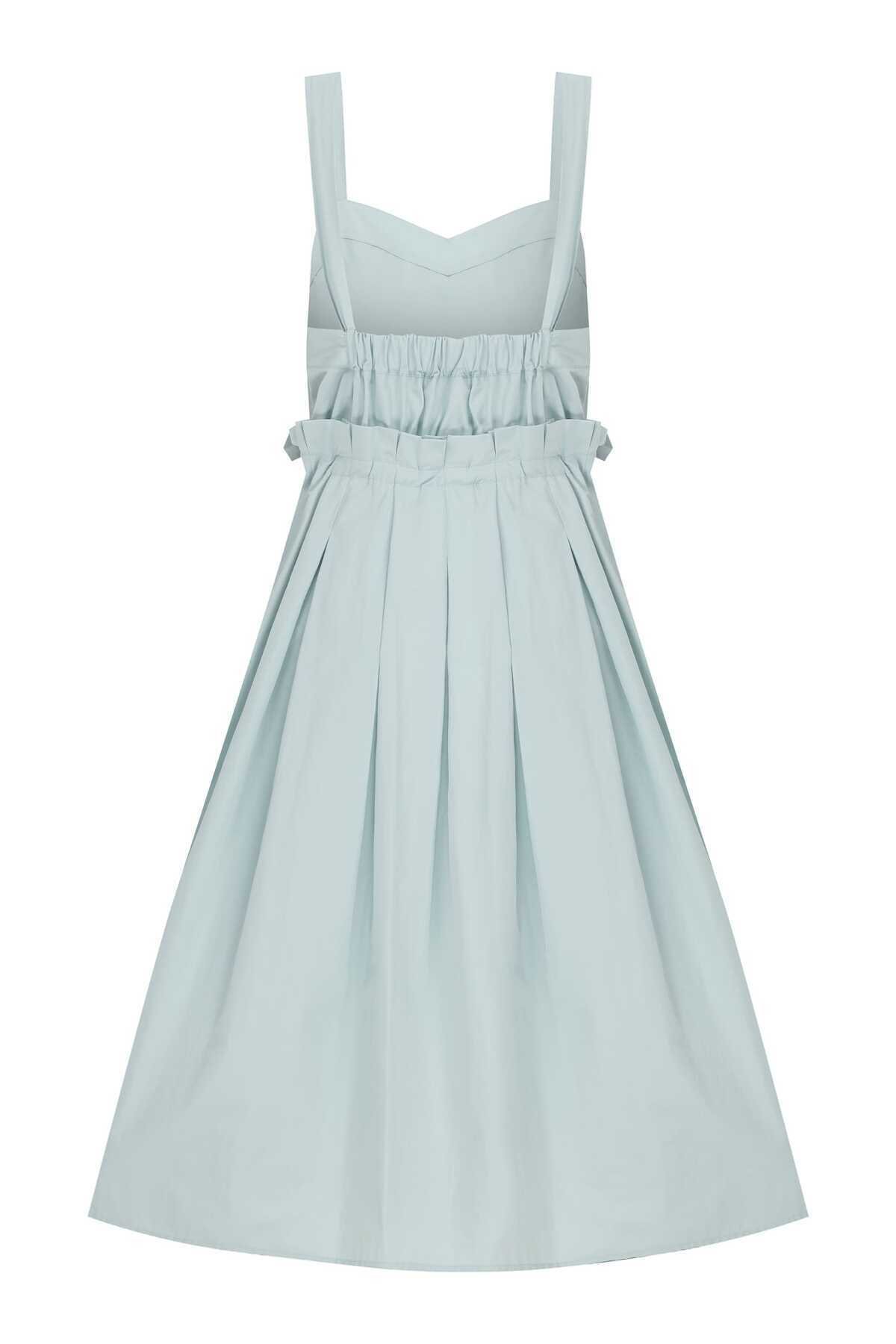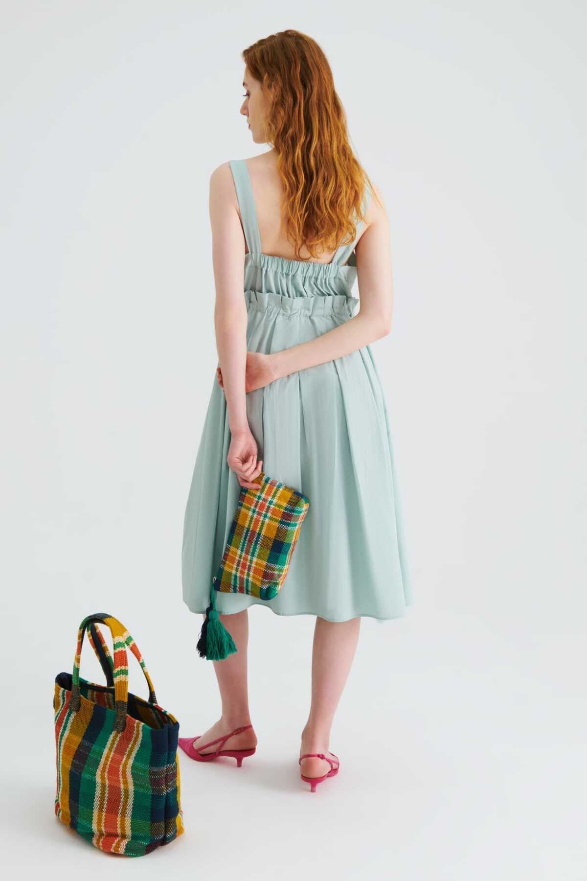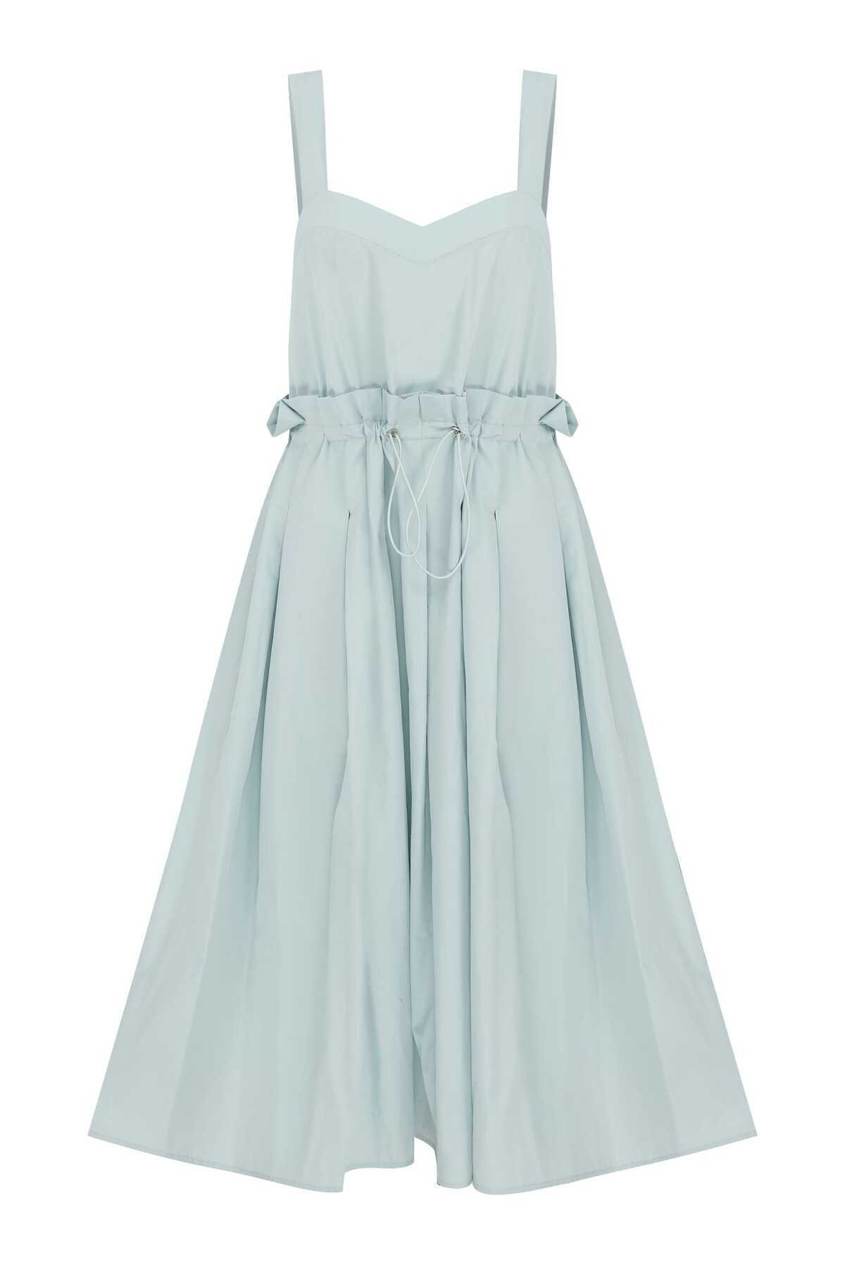 Beli Lastikli Günlük Elbise Su Yeşili