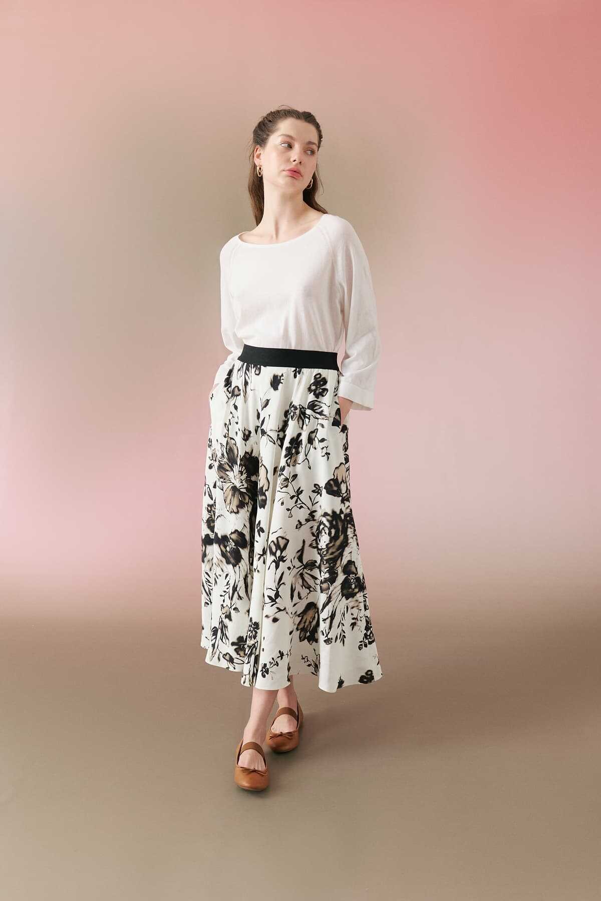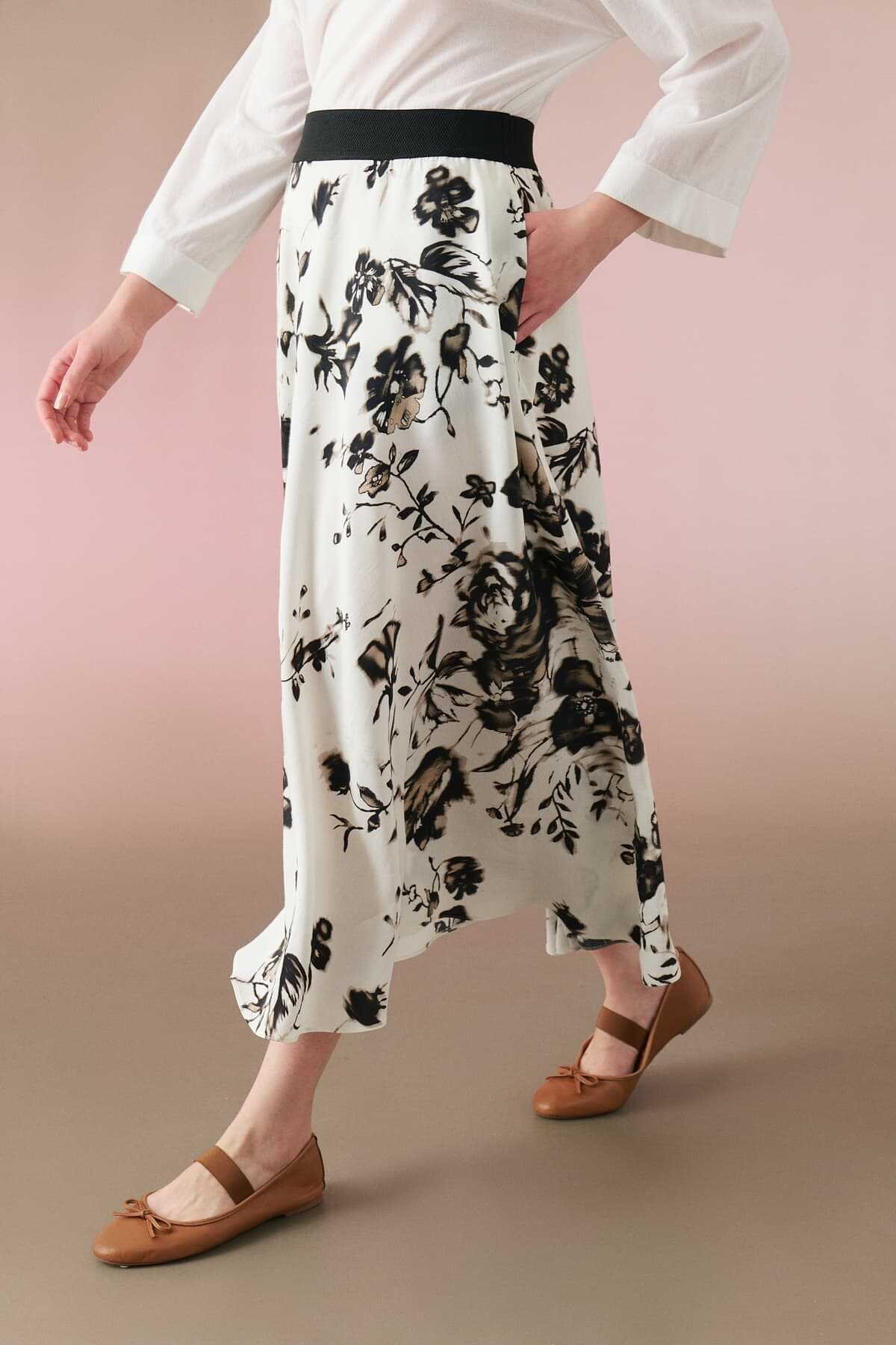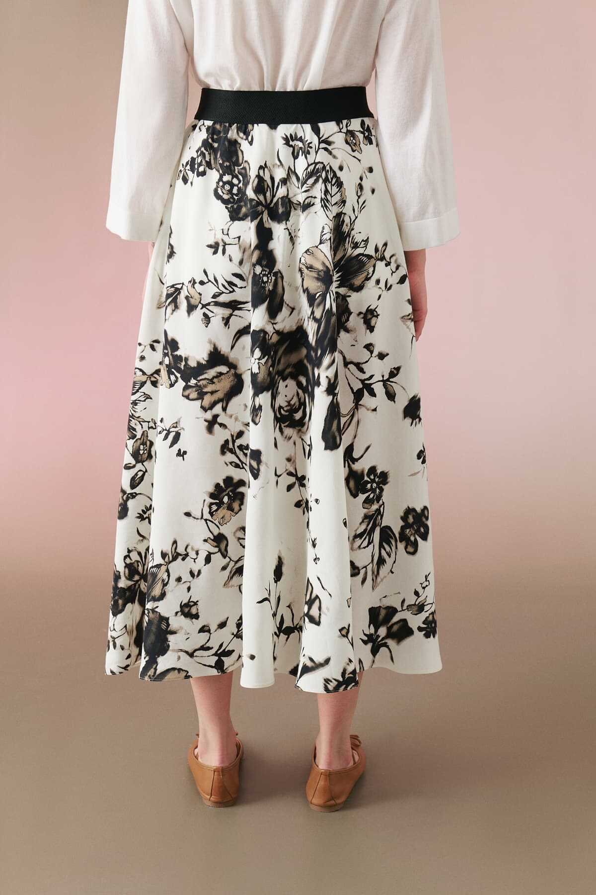 Nakışlı Midi Boy Keten Etek Bej- Siyah