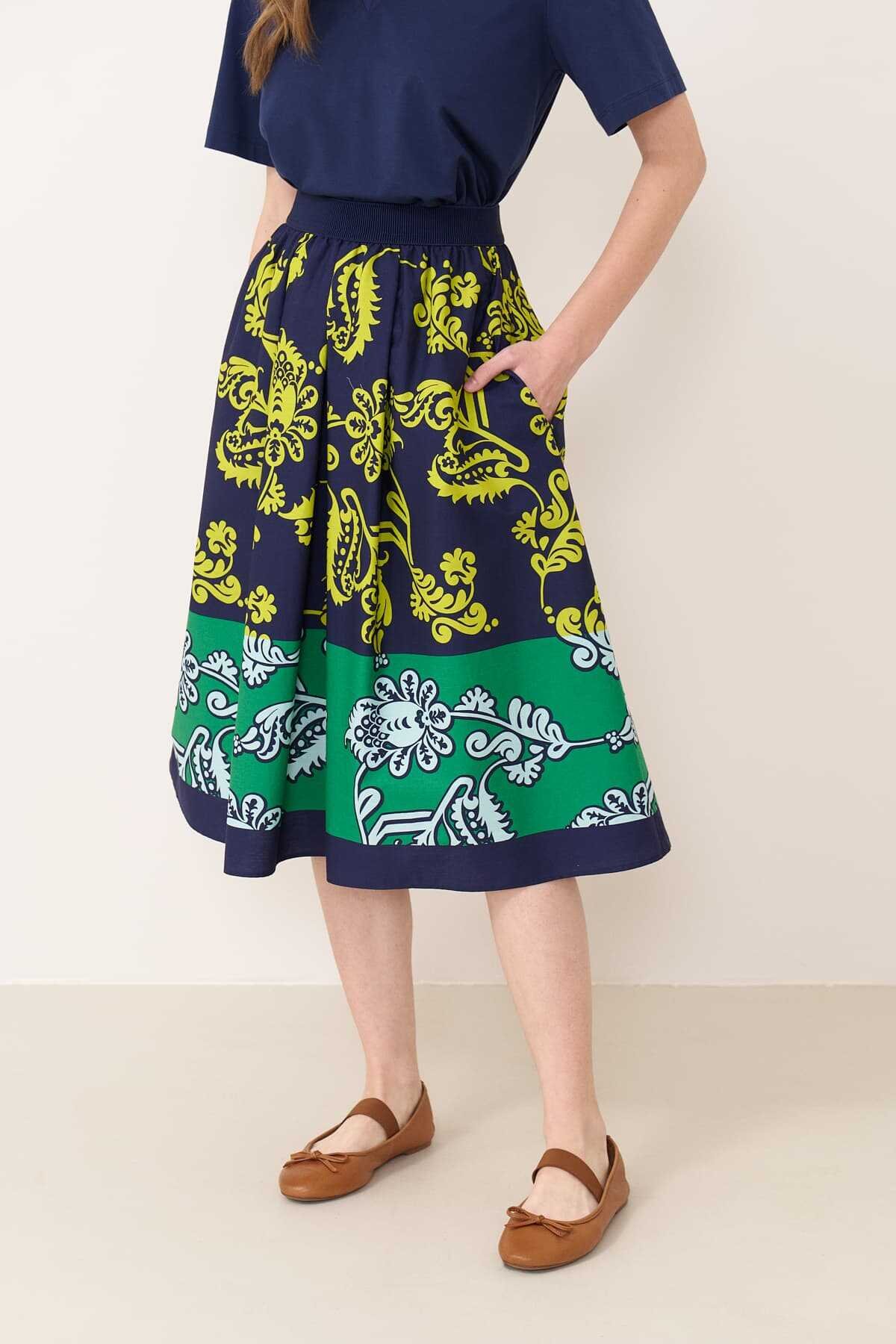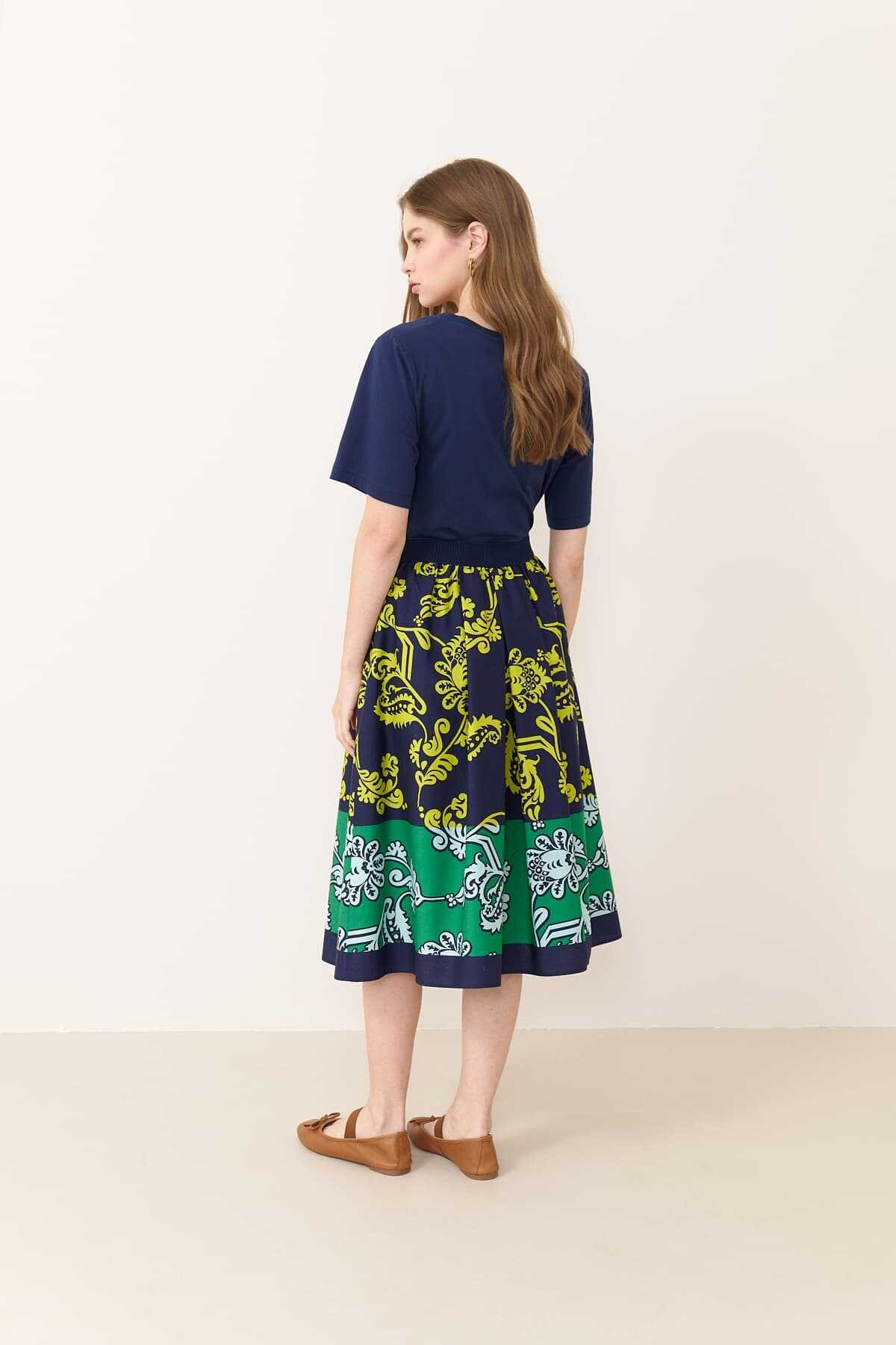 Beli lastikli midi bot desenli etekli MODEL ÖLÇÜLERİ: Beden: 36 Boy: 177-178 cm Göğüs: 80-84 cm Bel: 60-62 cm Kalça: 89-92 cm Model S Beden Giymektedir.