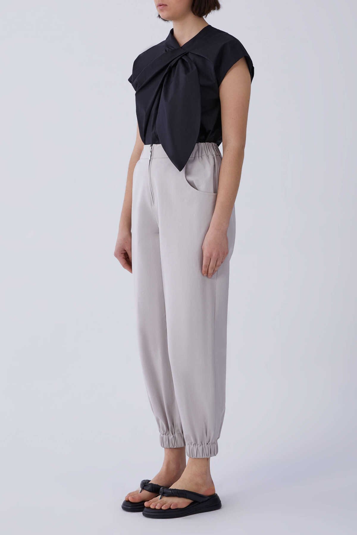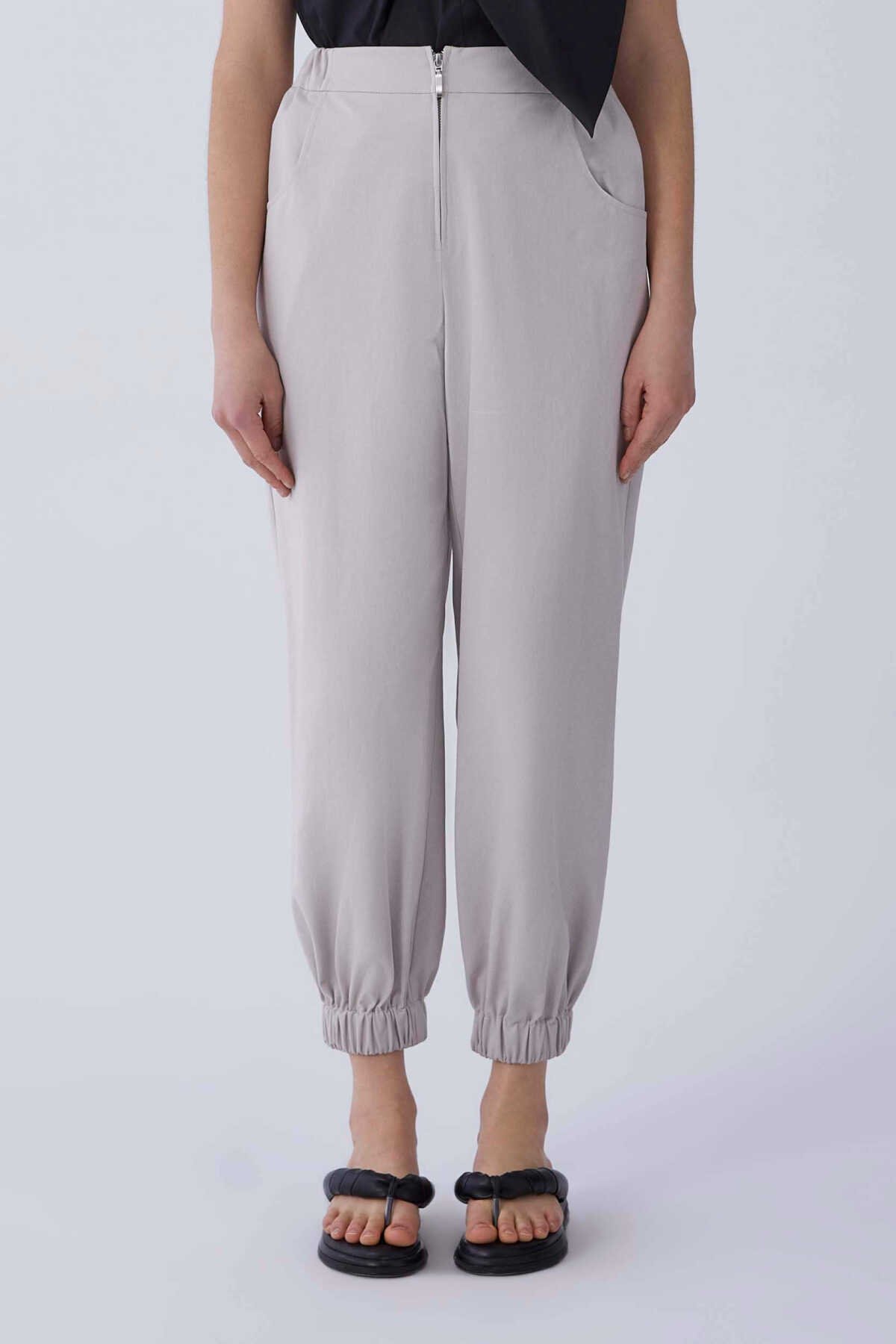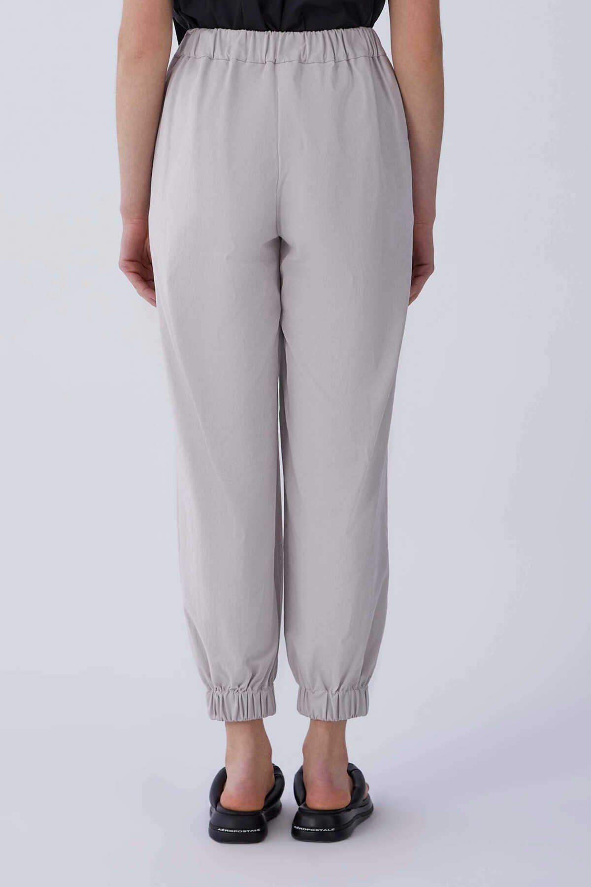 Beli Ve Paçası Lastikli Kadın Pantolon Taş