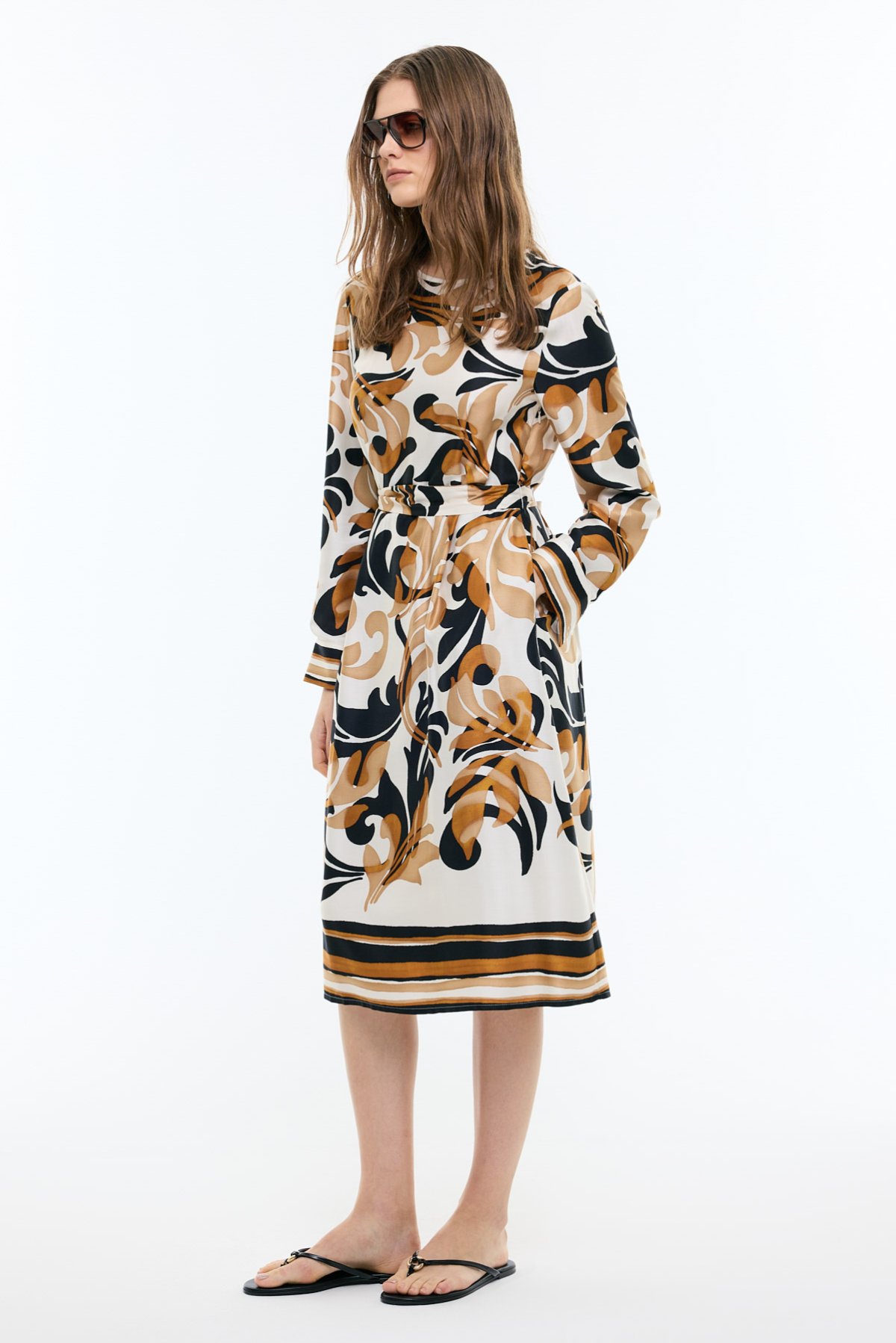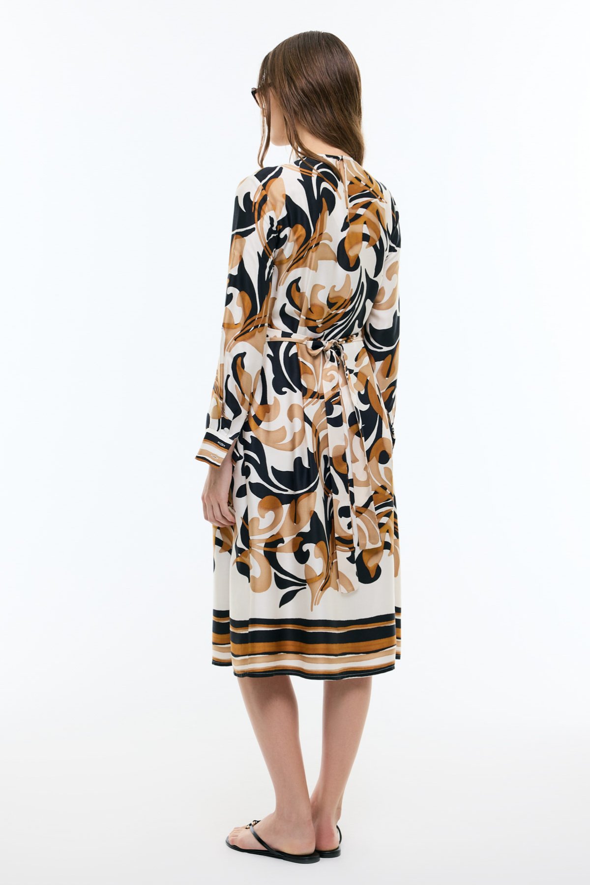 Bisiklet Yaka Beli Kuşaklı Midi Boy Elbise Standart Renk - 3