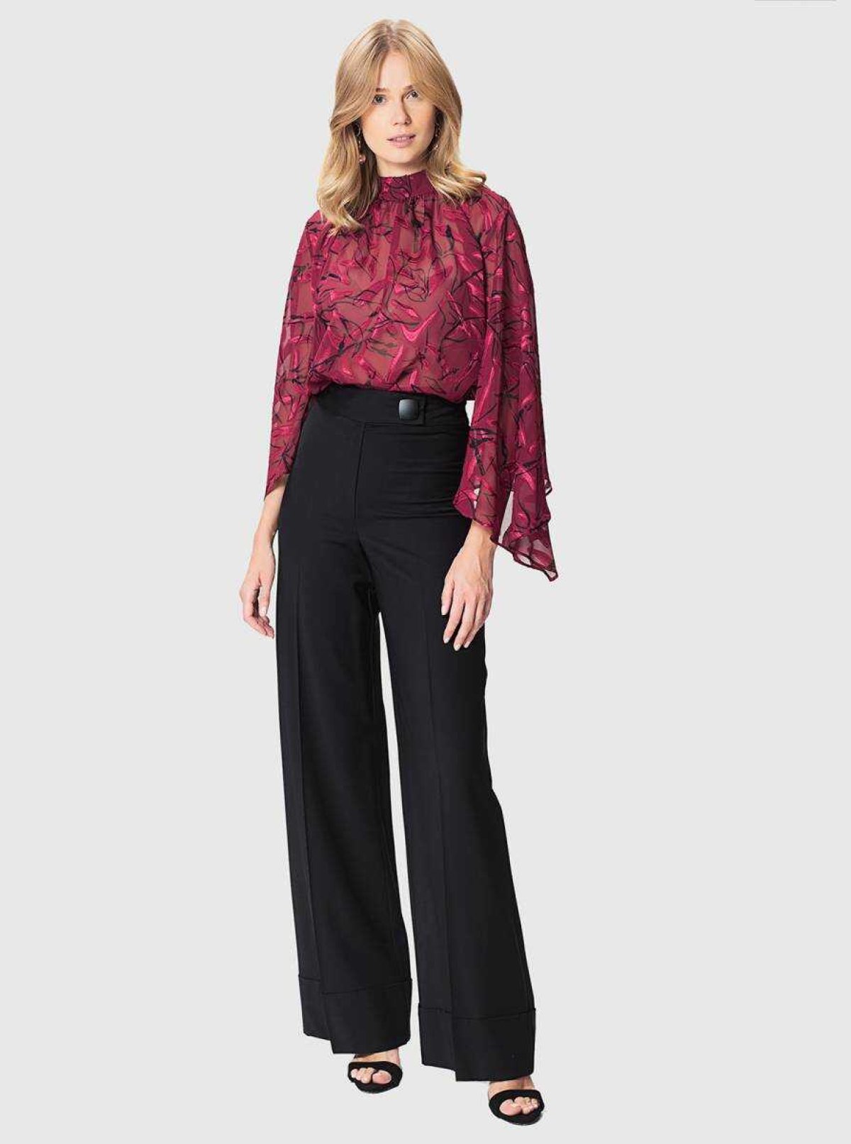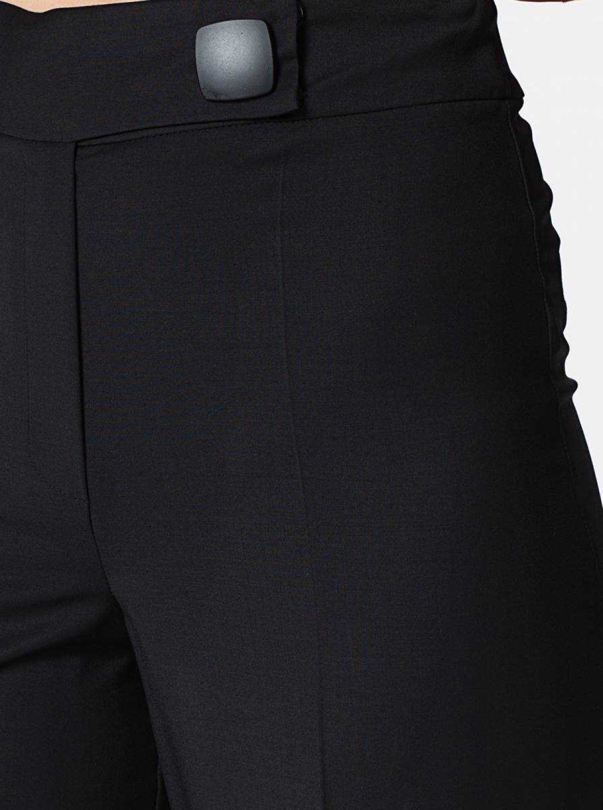 Bol Paça Düğme Detaylı Pantolon Siyah