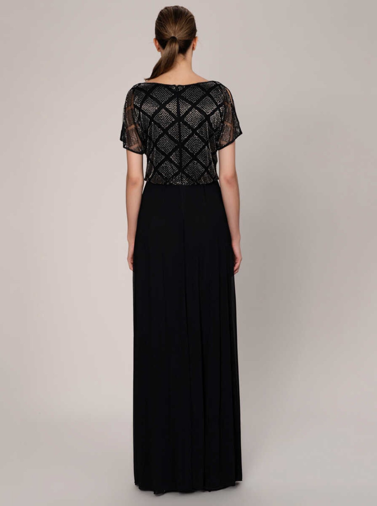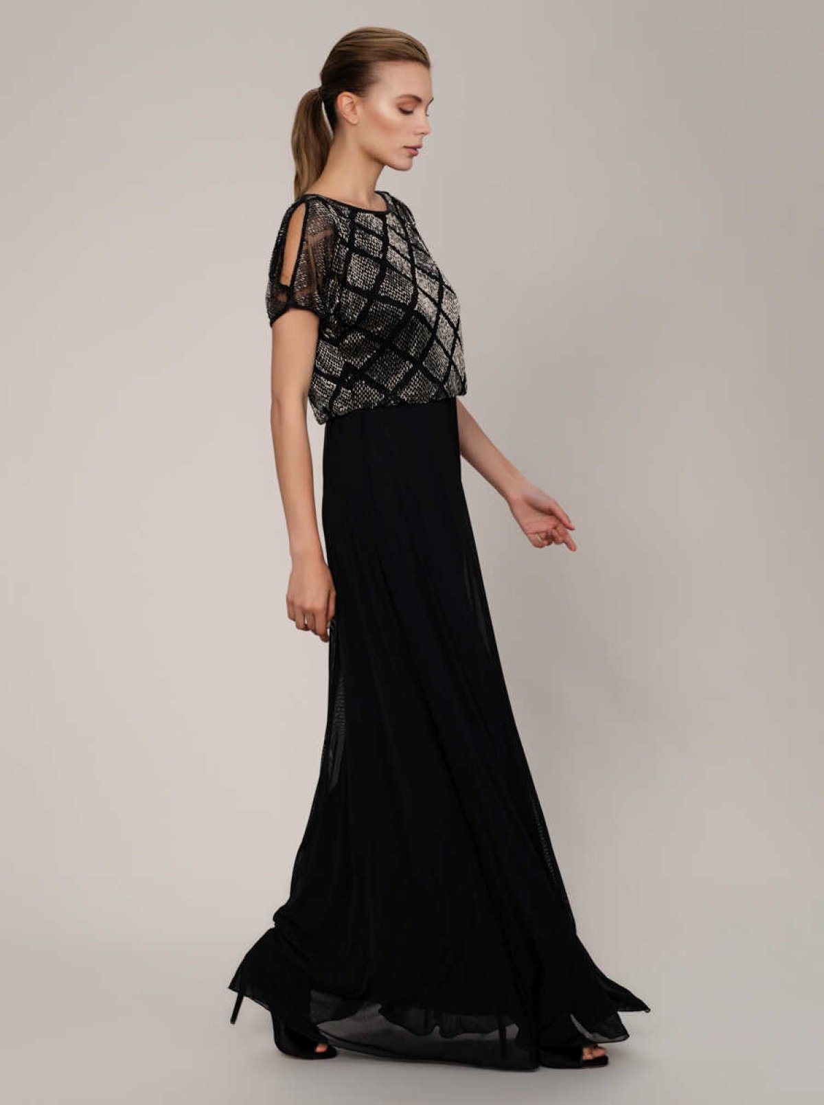 Yırtmaçlı Kolları Otriş Detaylı Elbise Siyah