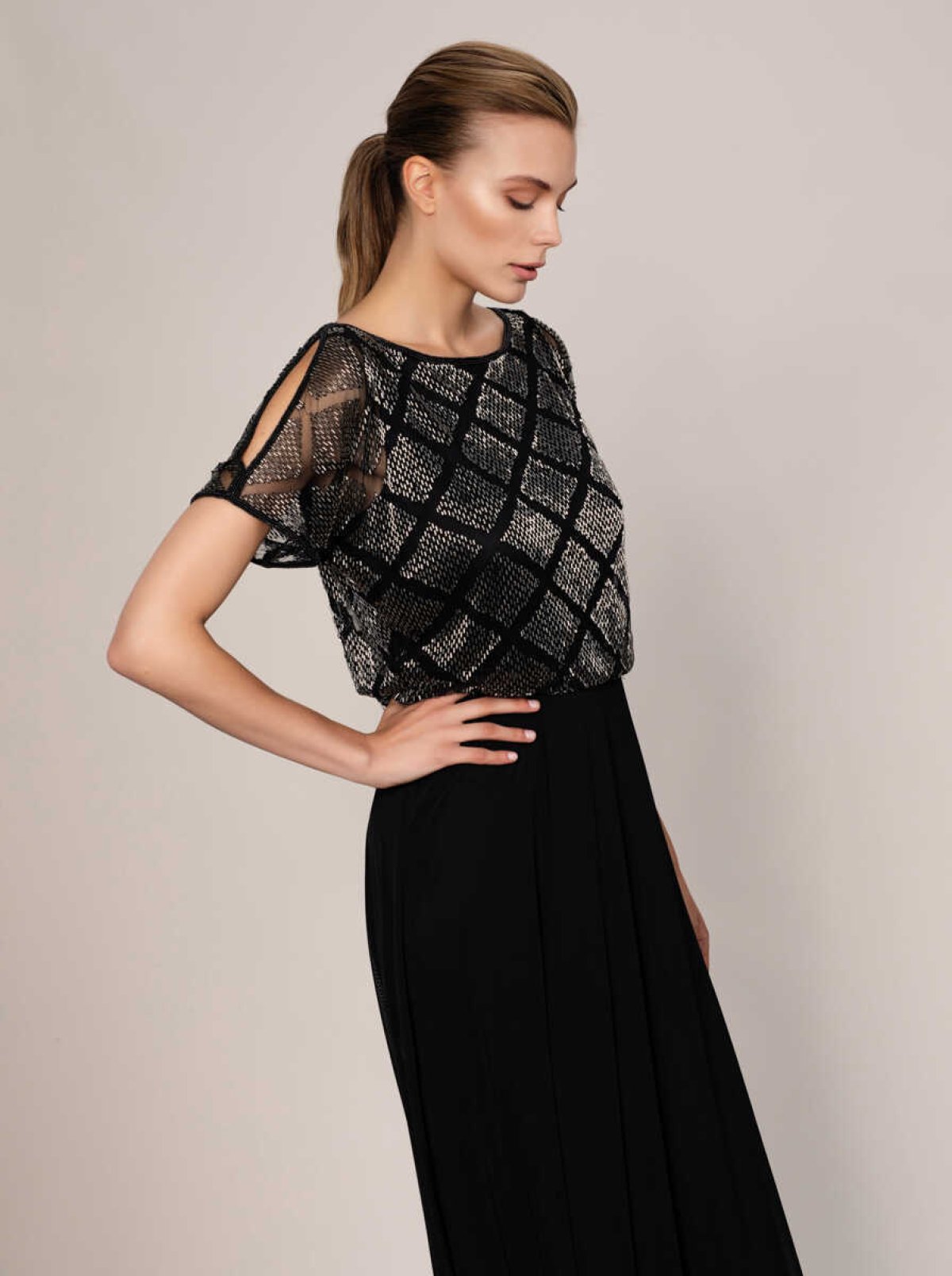 Üst Bedeni Organze Ve Fiyonklu Kolsuz Kısa Elbise Siyah