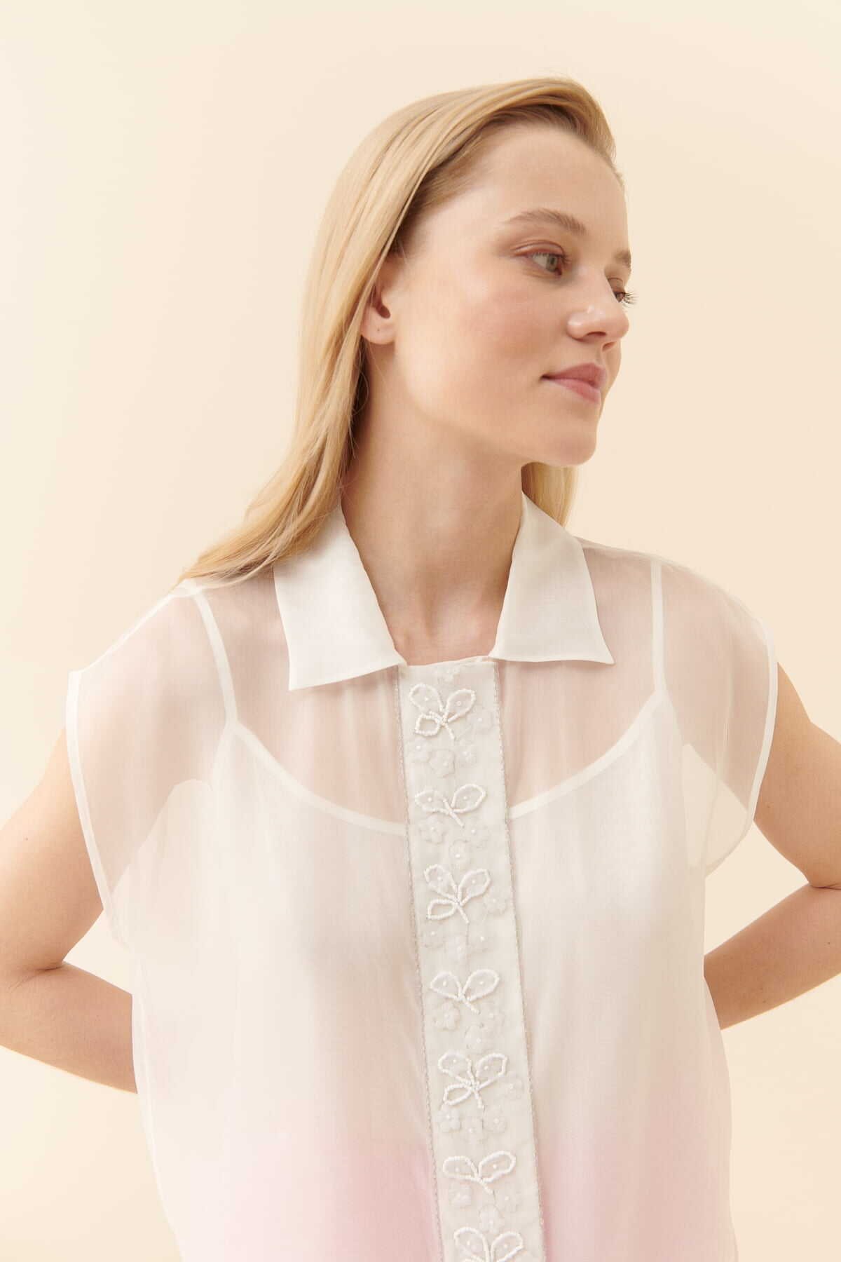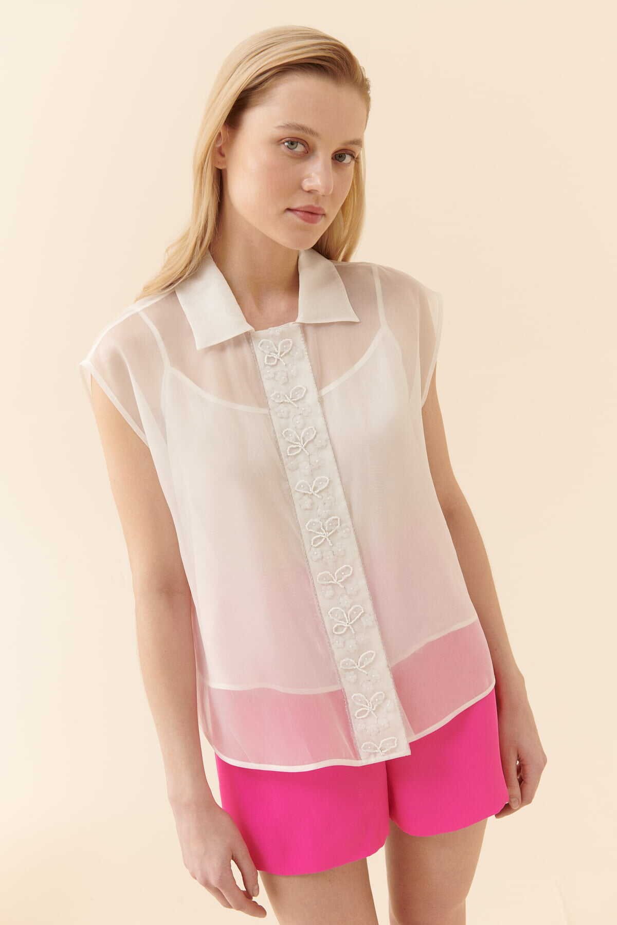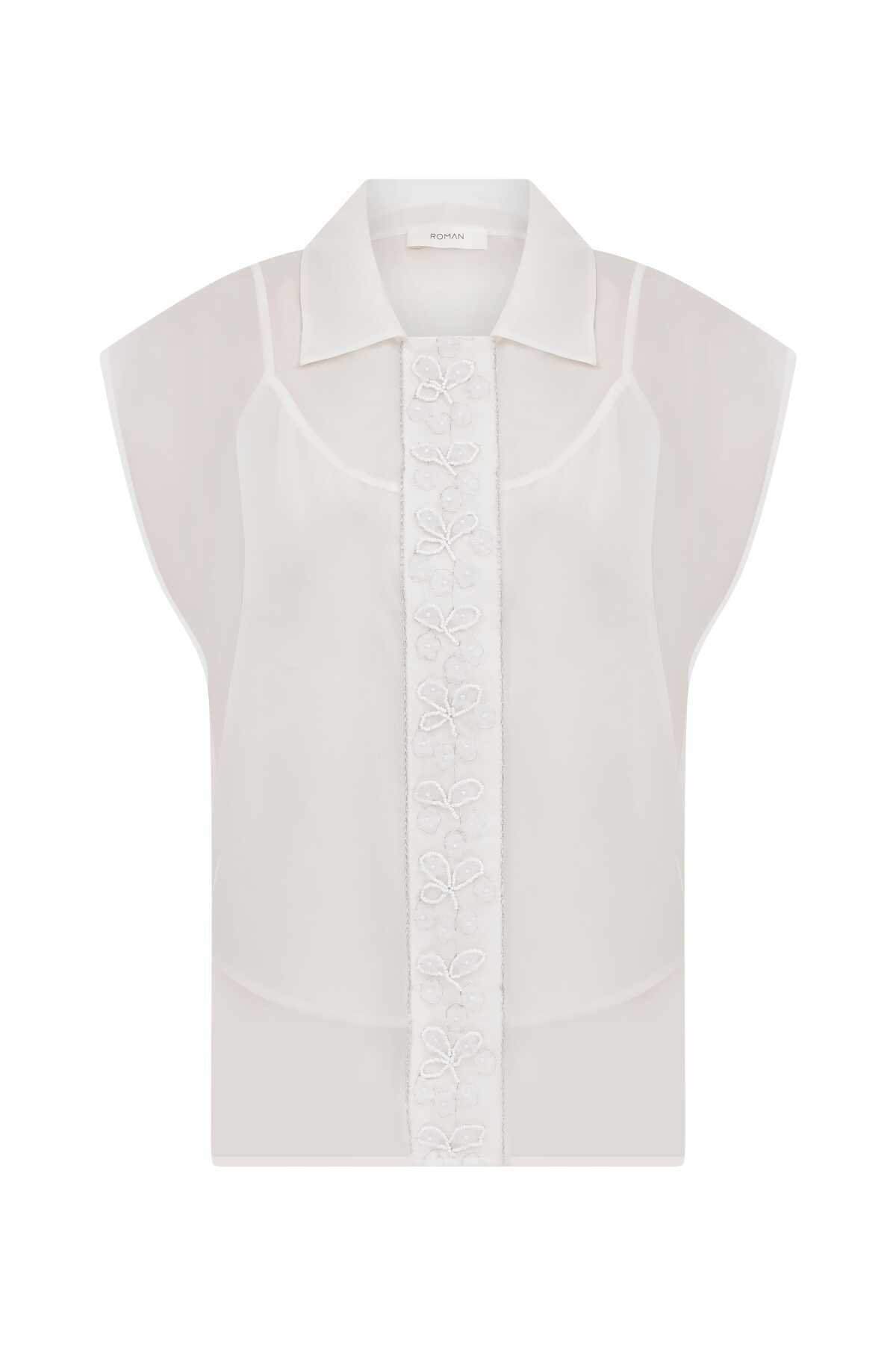 Boncuk İşlemeli Kolsuz Kadın Bluz Beyaz