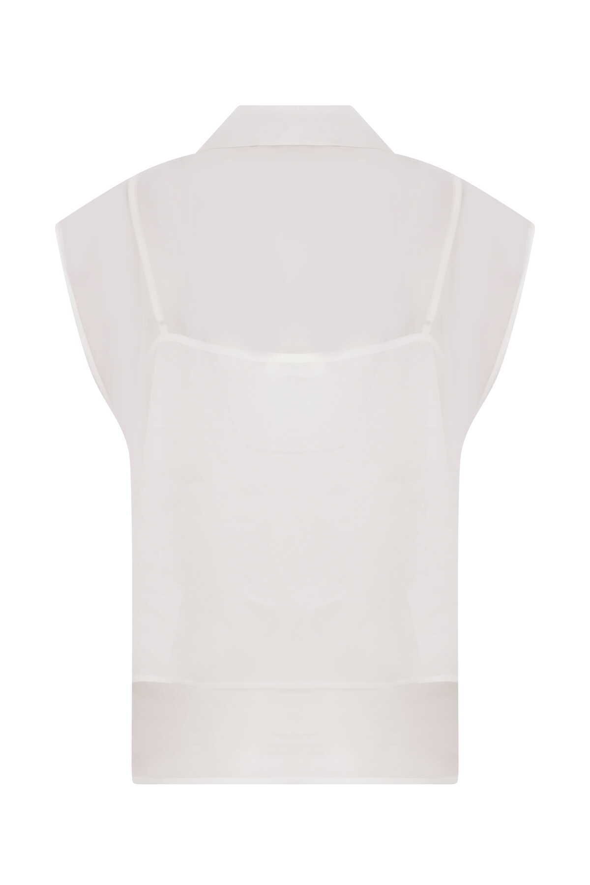 Yakası Fular Detaylı Kolsuz Poplin Bluz Beyaz