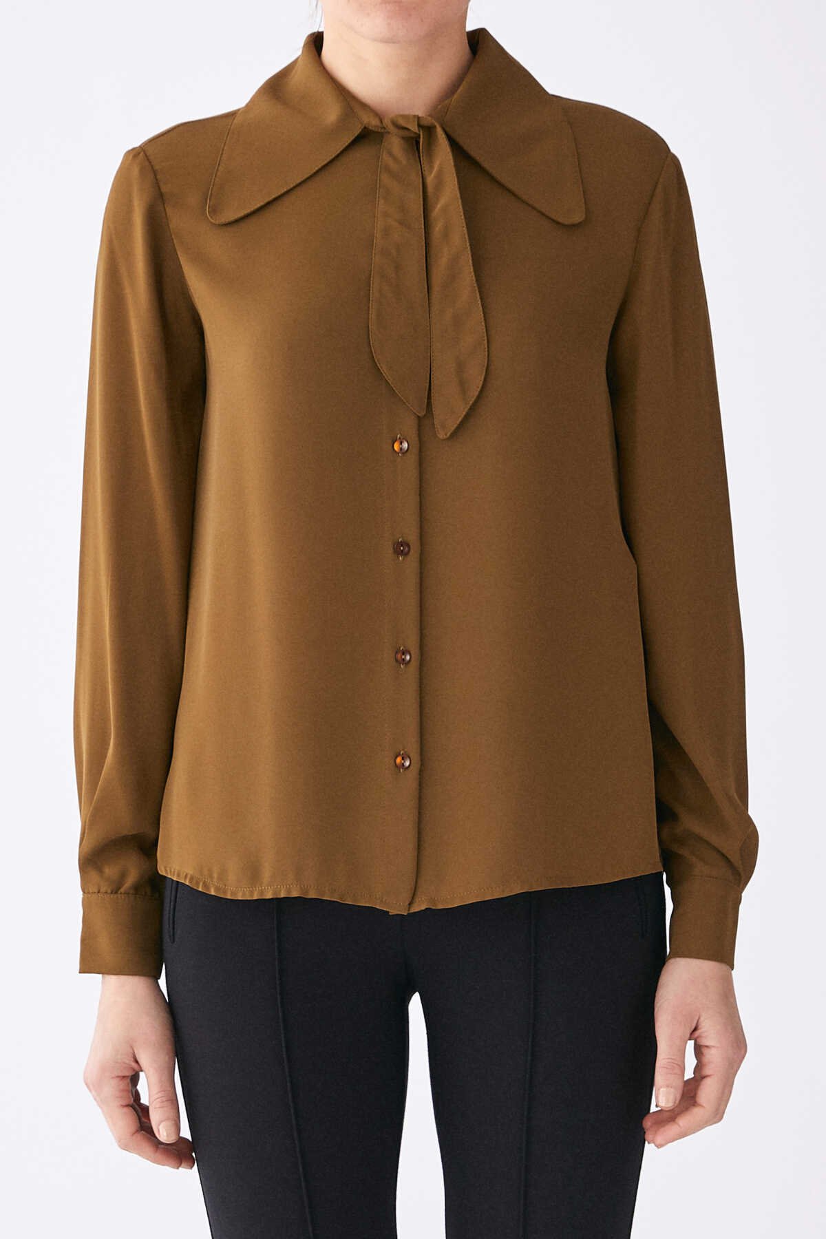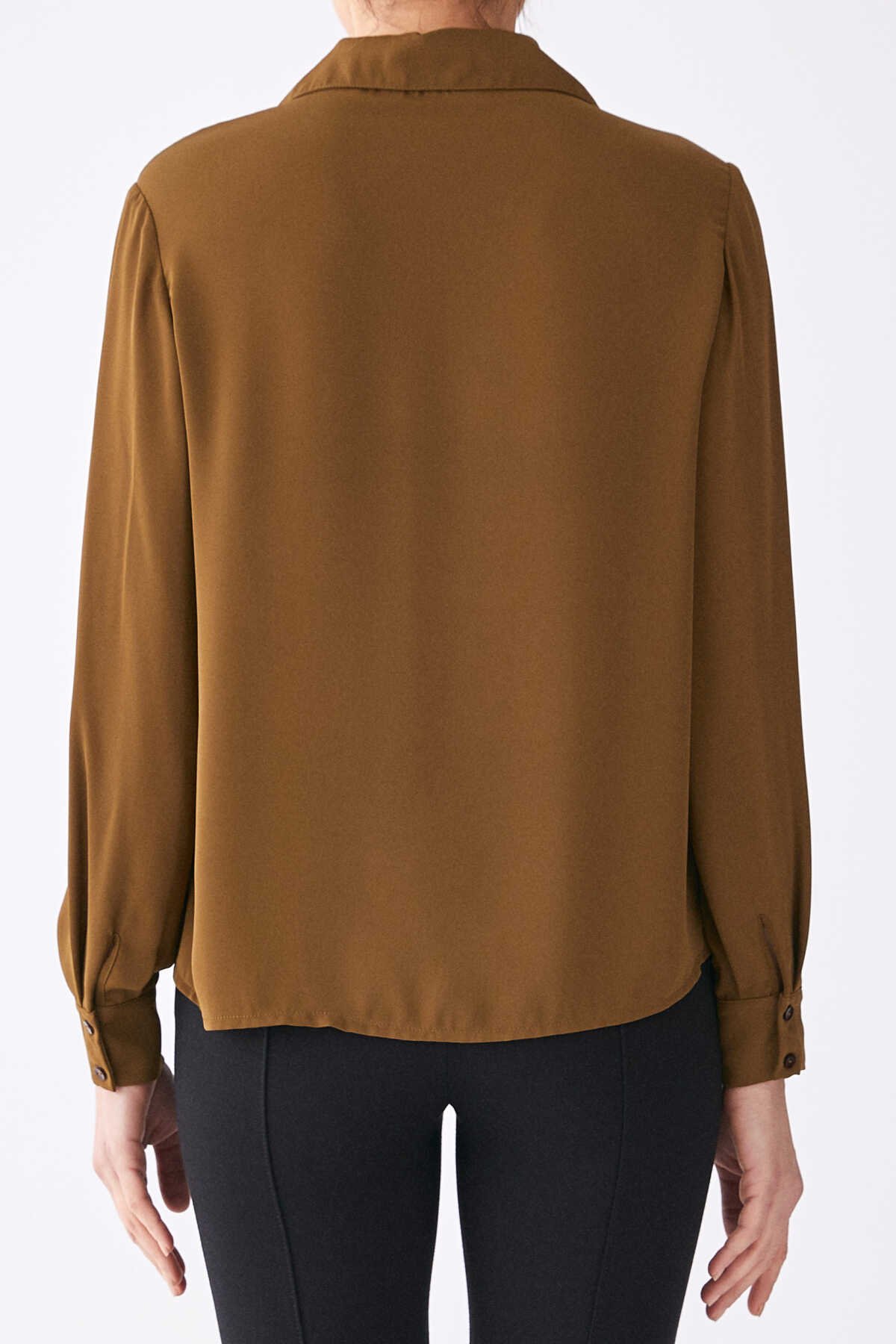 Fırfır Yaka Uzun Kollu Gömlek Ekru