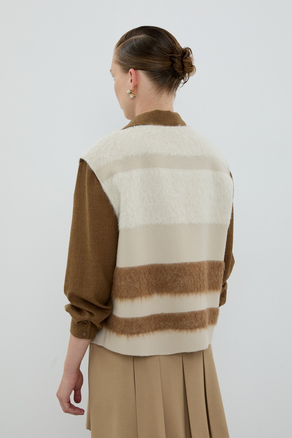 Yün ve Kaşmir Karışımlı V Yaka Yelek Camel - Bej - 3