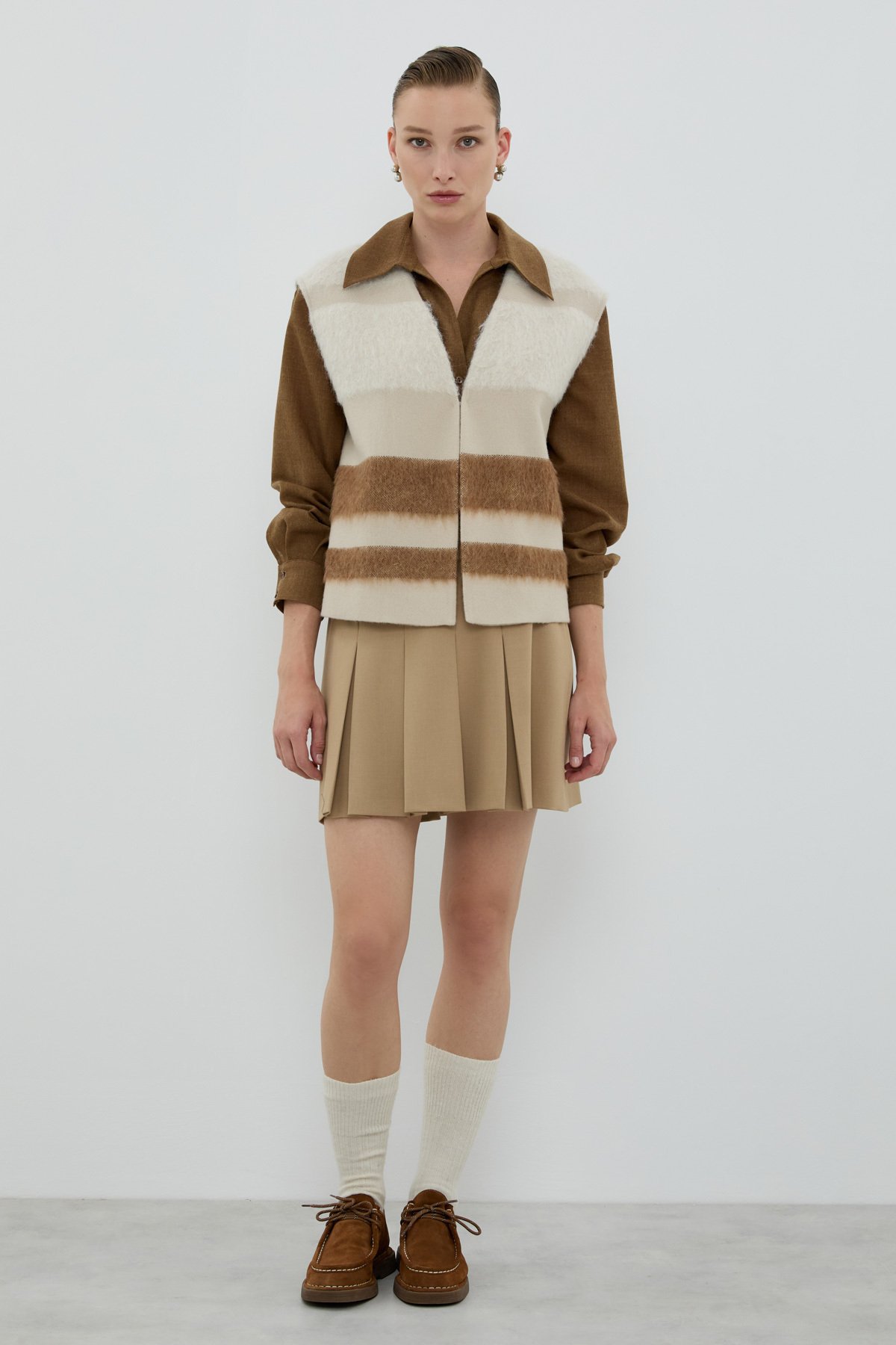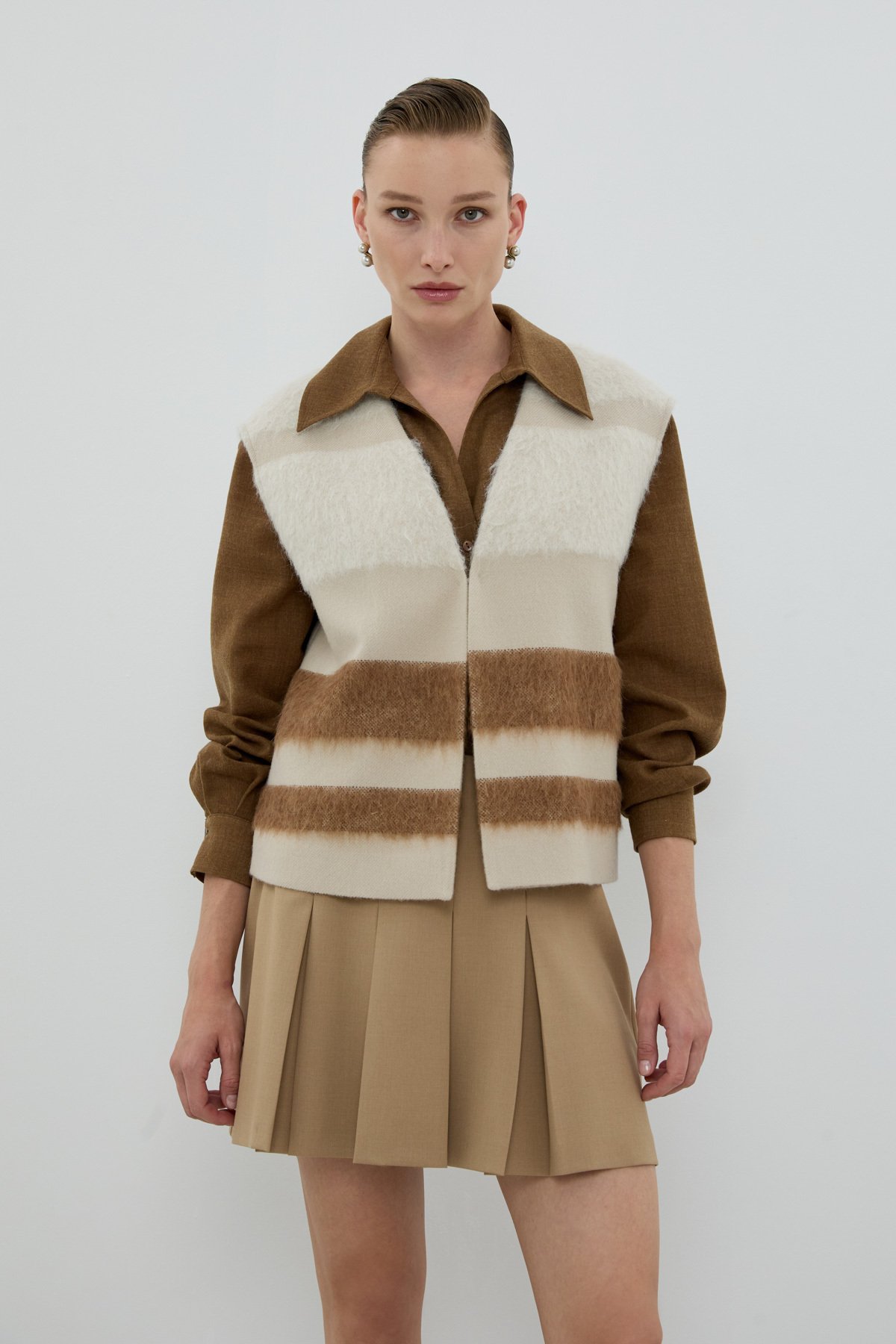 Yün ve Kaşmir Karışımlı V Yaka Yelek Camel - Bej - 1