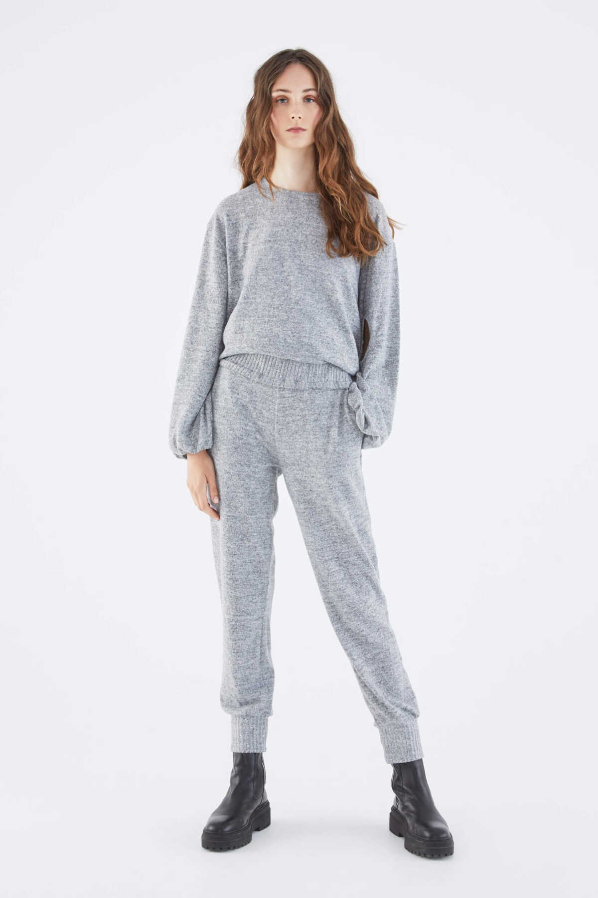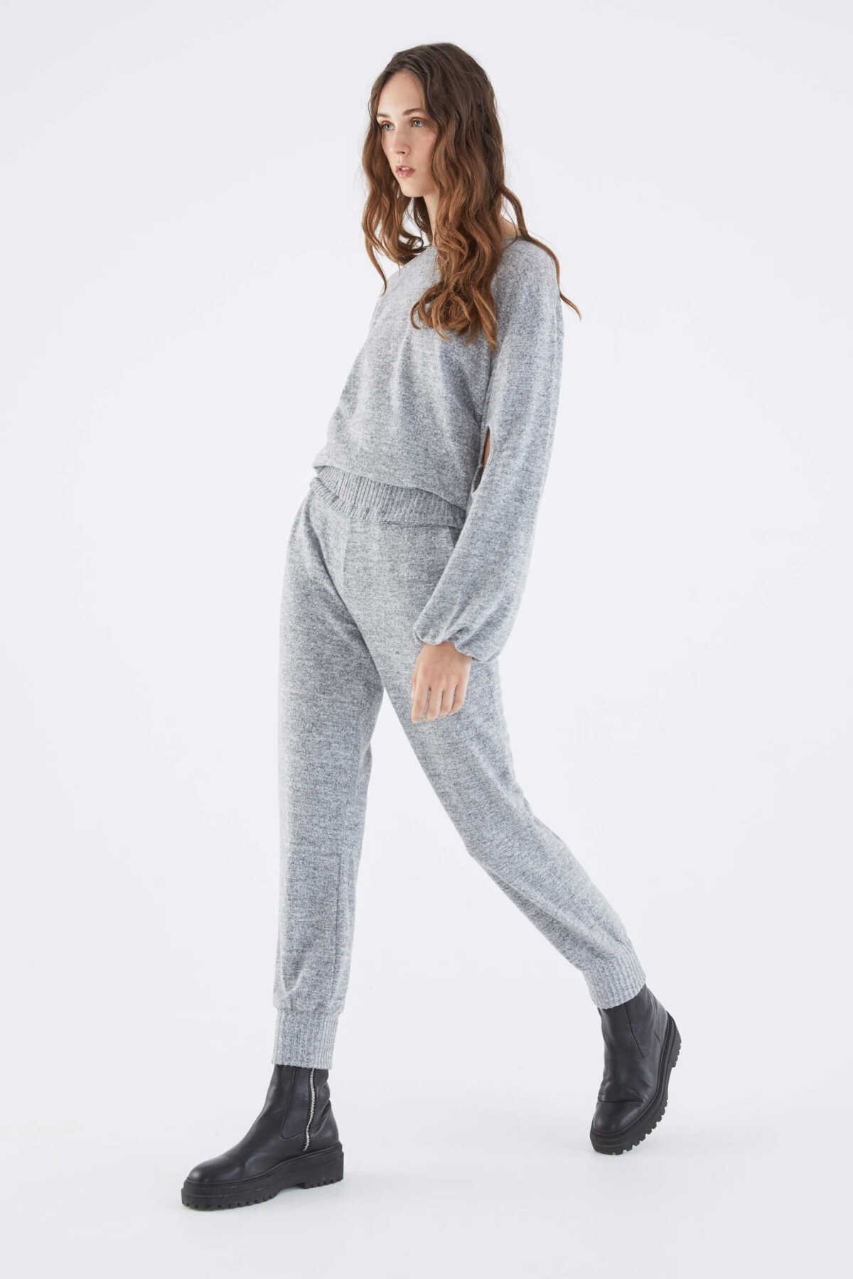 İspanyol Paça Kadın Eşofman Altı Gri - Melanj