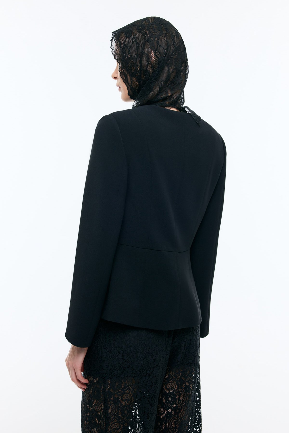 Çıkarılabilir Broş Detaylı Bele Oturan Çift Cepli Ceket Siyah - 2