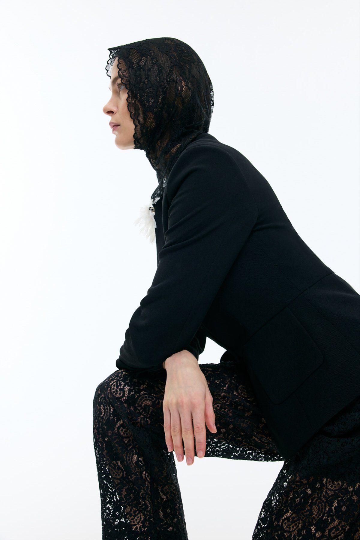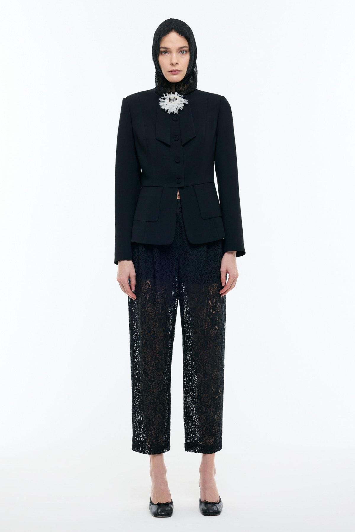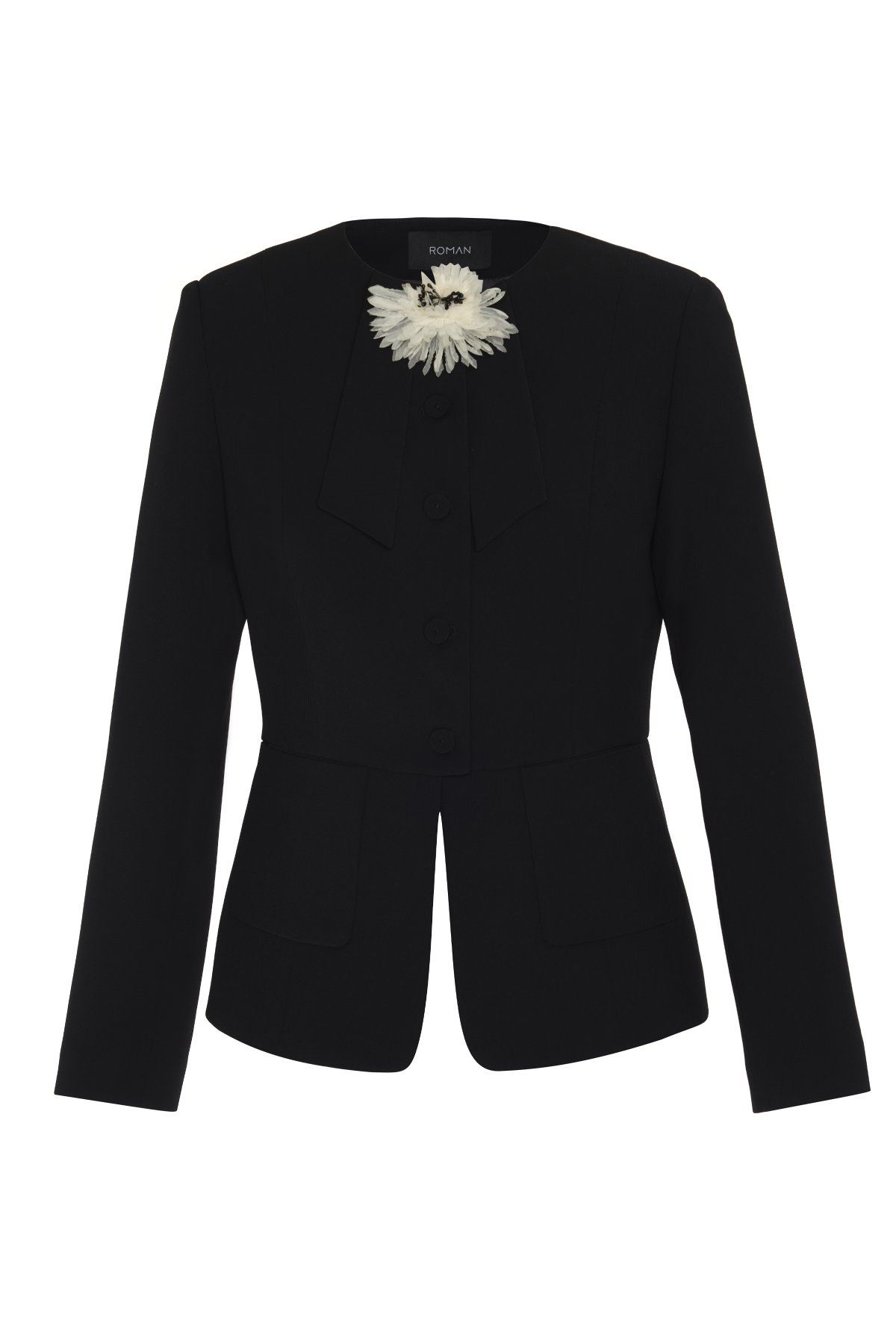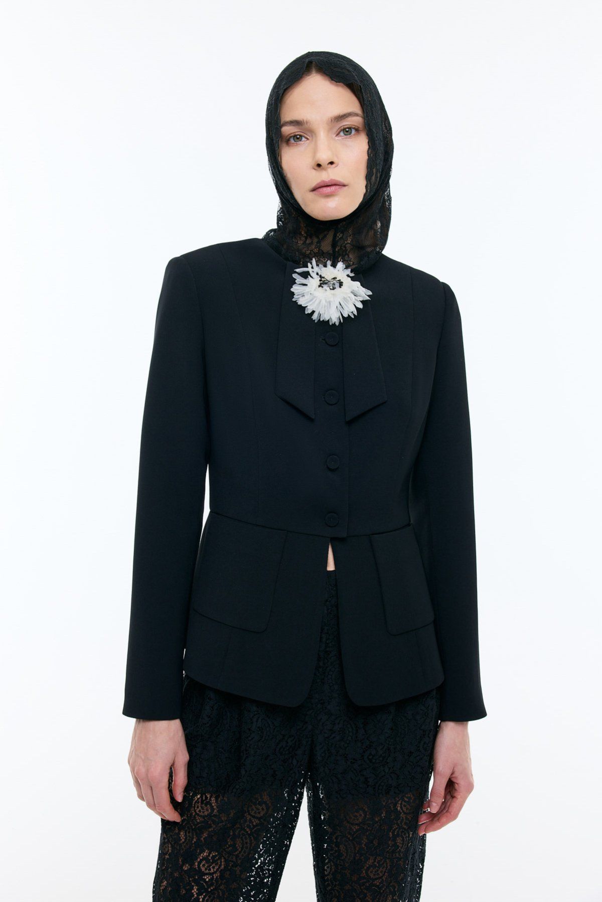 Çıkarılabilir Broş Detaylı Bele Oturan Çift Cepli Ceket Siyah - 1