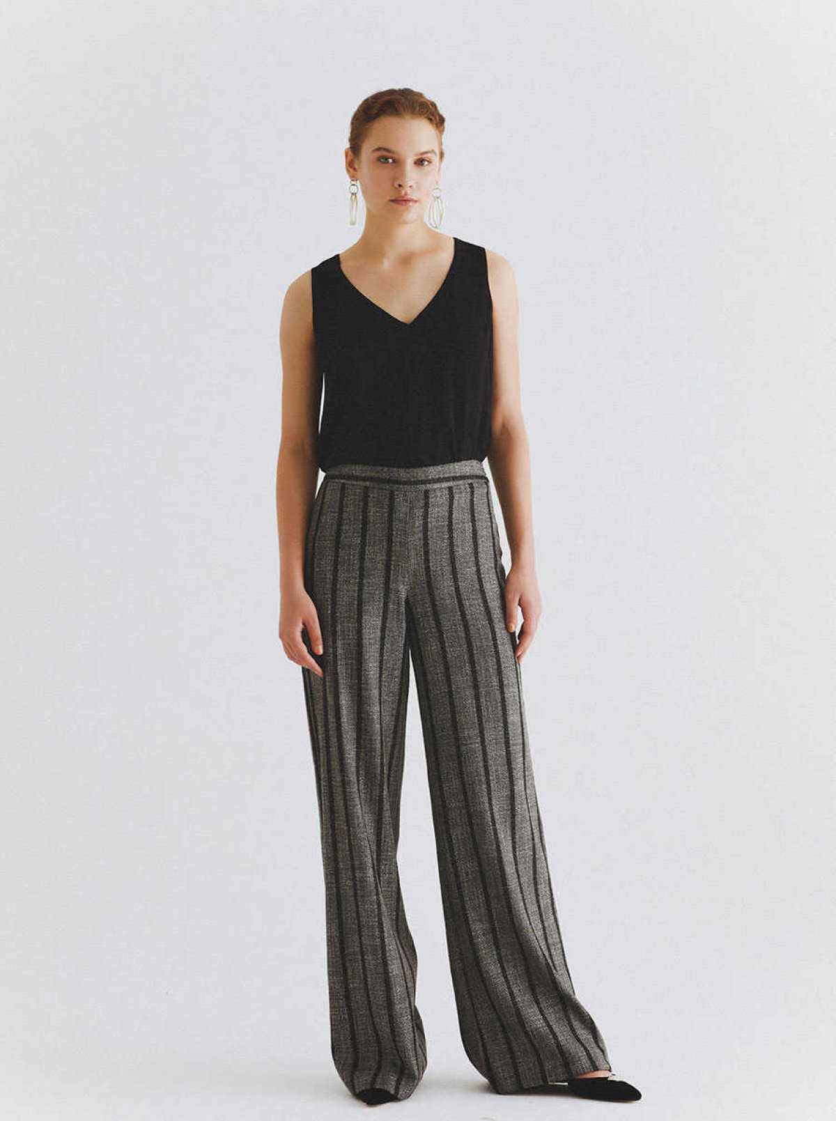 Yün Karışımlı Palazzo Pantolon Kum Beji