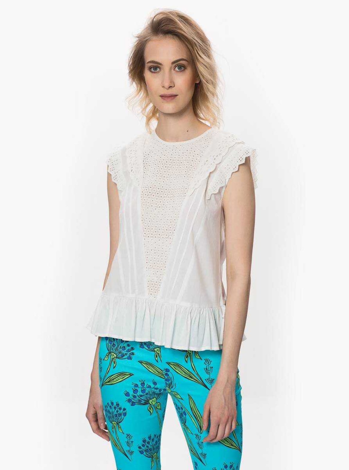 Dantel Detaylı Kolsuz Bluz Beyaz