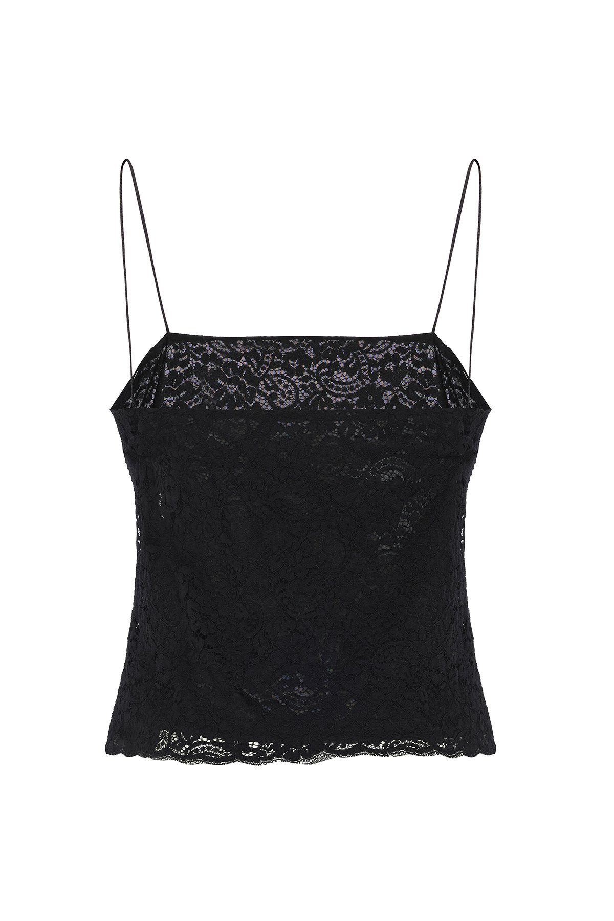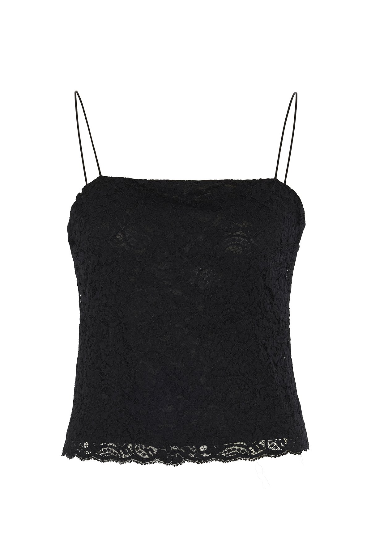 Çiçek Motifli İnce Askılı Büstiyer Siyah