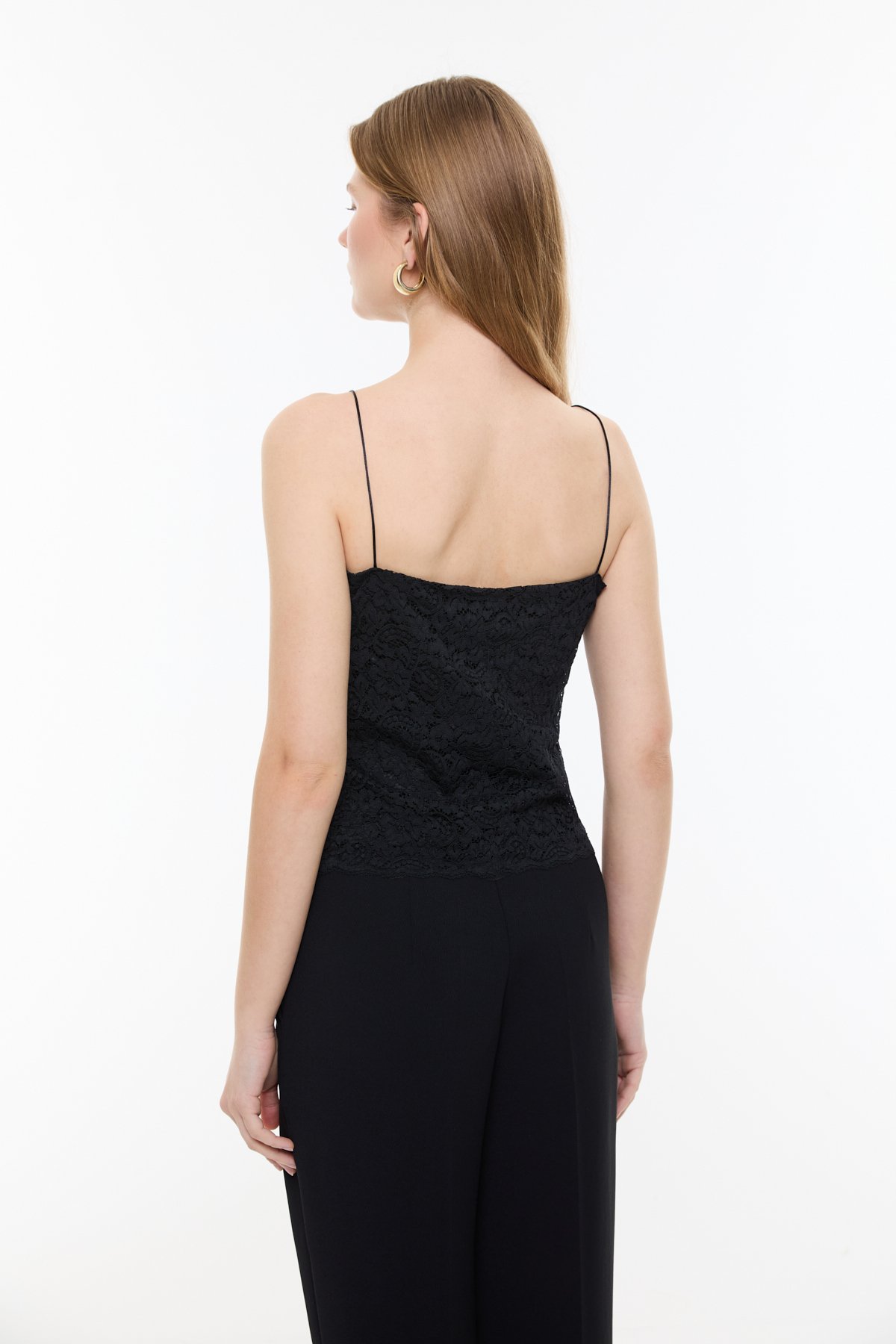 Dantel Detaylı Saten Askılı Büstiyer Siyah