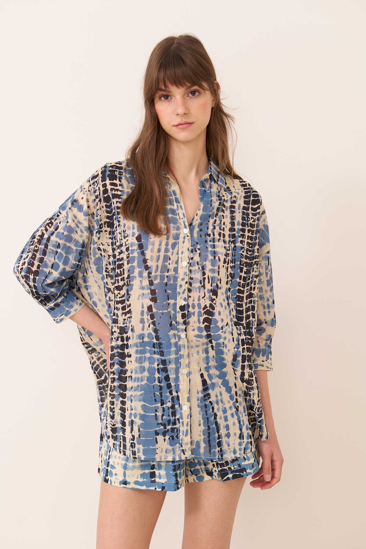 Pili Detaylı Beli Kemerli Gömlek Beyaz