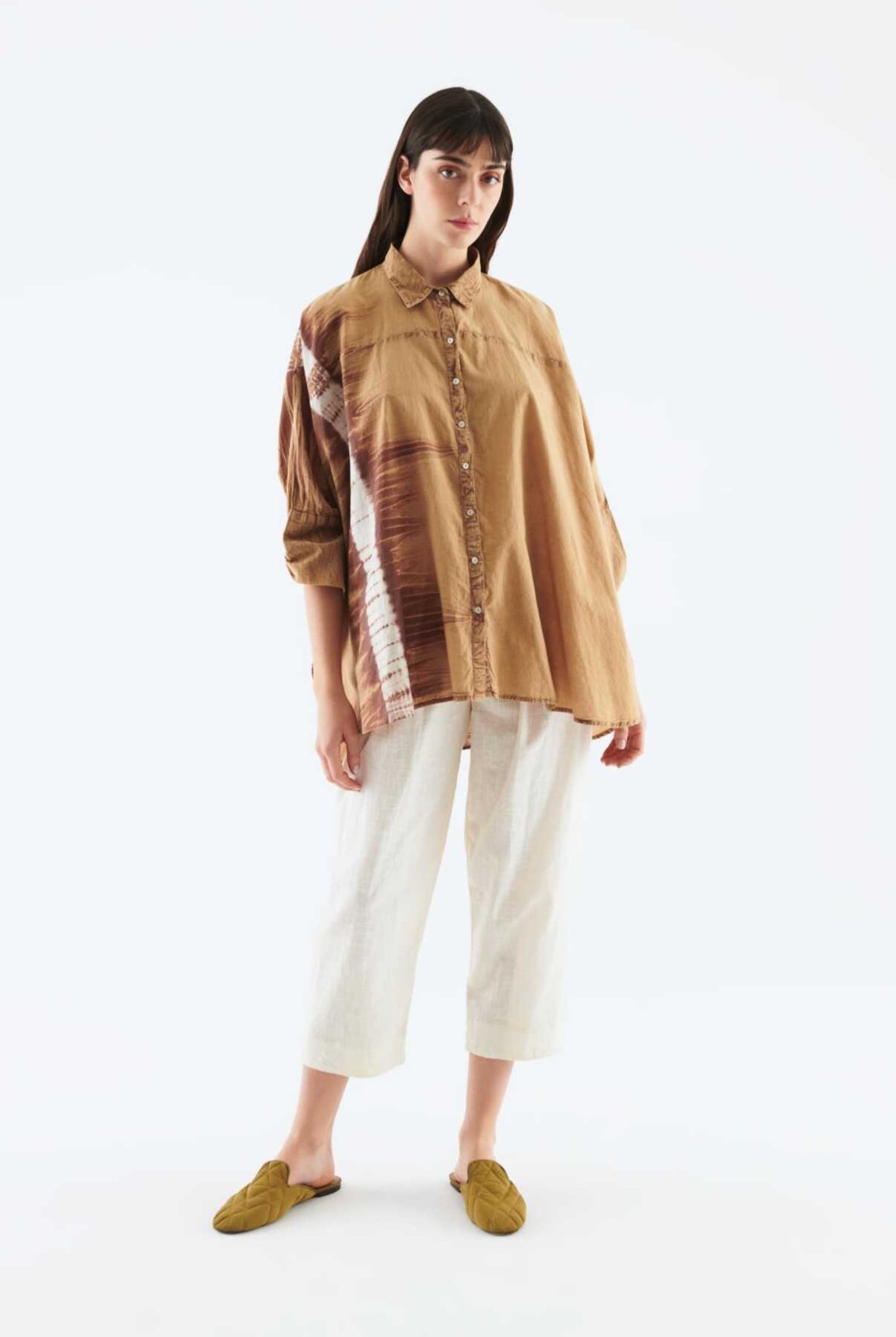 Fırfır Yaka Uzun Kollu Gömlek Ekru