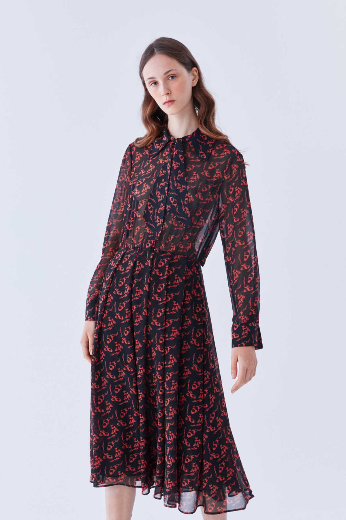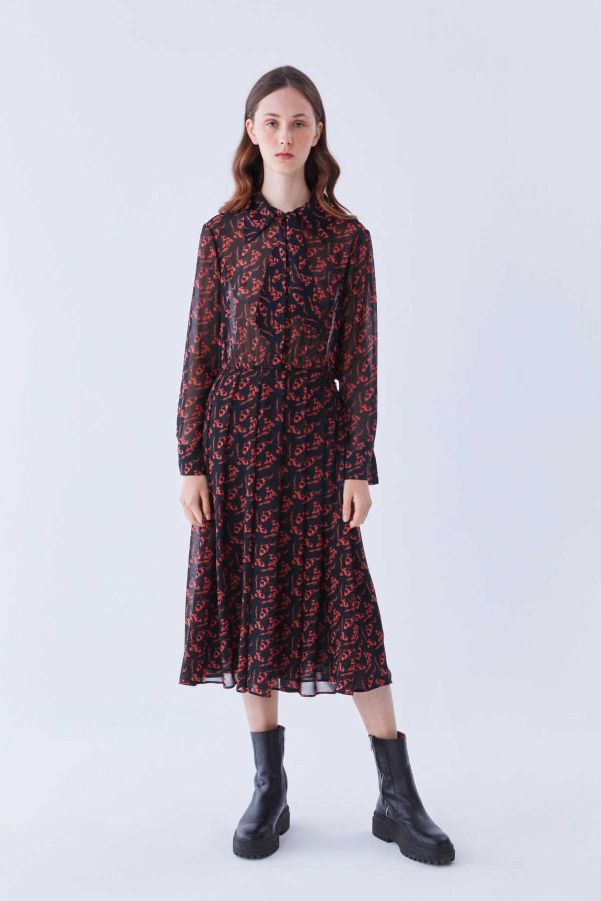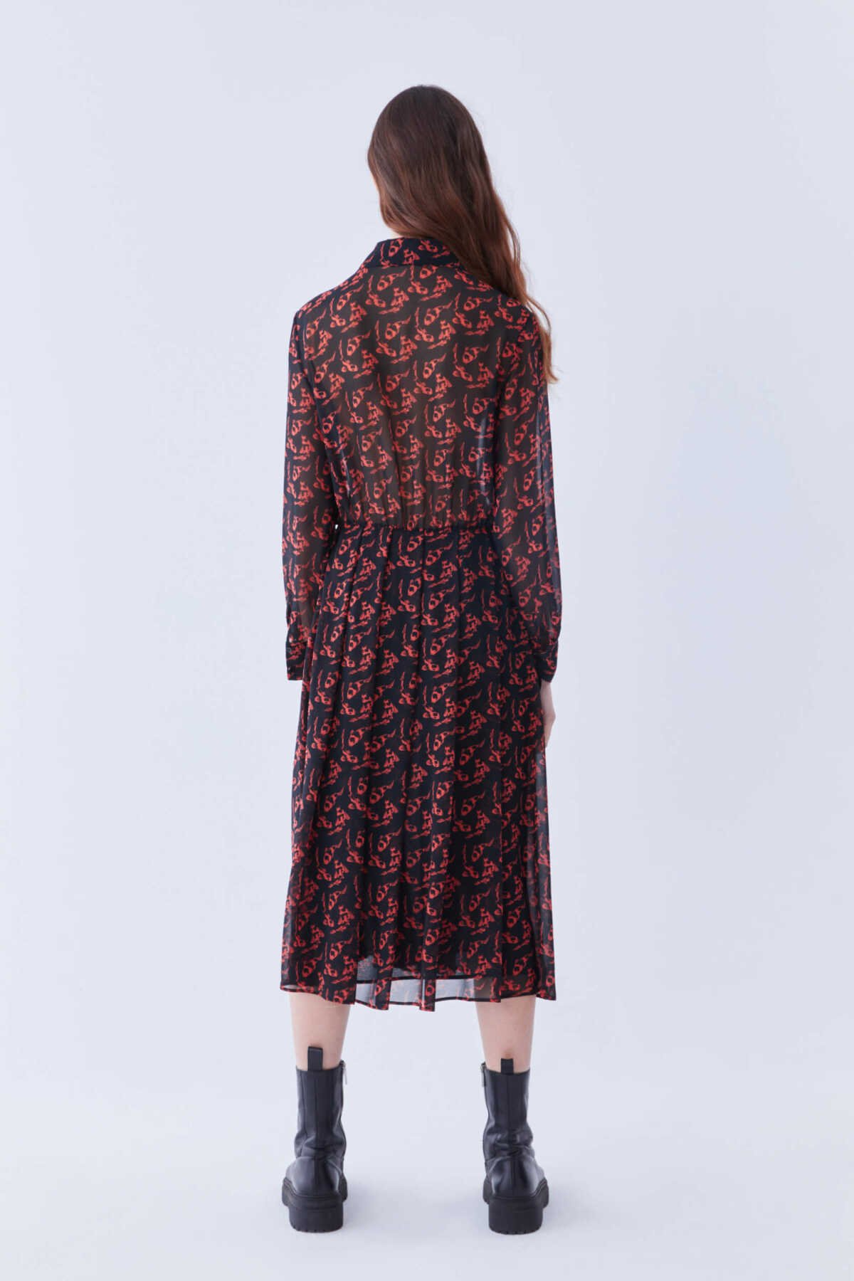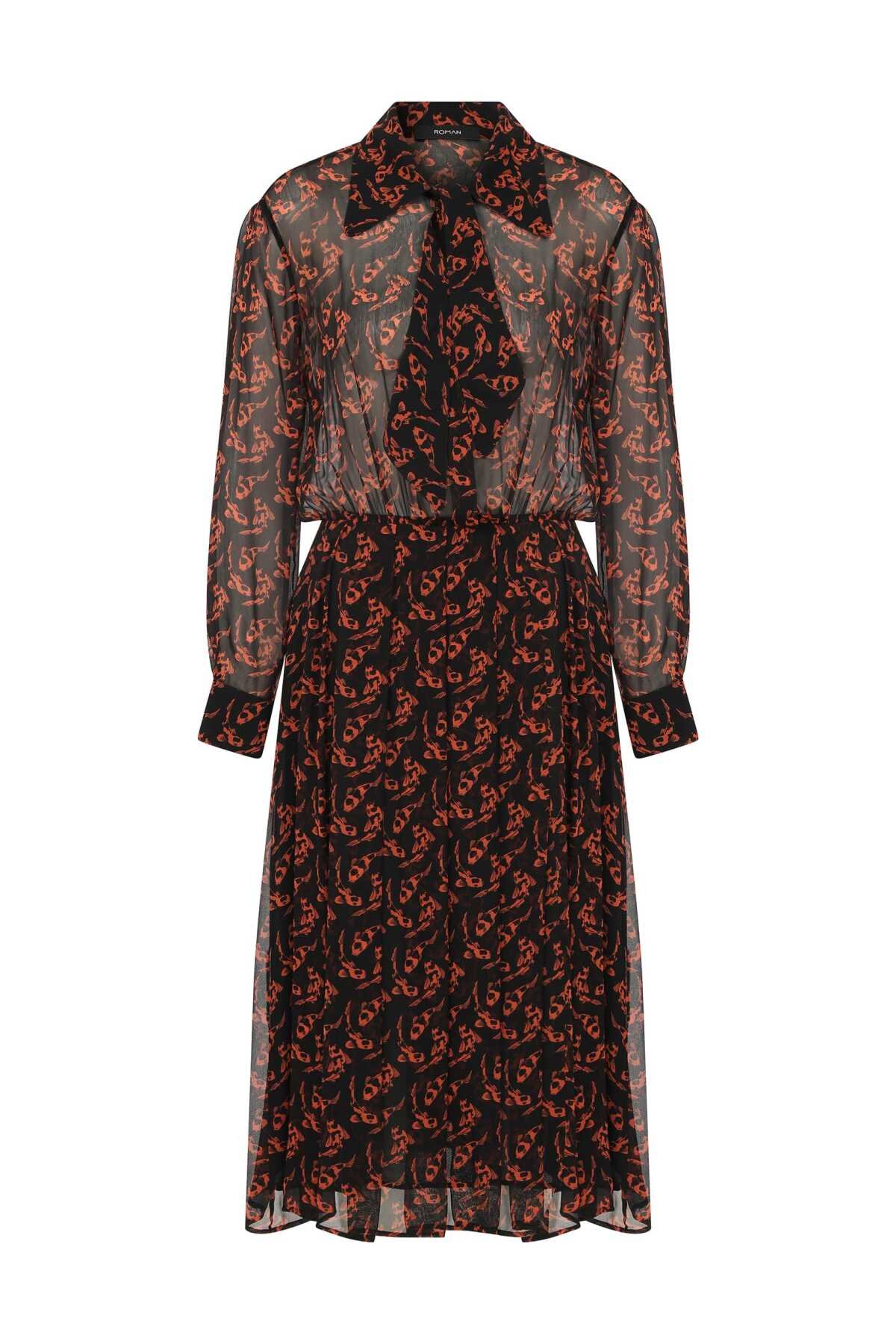 Desenli Midi Boy Elbise Standart Renk