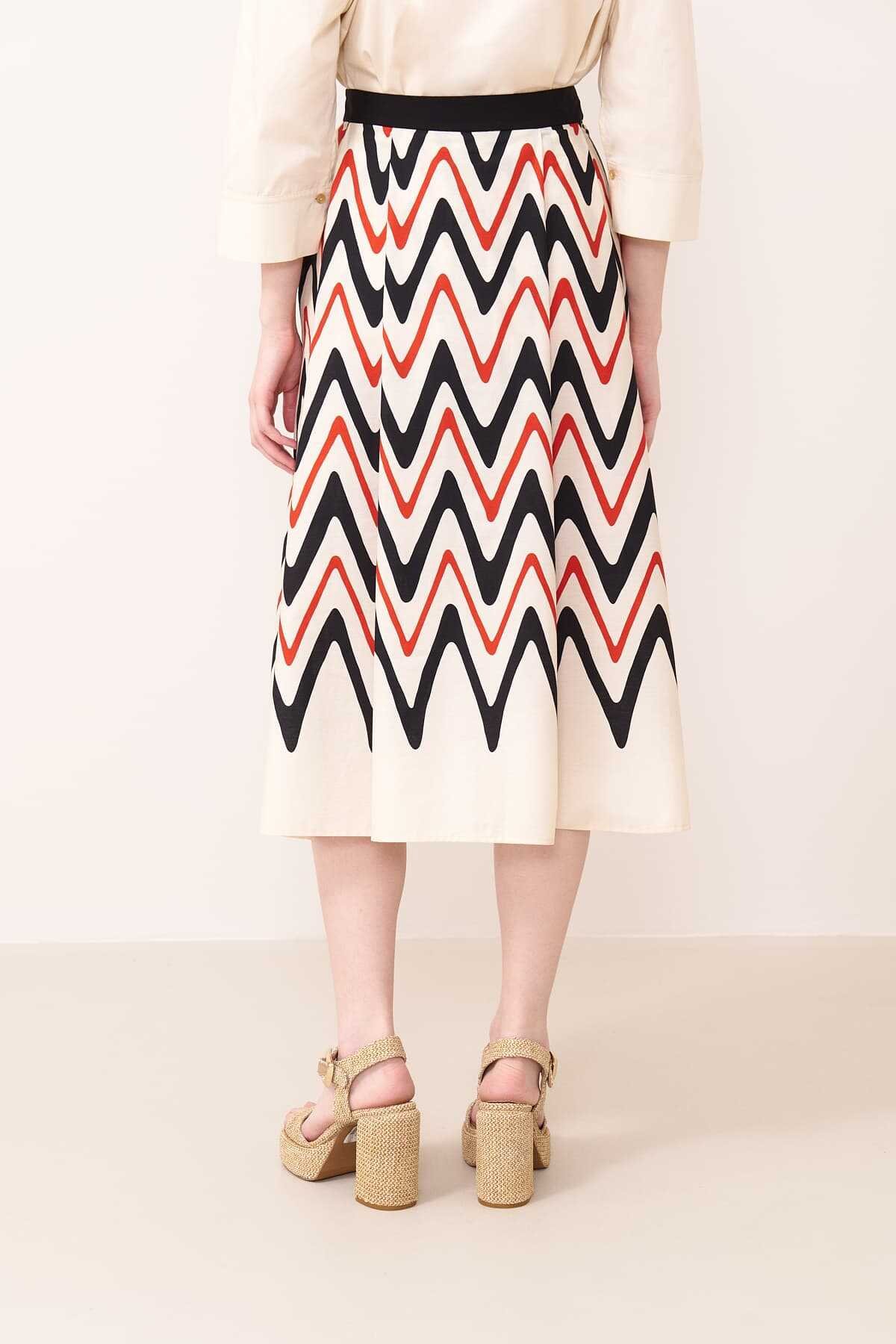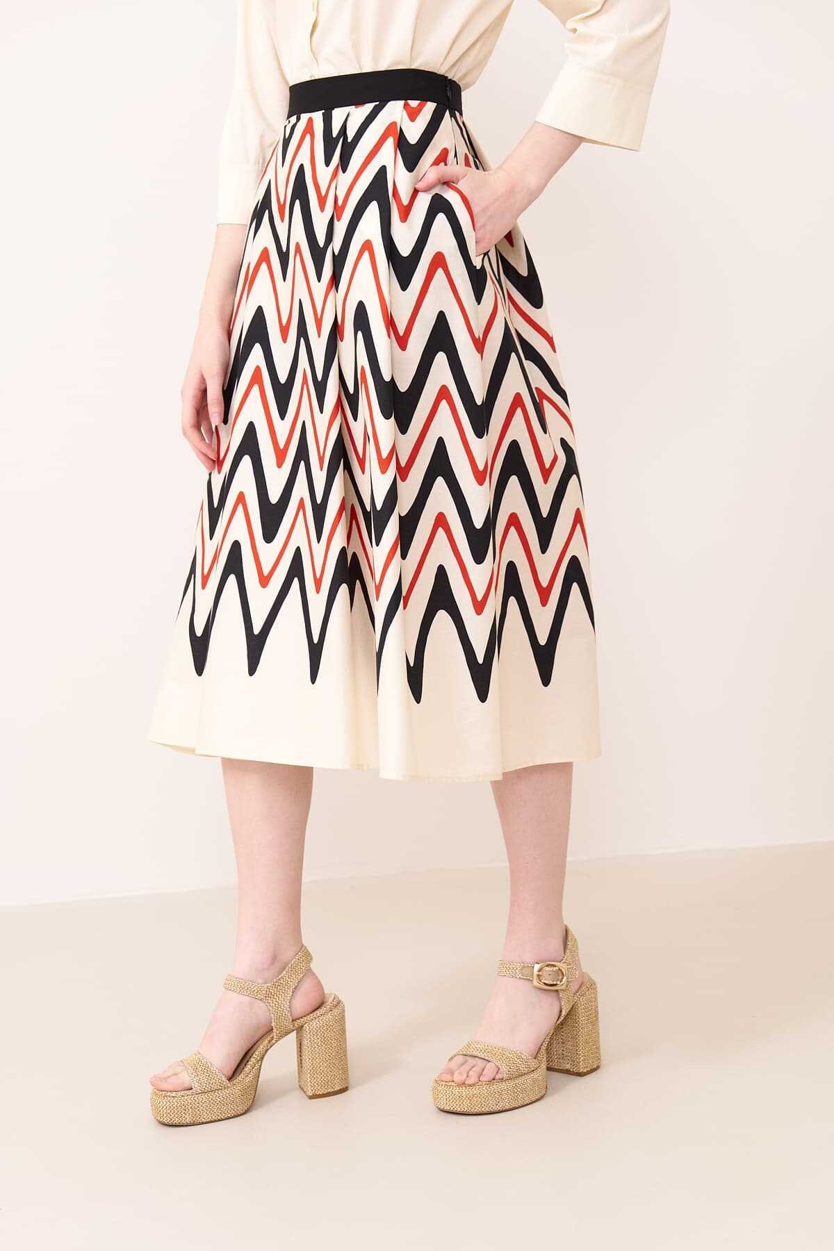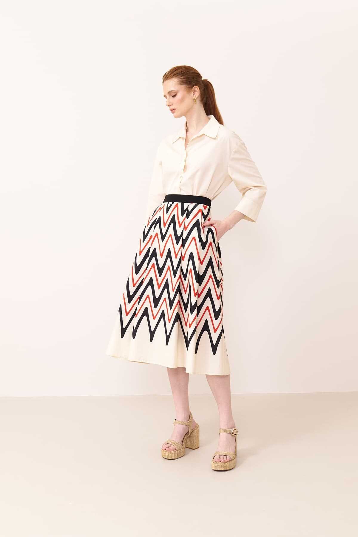 Nakışlı Midi Boy Keten Etek Bej- Siyah